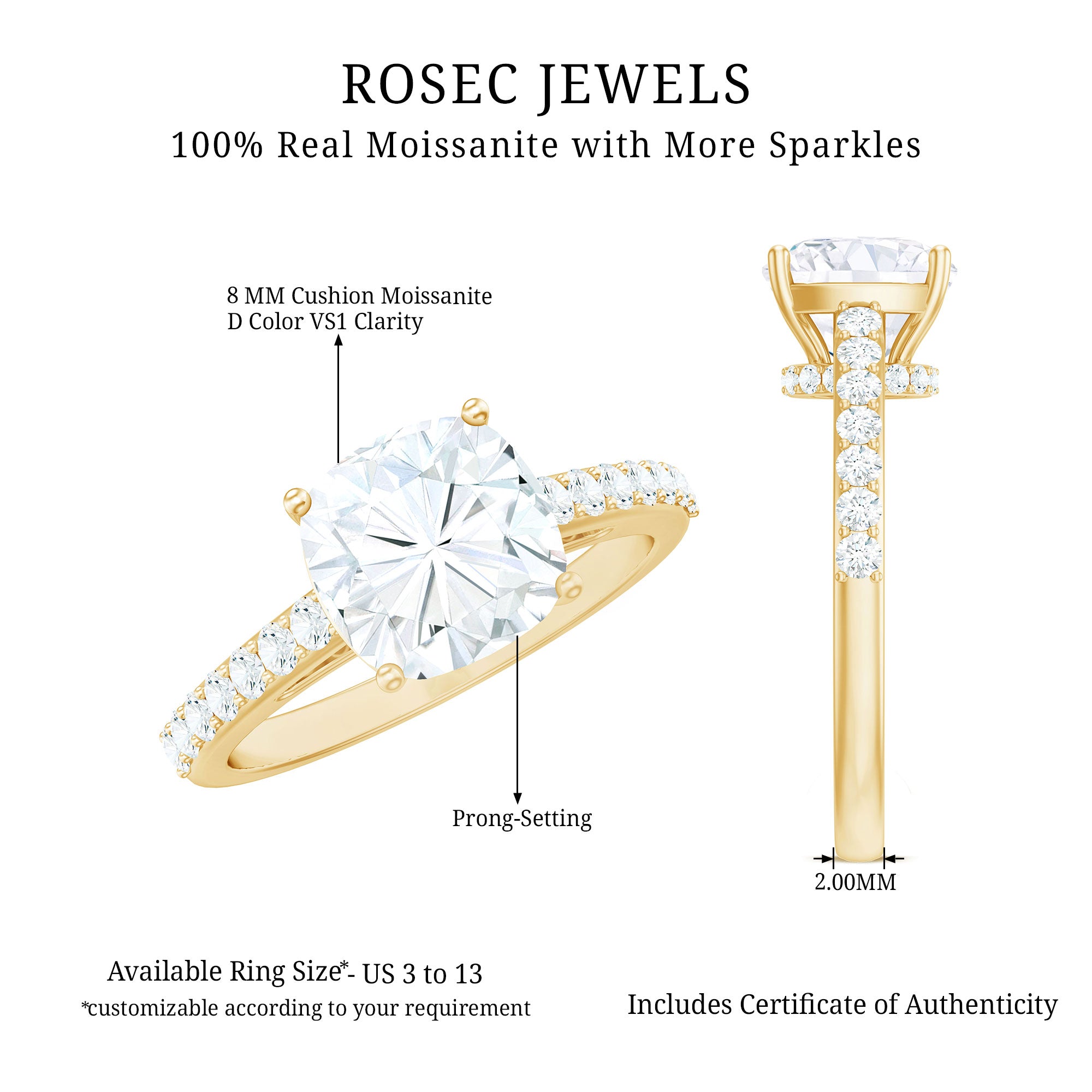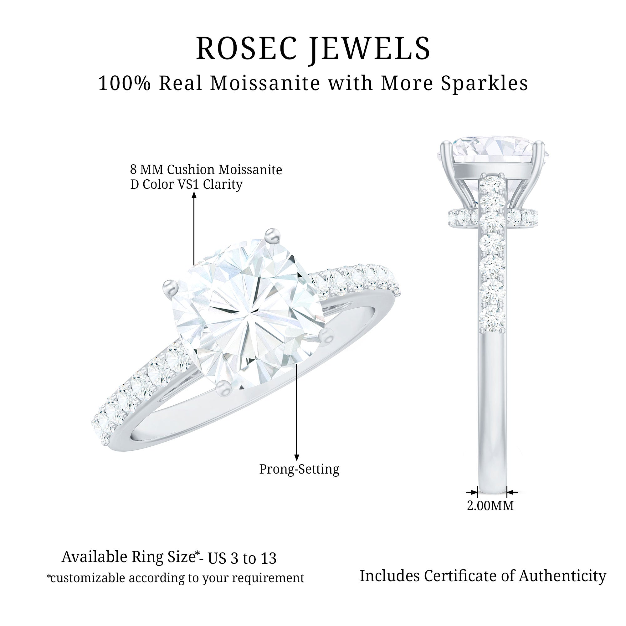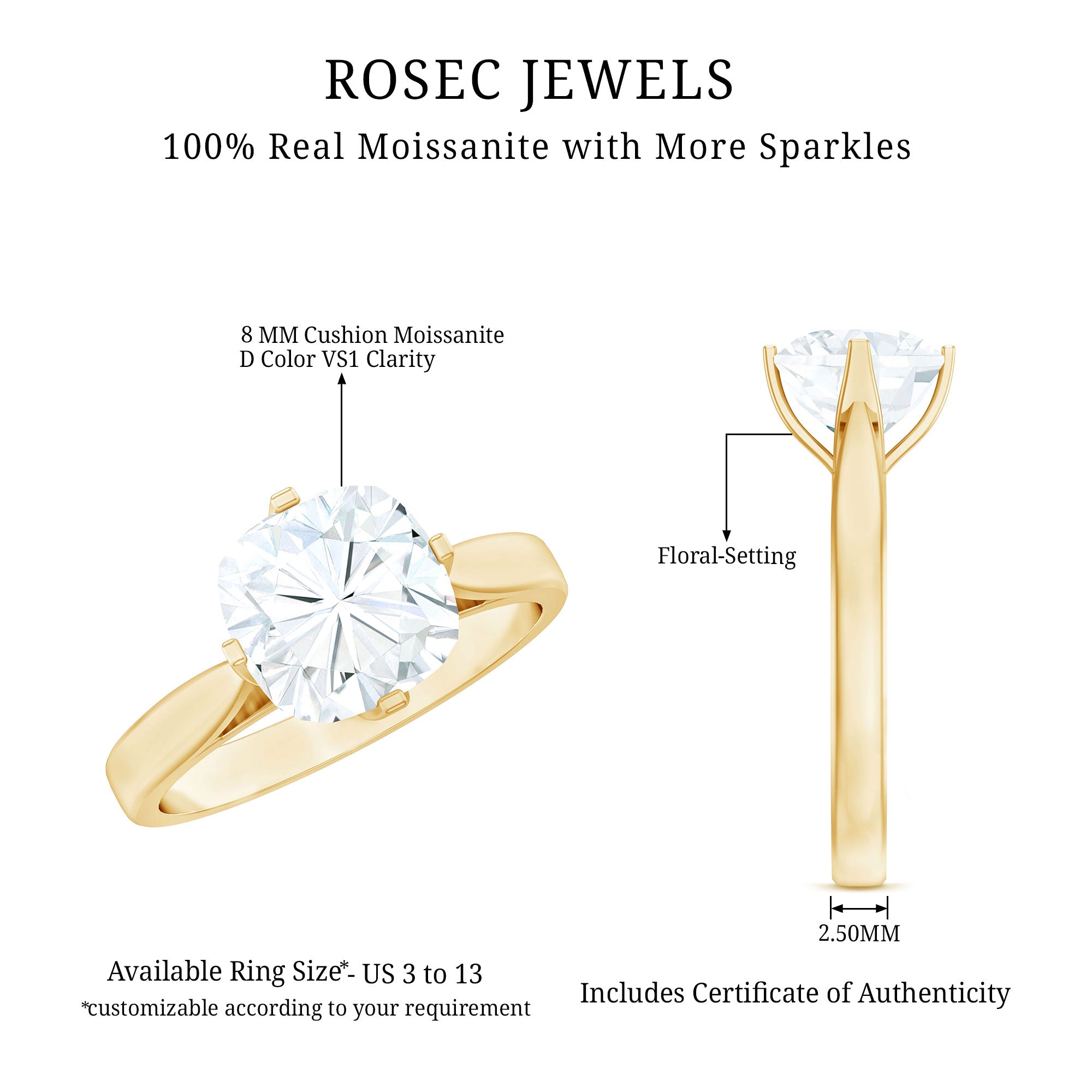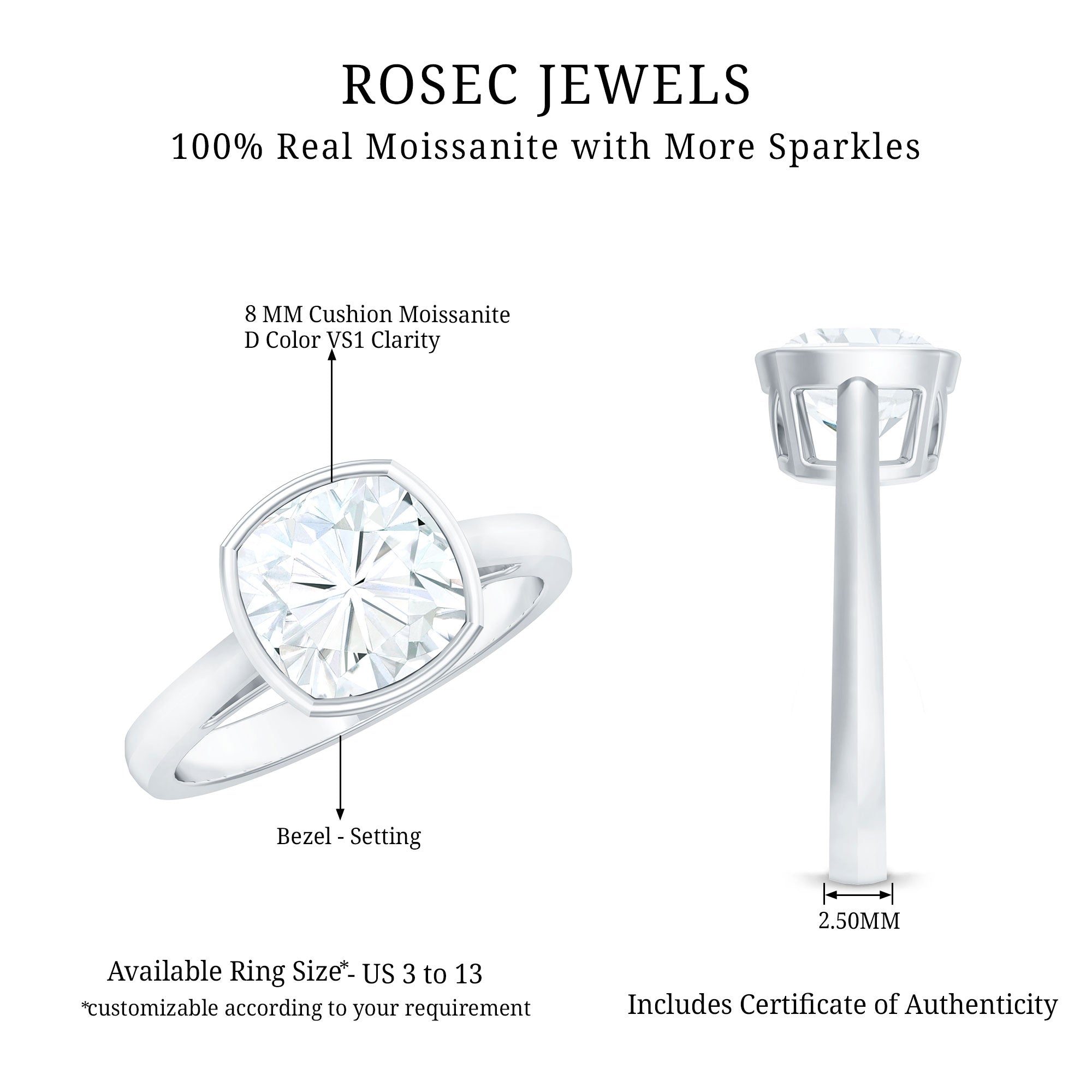 Gemstone with rounded edges is free from the snagging and chipping issues, due to absence of sharp corners. Besides being beautiful, they are a more practical and long lasting choice as day to day wear accessories. Check the moissanite cushion cut engagement rings category to find a durable as well as affordable sparkler for your forever moment.