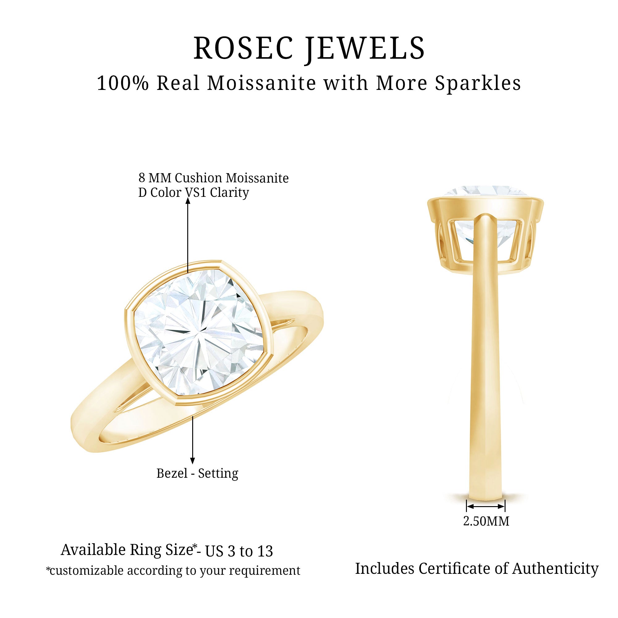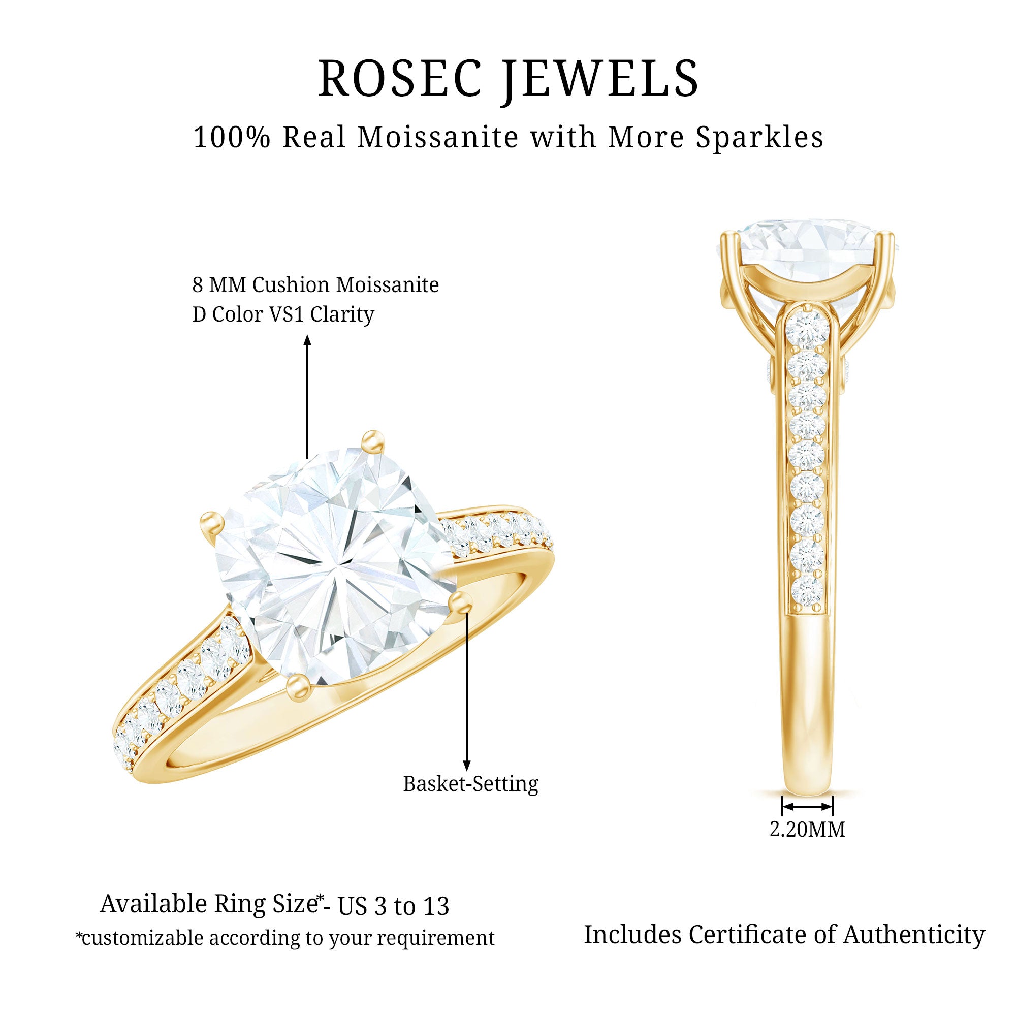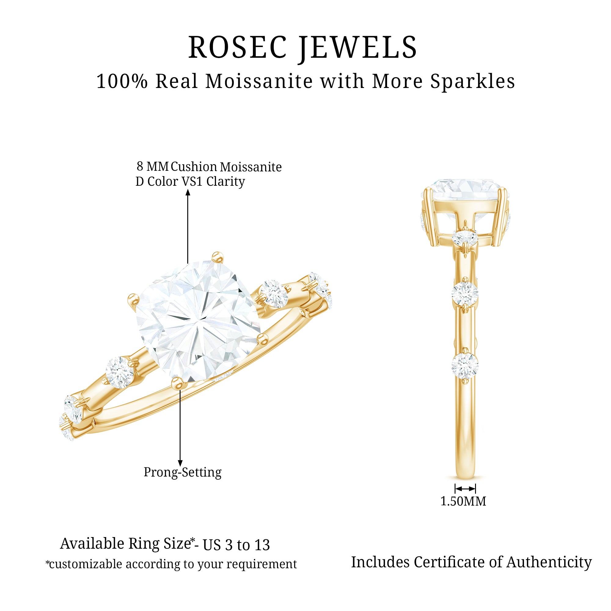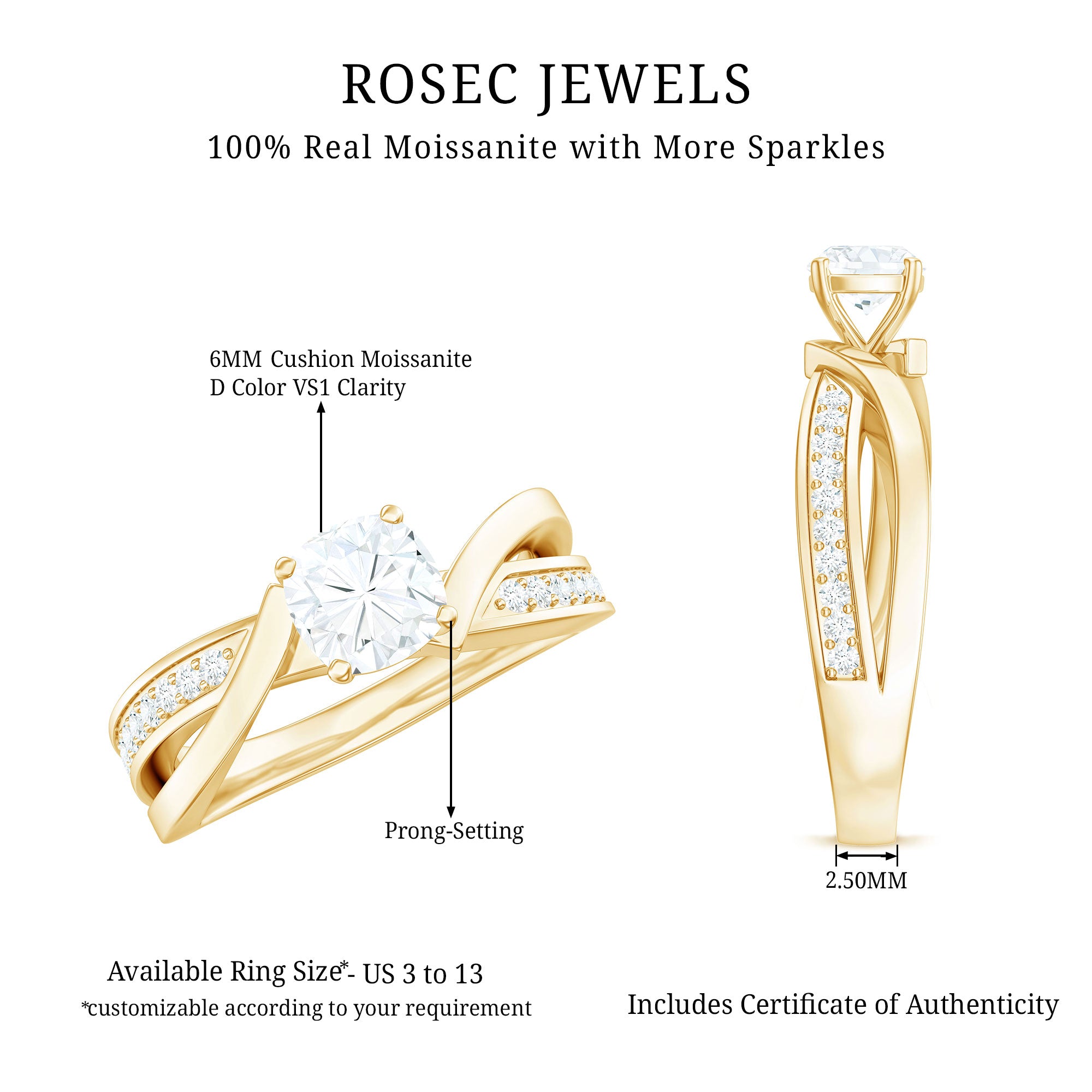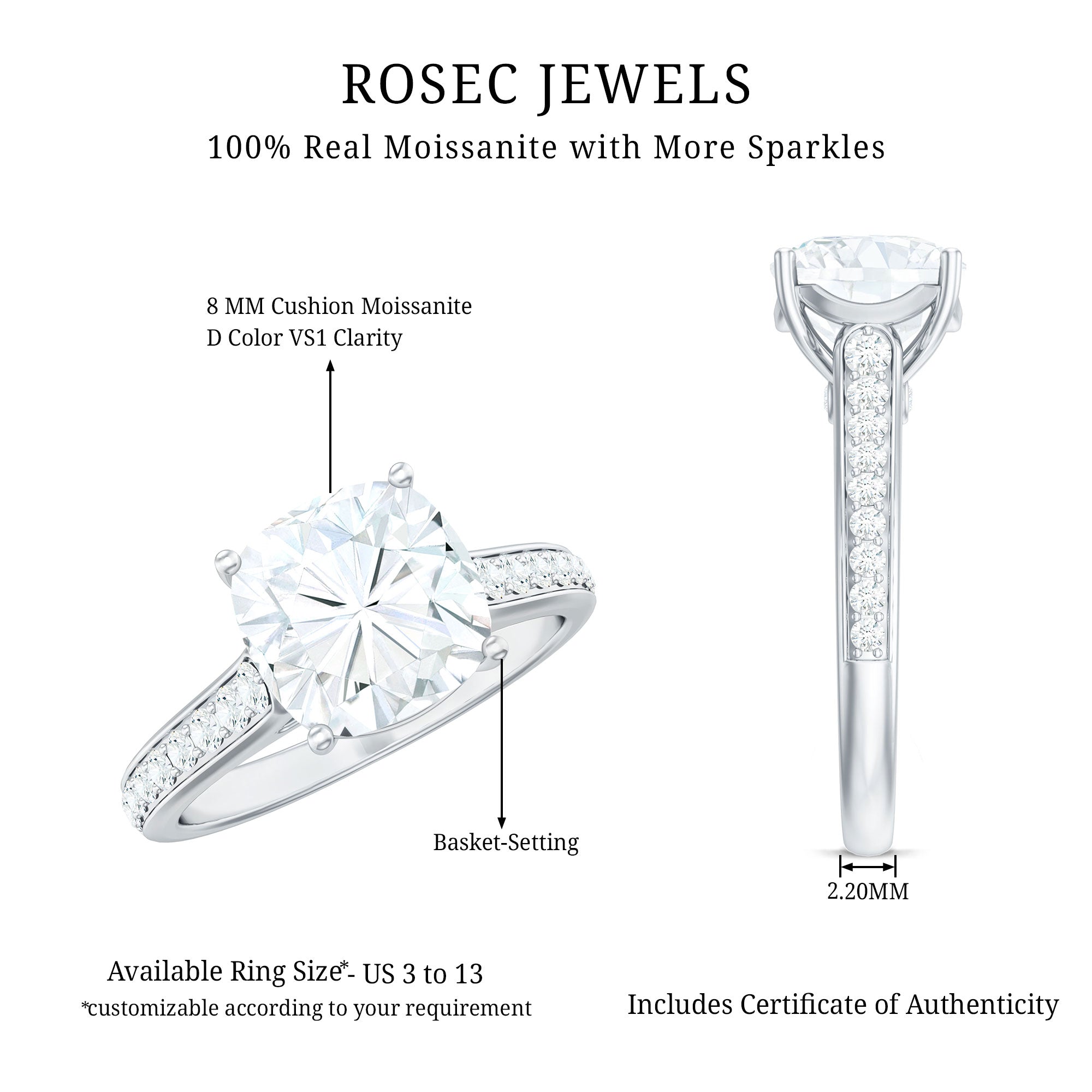 Gemstone with rounded edges is free from the snagging and chipping issues, due to absence of sharp corners. Besides being beautiful, they are a more practical and long lasting choice as day to day wear accessories. Check the moissanite cushion cut engagement rings category to find a durable as well as affordable sparkler for your forever moment.