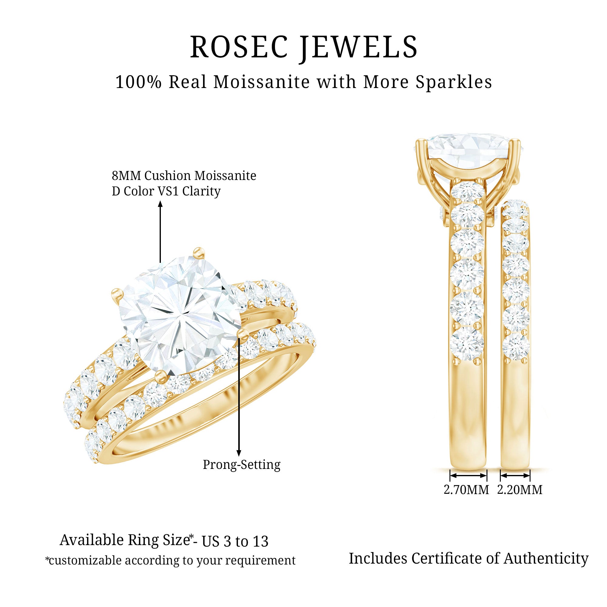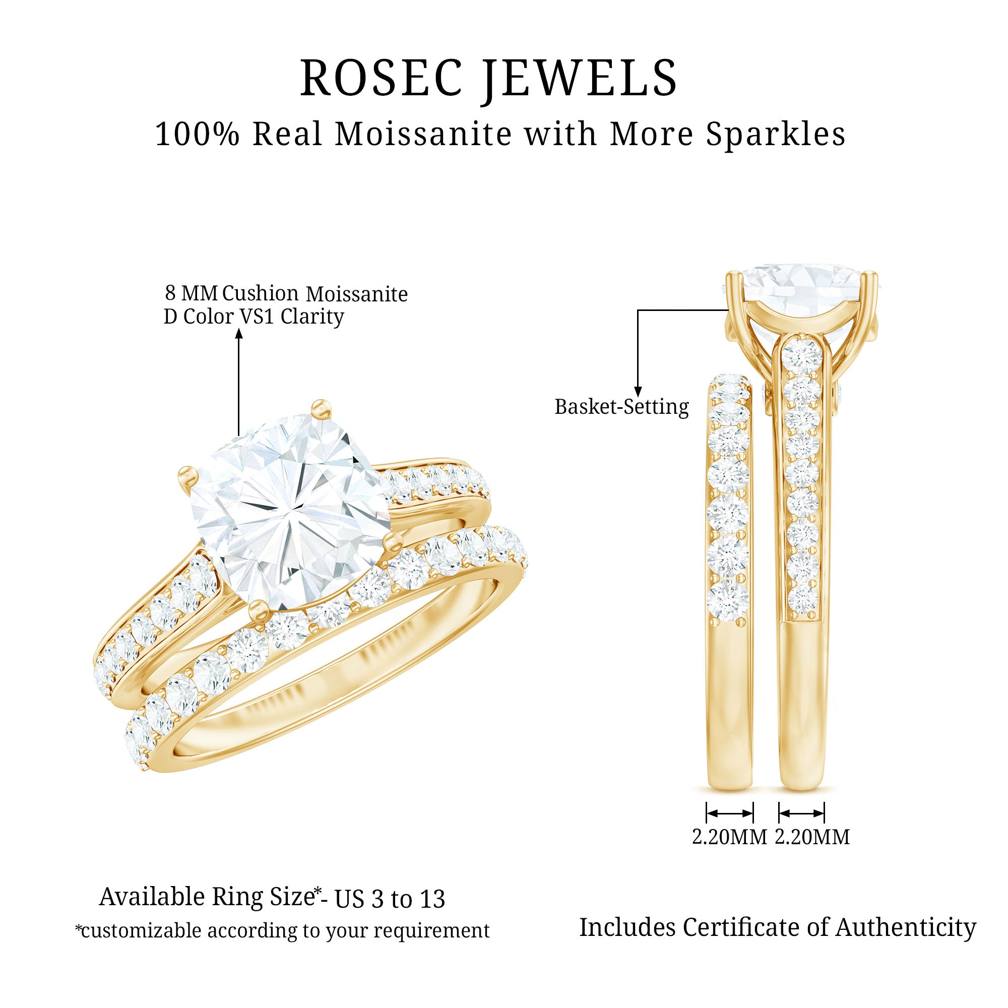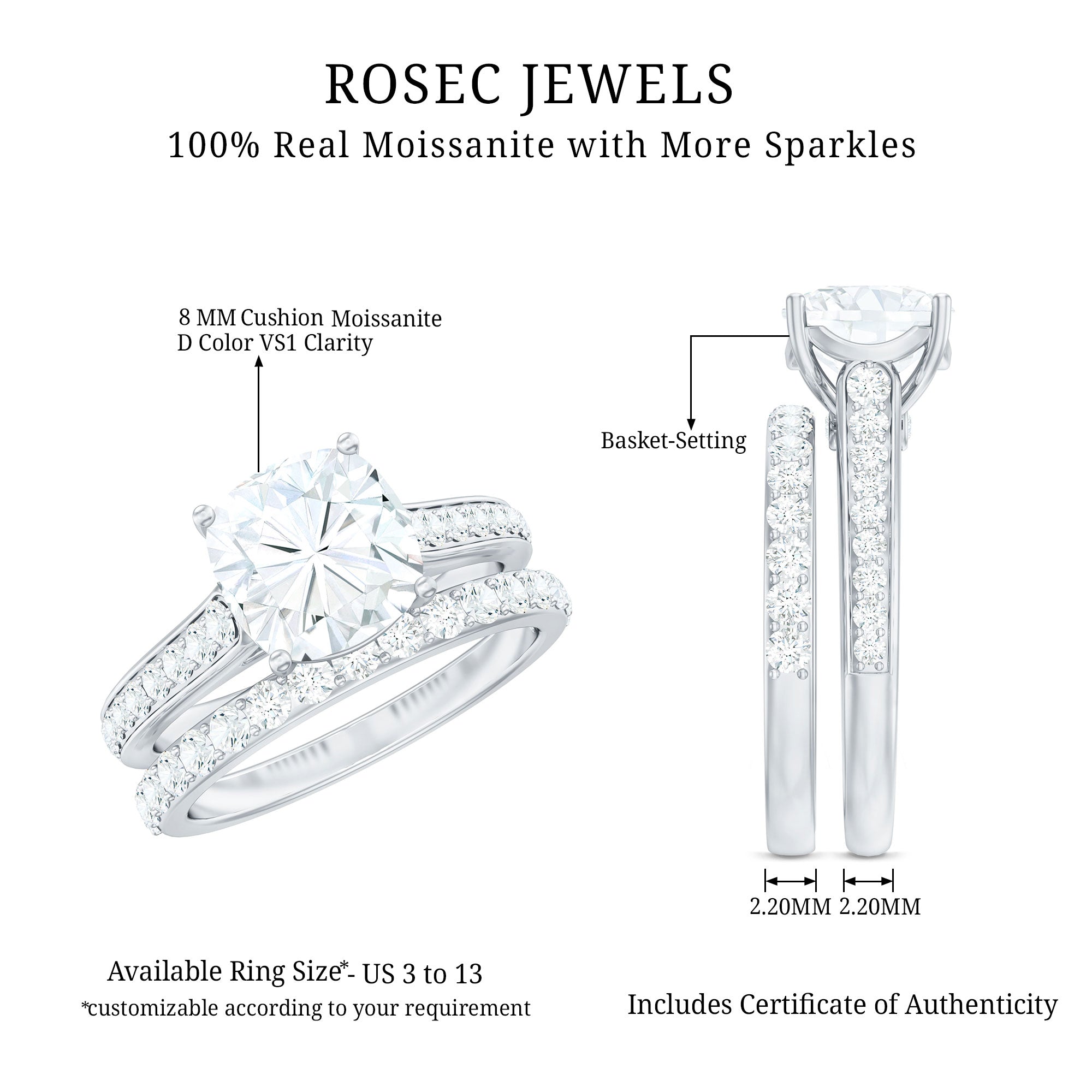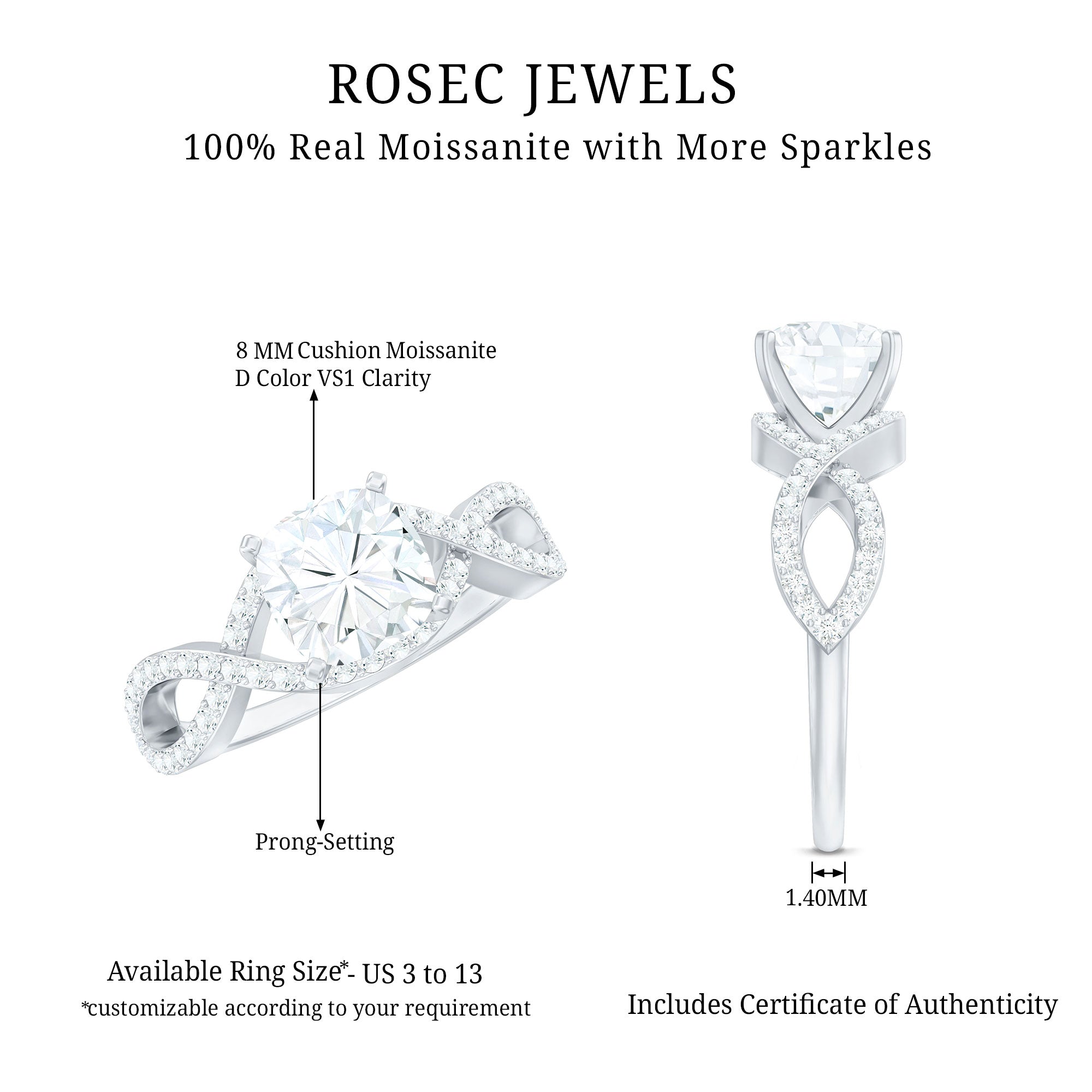 Gemstone with rounded edges is free from the snagging and chipping issues, due to absence of sharp corners. Besides being beautiful, they are a more practical and long lasting choice as day to day wear accessories. Check the moissanite cushion cut engagement rings category to find a durable as well as affordable sparkler for your forever moment.