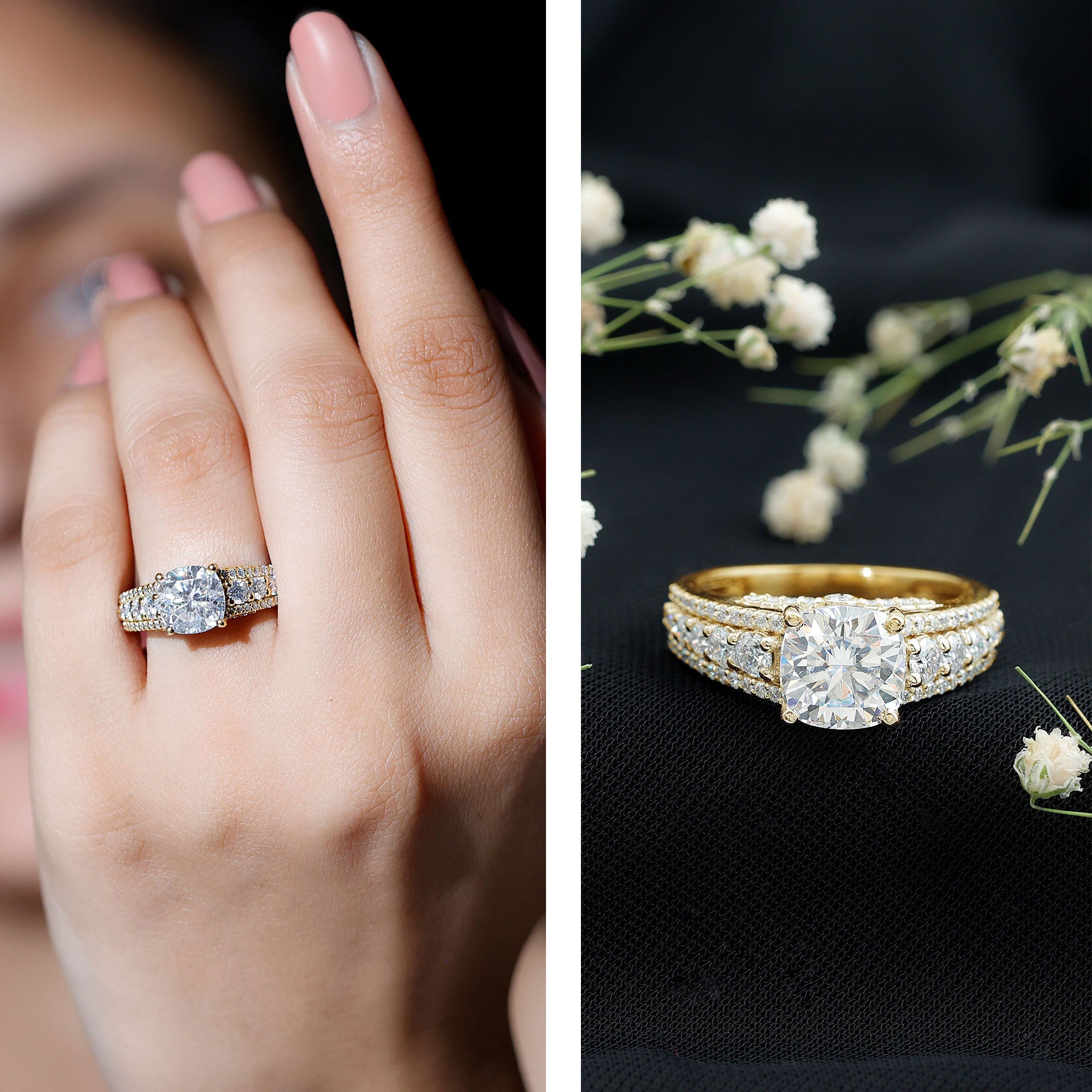 Cushion cut gemstone engagement rings shine brilliantly, much needed on special days