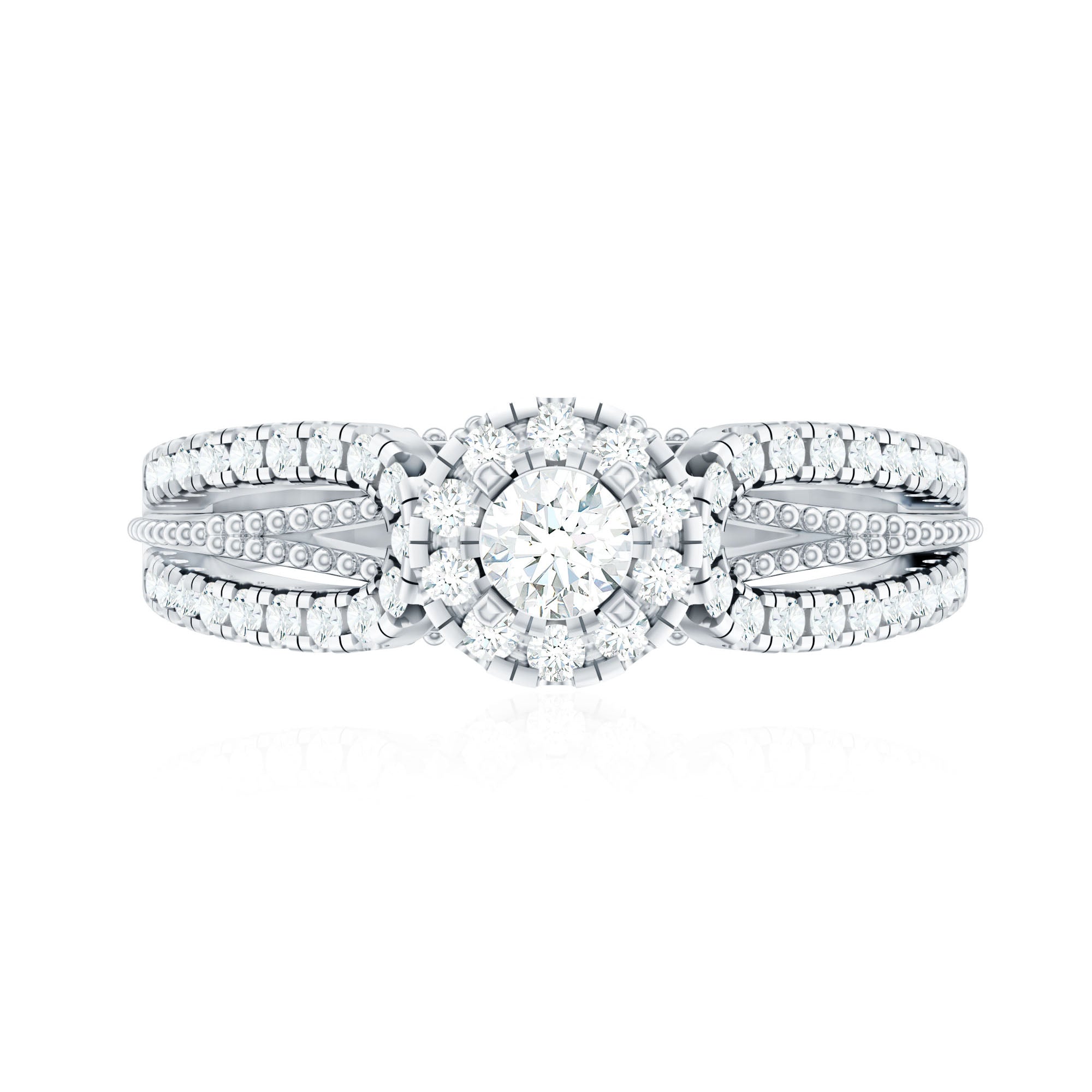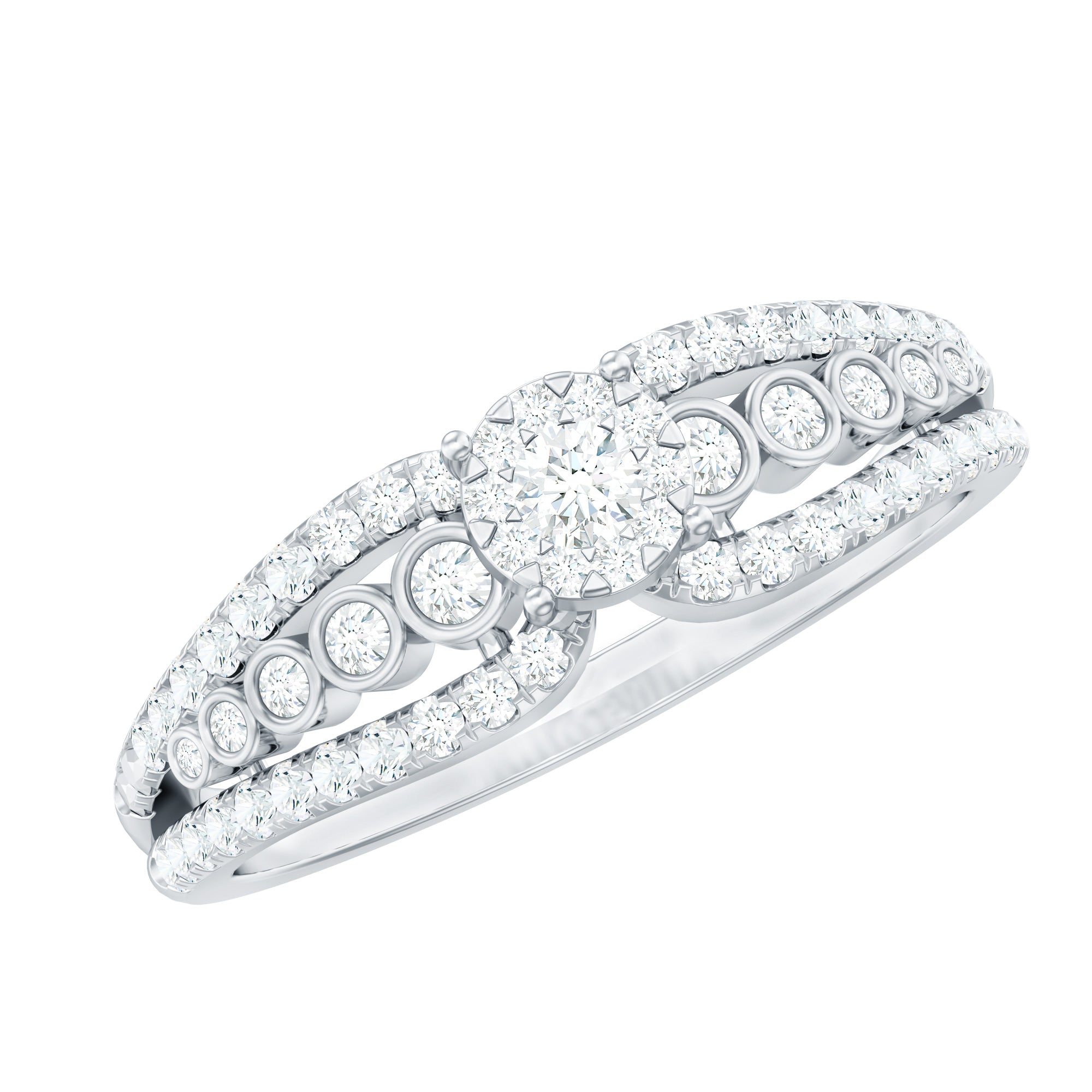 Meant for the sparkle-loving bride-to-be(s), this ring style features the encircling of petite stones of Diamond all around its Centerpiece. Apart from lending more personality and visual appeal to your Diamond, the Halo makes it appear slightly larger (without costing the extra bucks, of course). So if you're all about the bling, a Halo-style Diamond Engagement Ring for Women seems like the perfect choice for you.