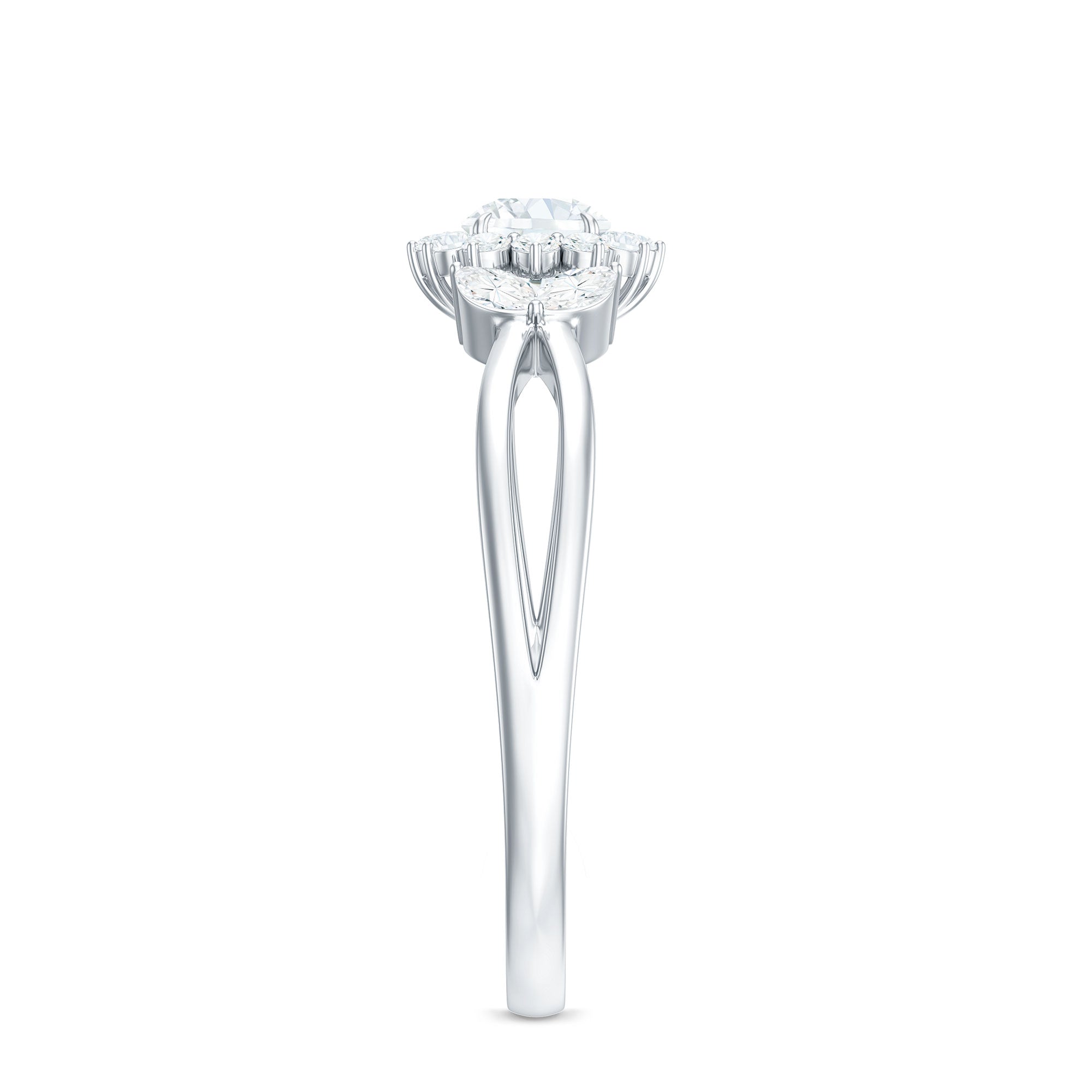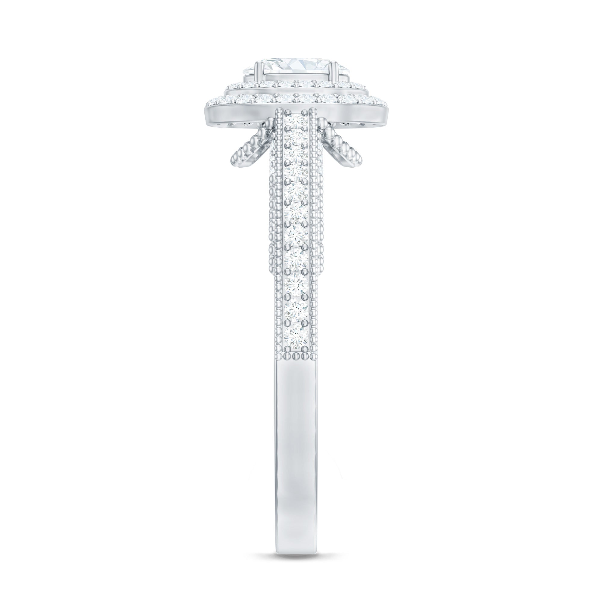 The ultimate expression of love, a Heart Diamond Engagement Ring appeals with its trendy, feminine, and romantic aesthetic. Most preferred in a solitaire, halo, and pave style, this shape is characterized by 56 and 58 facets and (interestingly) a pointy end that boasts a French tip (which greatly helps it exude more brilliance).