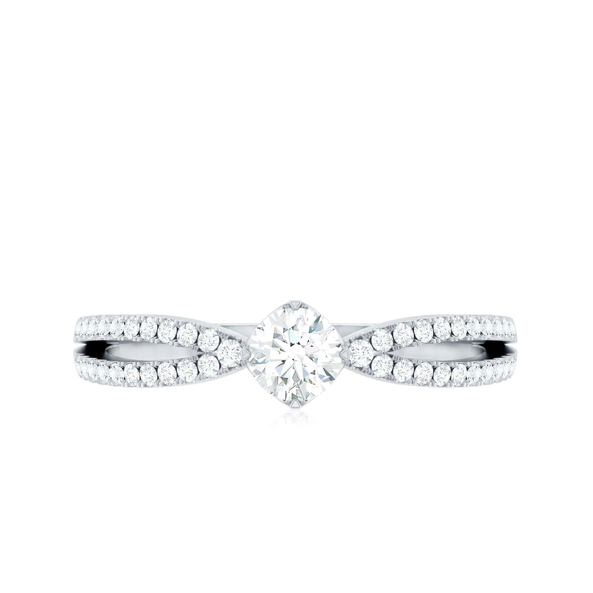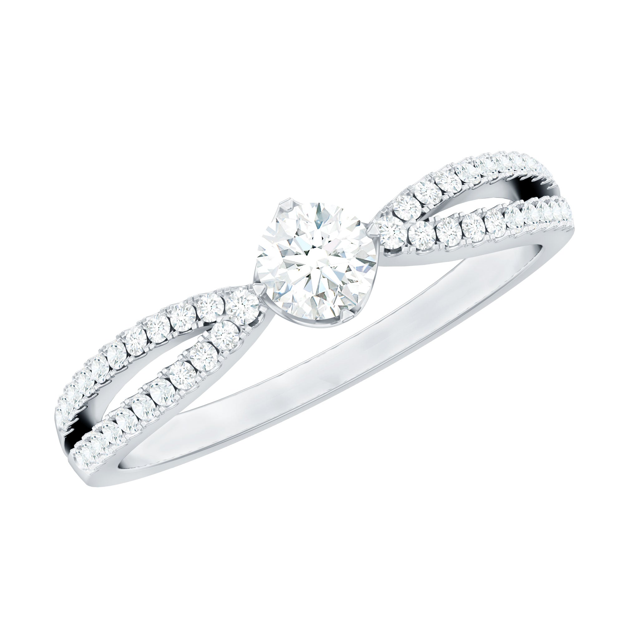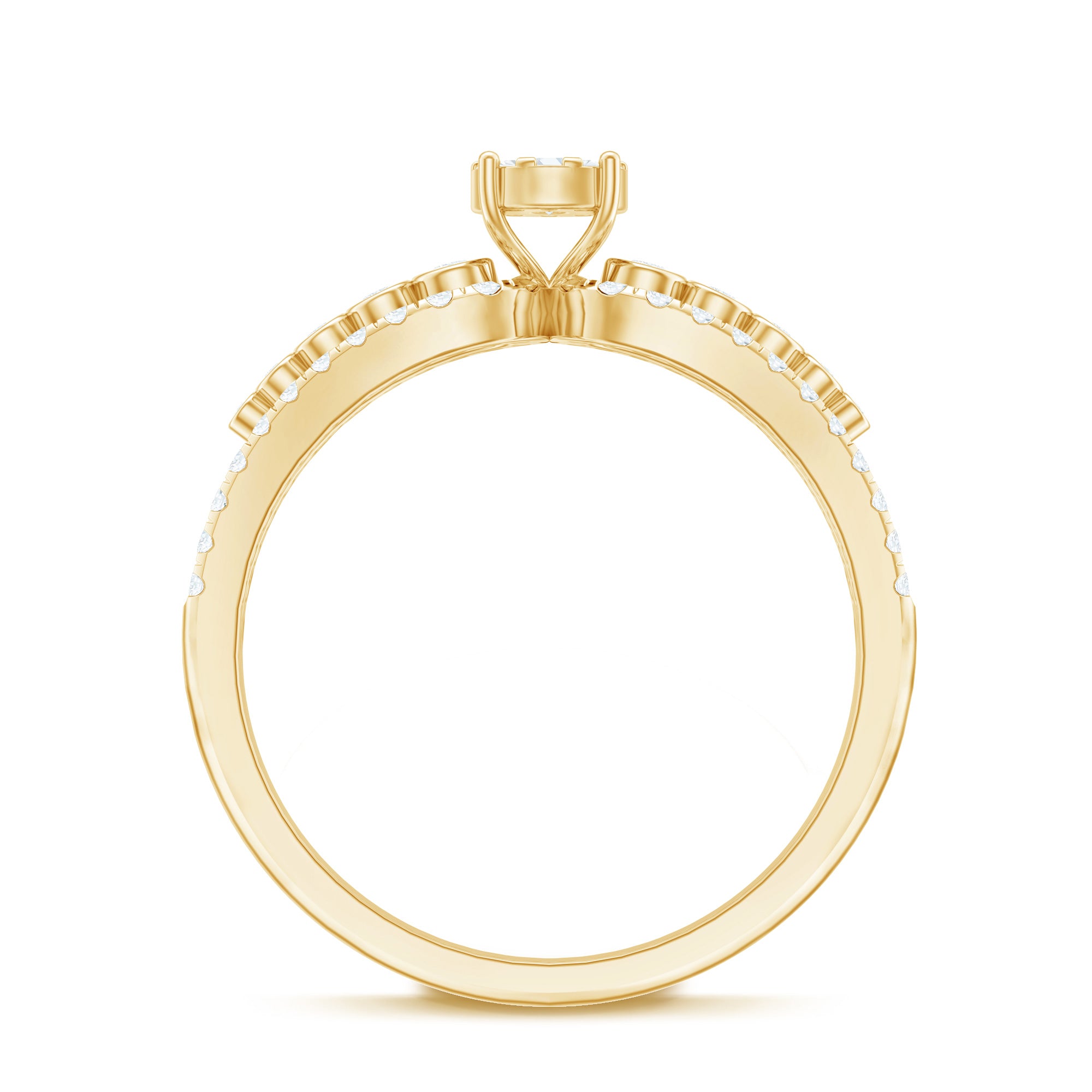 Rewarded as the most popular and classic ring style for conventional couples, a Solitaire Ring boasts the Centerpiece of a Diamond that stands all alone. Moreover, in this Single Diamond Engagement Ring, all the emphasis is put on the sparkle of the Center Diamond (owing to its enormous size of 6 MM or more). While it might appeal owing to its timeless aesthetic, this ring style will take you by surprise with the kind of versatility that it offers. For instance, while a Round Diamond Engagement Ring resonates with understated and classic senses of style, one mounted with fancier cuts like Pear, Princess, Marquise, etc., speaks to the trend-savvy bride-to-be(s). On the other hand, if you’re the kind of couple who likes to go grand when it comes to love expression, nothing better than an Asscher, Cushion, or Emerald Cut Diamond Ring.