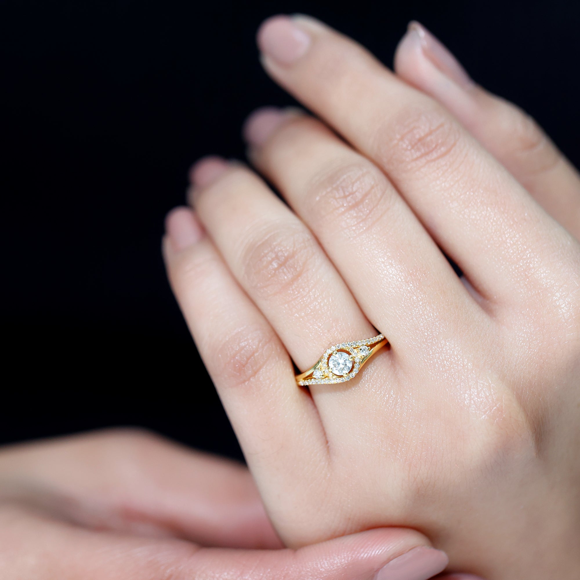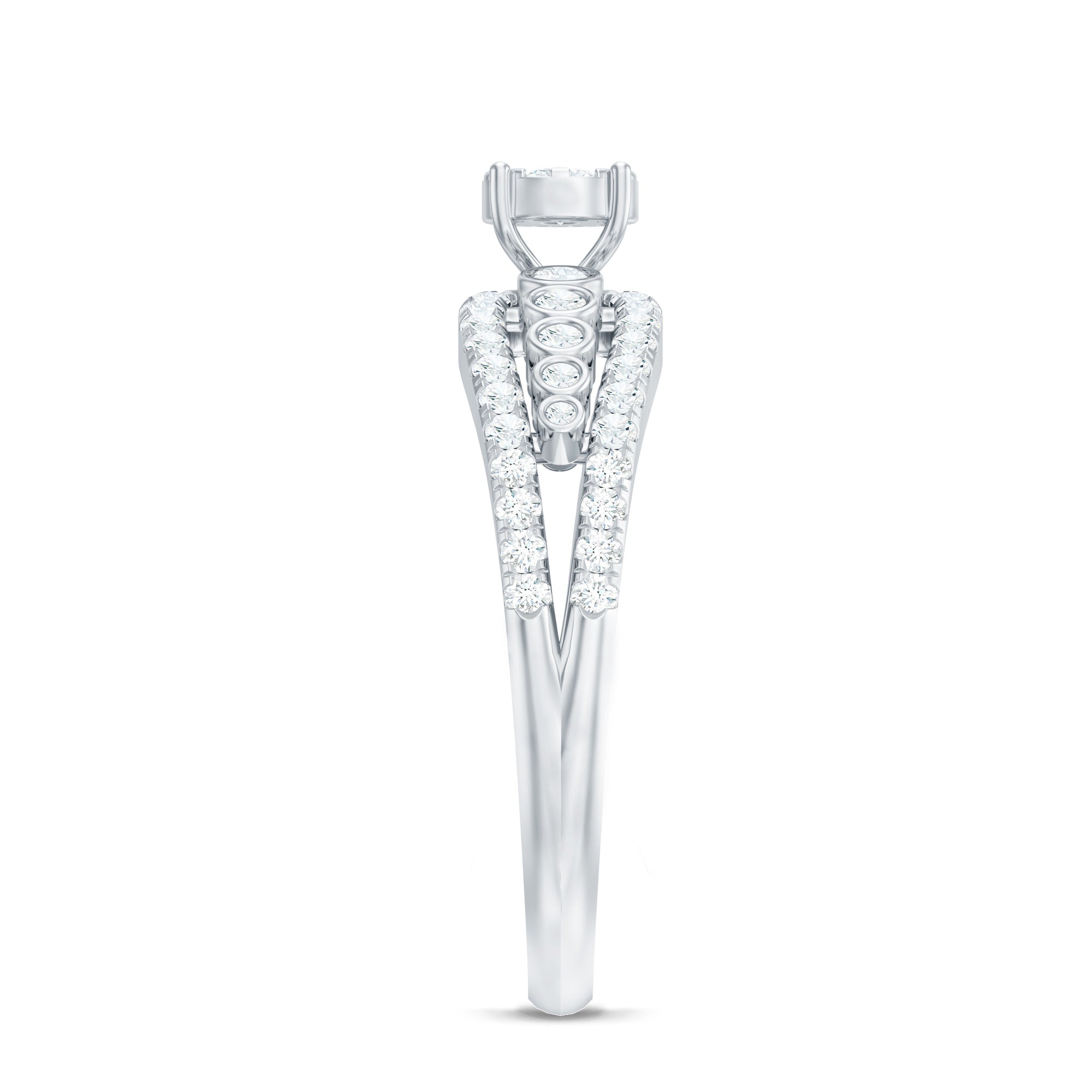 Just like the name suggests, this ring style features twin stones of Diamond that are set side by side. The contemporary aesthetic of this Two Diamond Engagement Ring is enough to tell that it appeals to the modern bride who fancies some extra bling (since twin stones mean double the sparkle). Moreover, you have a myriad of options before you owing to the many shapes it is fashioned with. While a Kyle-inspired Asscher and Pear Diamond Ring is the most iconic one in this collection, you could go for the one adorned with Round Cut if you wish to stick to the classics. On the other hand, for those seeking something romantic, there is nothing quite like a Heart Shaped Diamond Engagement Ring mounted in a two-stone setup. No matter what shape you go for, each ring in this collection unique commemorates your betrothal since the twin stones are traditionally meant to celebrate the union of two souls as one.