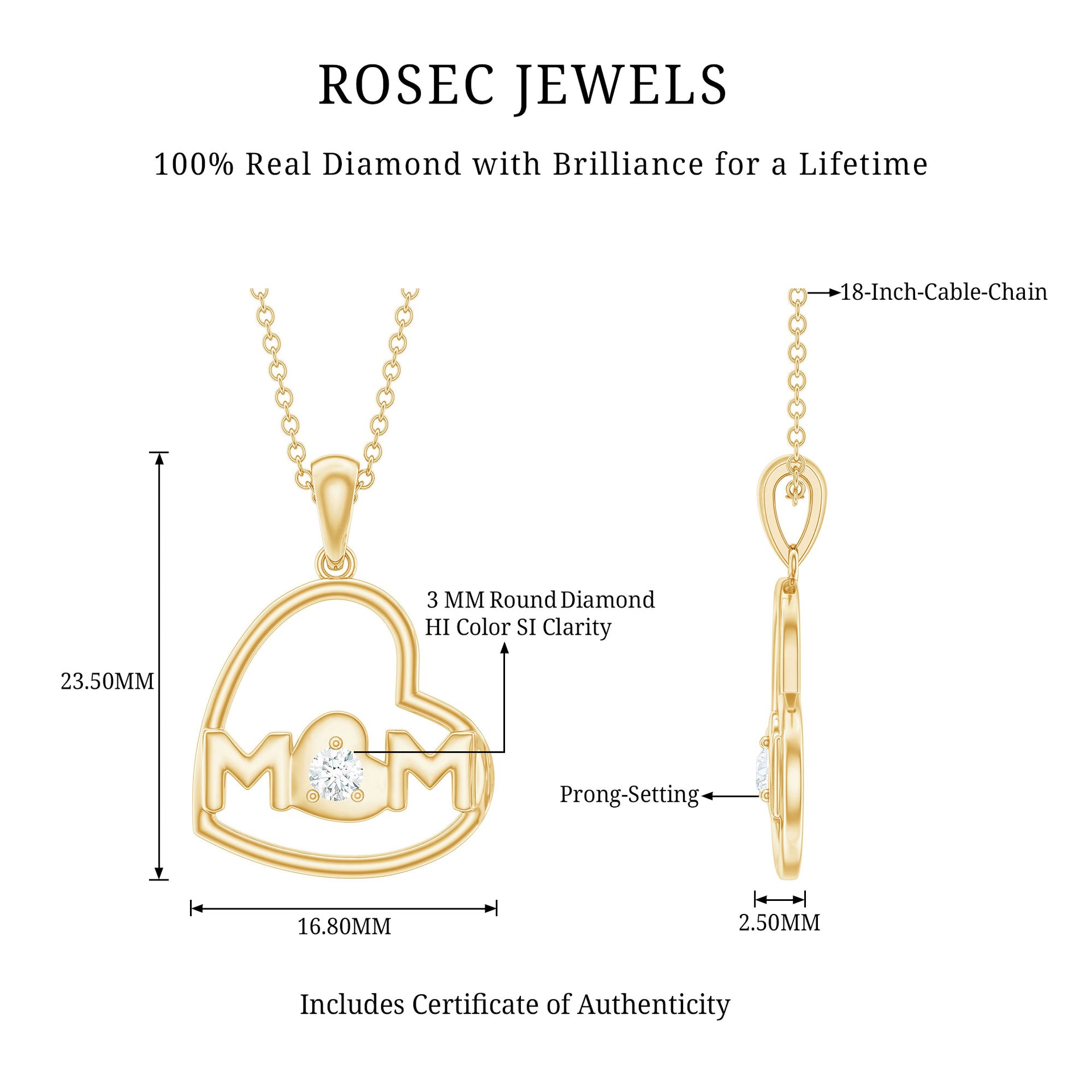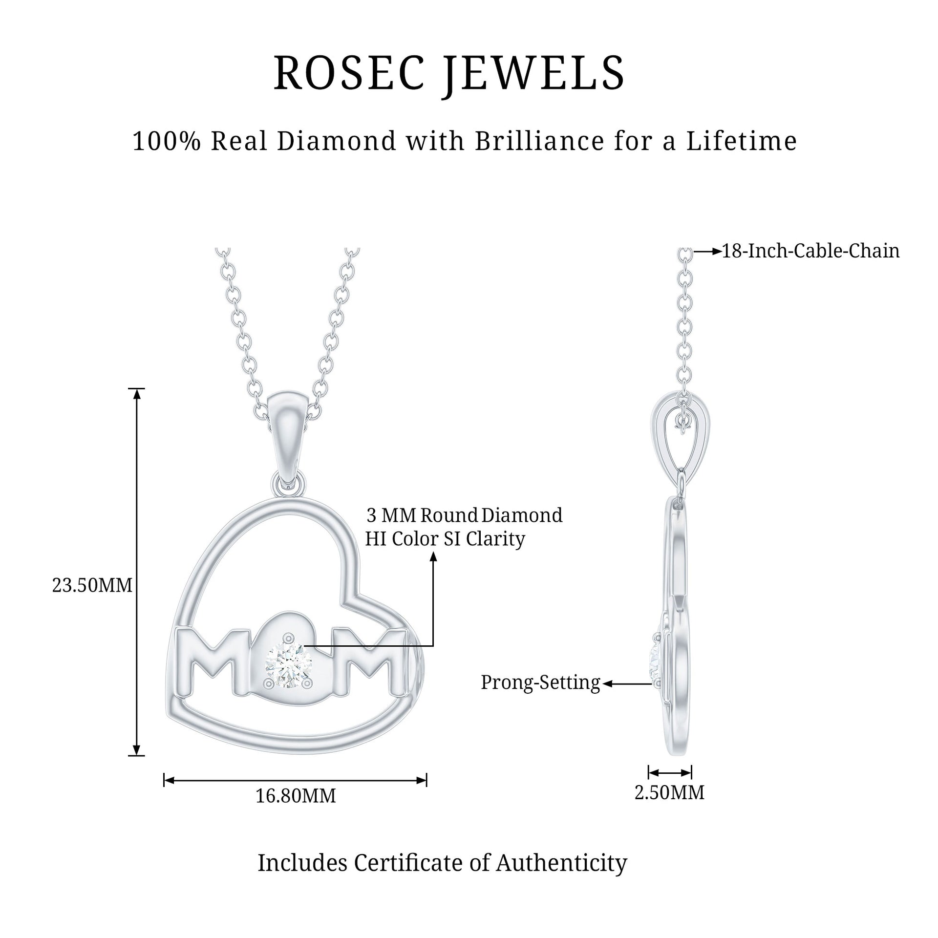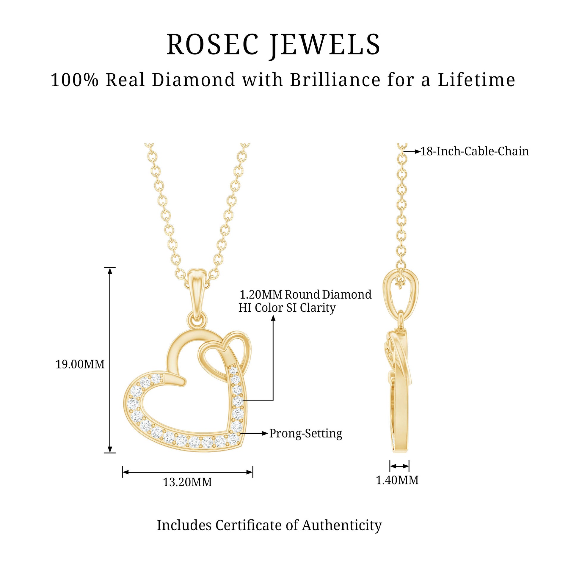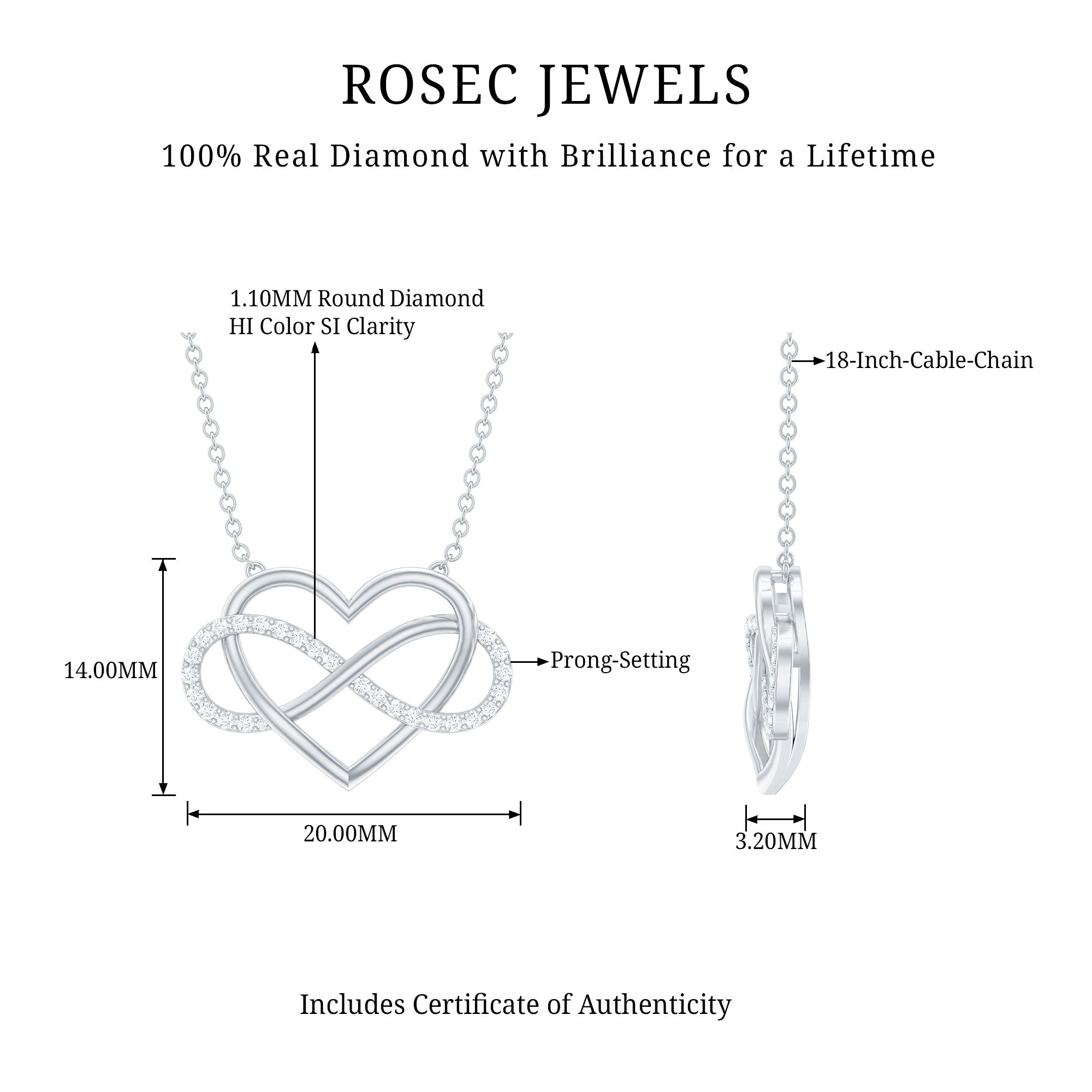 Meticulously Crafted: - Rosec jewels recognized as a leading platform for selling the HI color and SI Quality-grade diamonds means. The diamond necklaces are crafted with perfection that shows the unique creativity of our skilled artisans. Each necklace possesses eye-catching hues, have a budget-friendly price tag. Choosing for SI clarity diamonds is a top pick as they contain minor imperfections, easily visible under 10x magnification.
