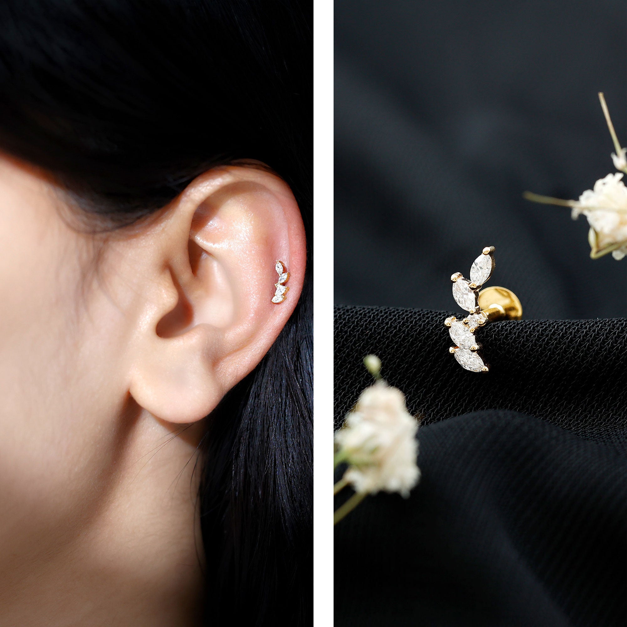 Cartilage Earrings | Conch Earrings | Nose Piercing Jewelry | Helix Earrings | Tragus Earrings | Moissanite Ear Piercing Jewelry | Pearl Ear Piercing Jewelry