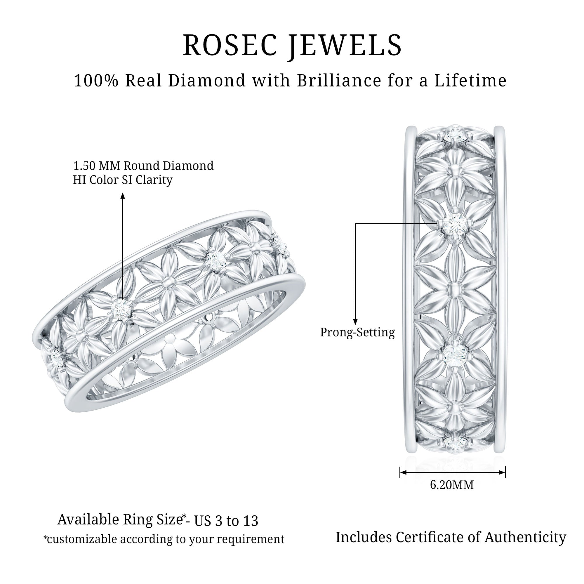 While setting out to buy diamond rings, you can look for the SGL certification to ensure the authenticity of diamond rings by Rosec Jewels.