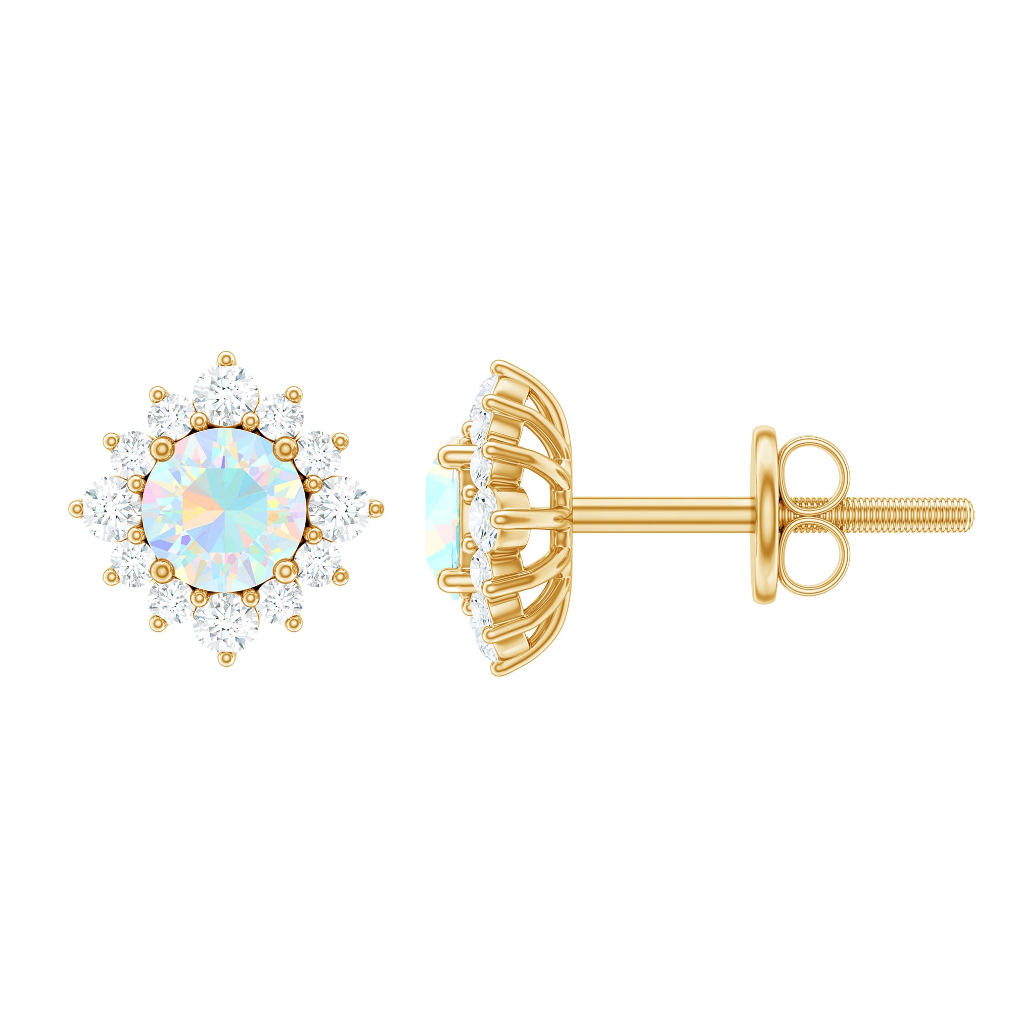 Halo Studs: Those who love extra sparkle, would definitely admire this design, which features a halo of small shining or colored gemstones, surrounding the center stone. Single, double or triple halo, not only increases the brilliance, but also offers added protection to the main gemstone.