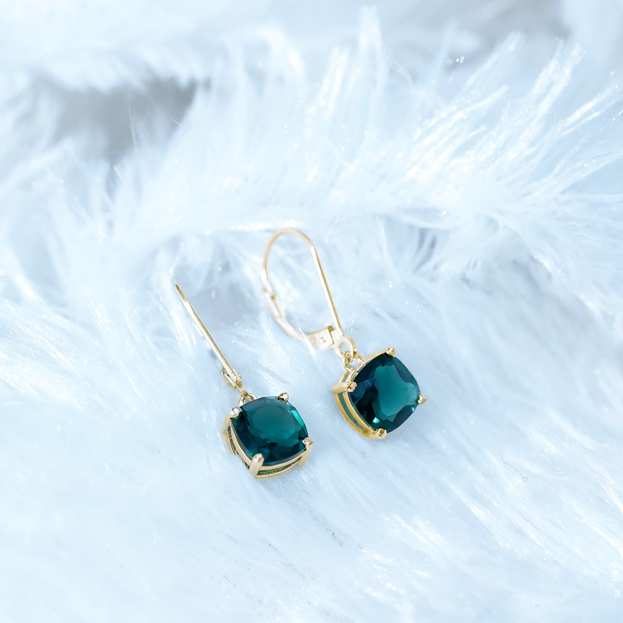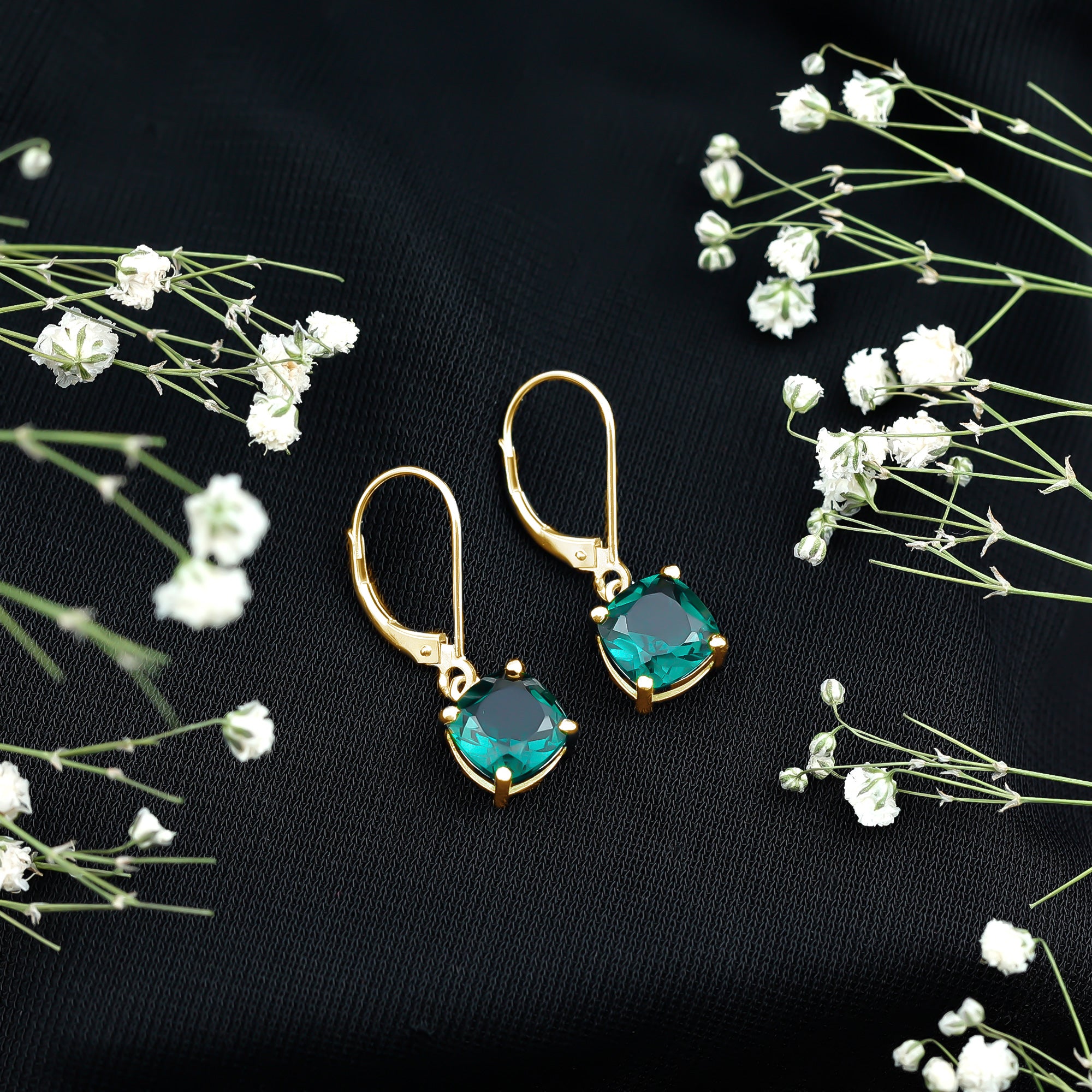 Emerald cut gemstones in earrings are quite popular. Step cut faceting of this rectangular gemstone with cut corners looks appealing and suits almost all types of styles.