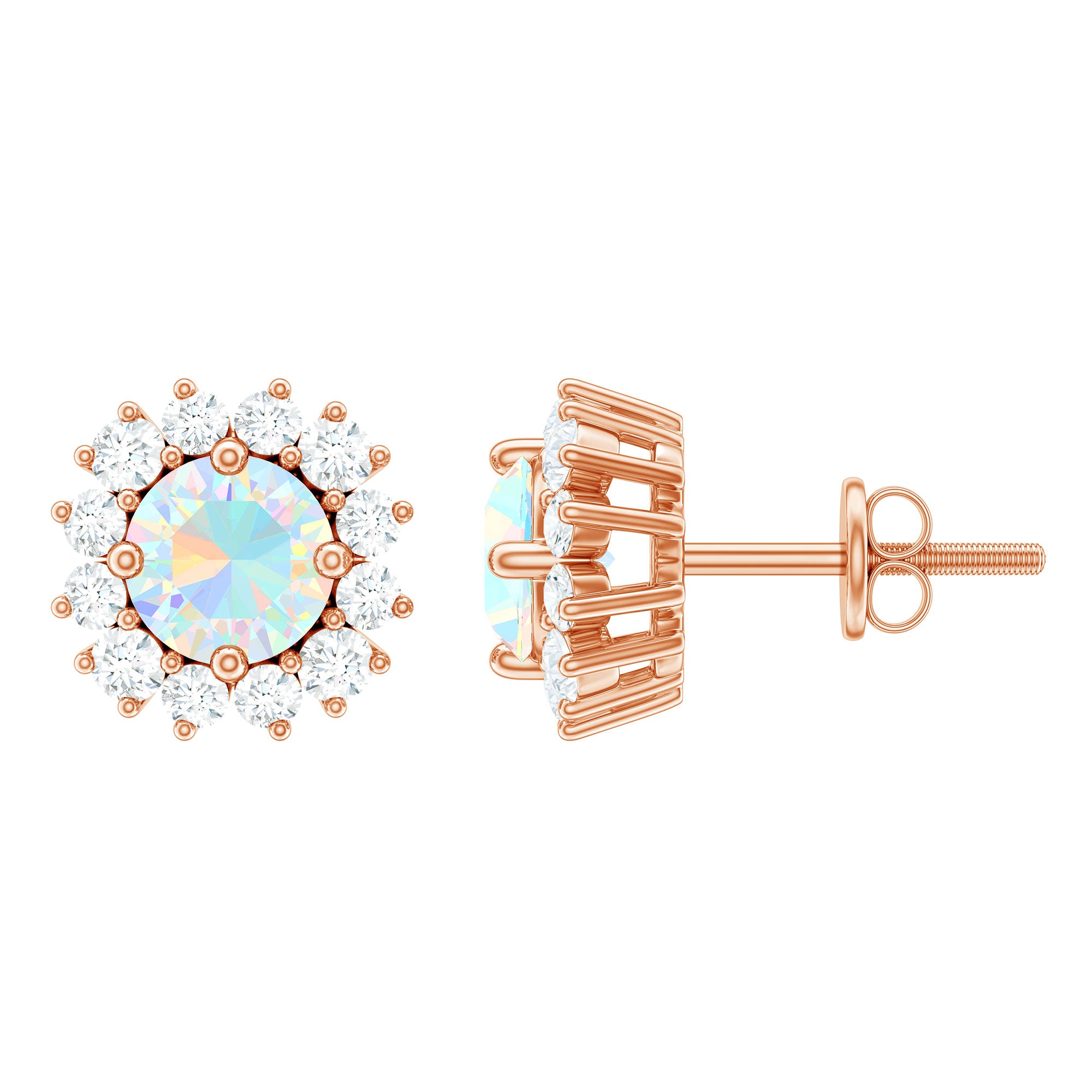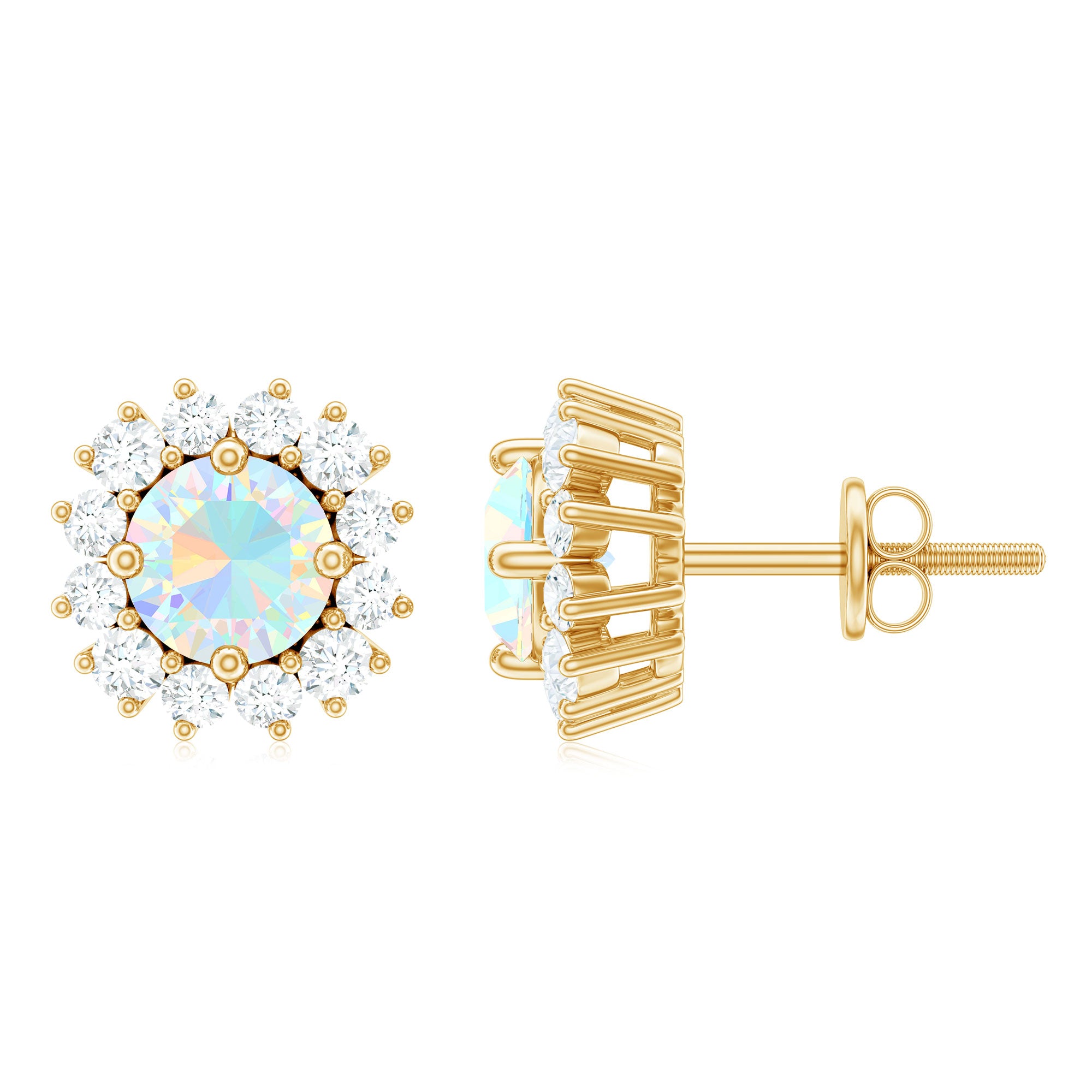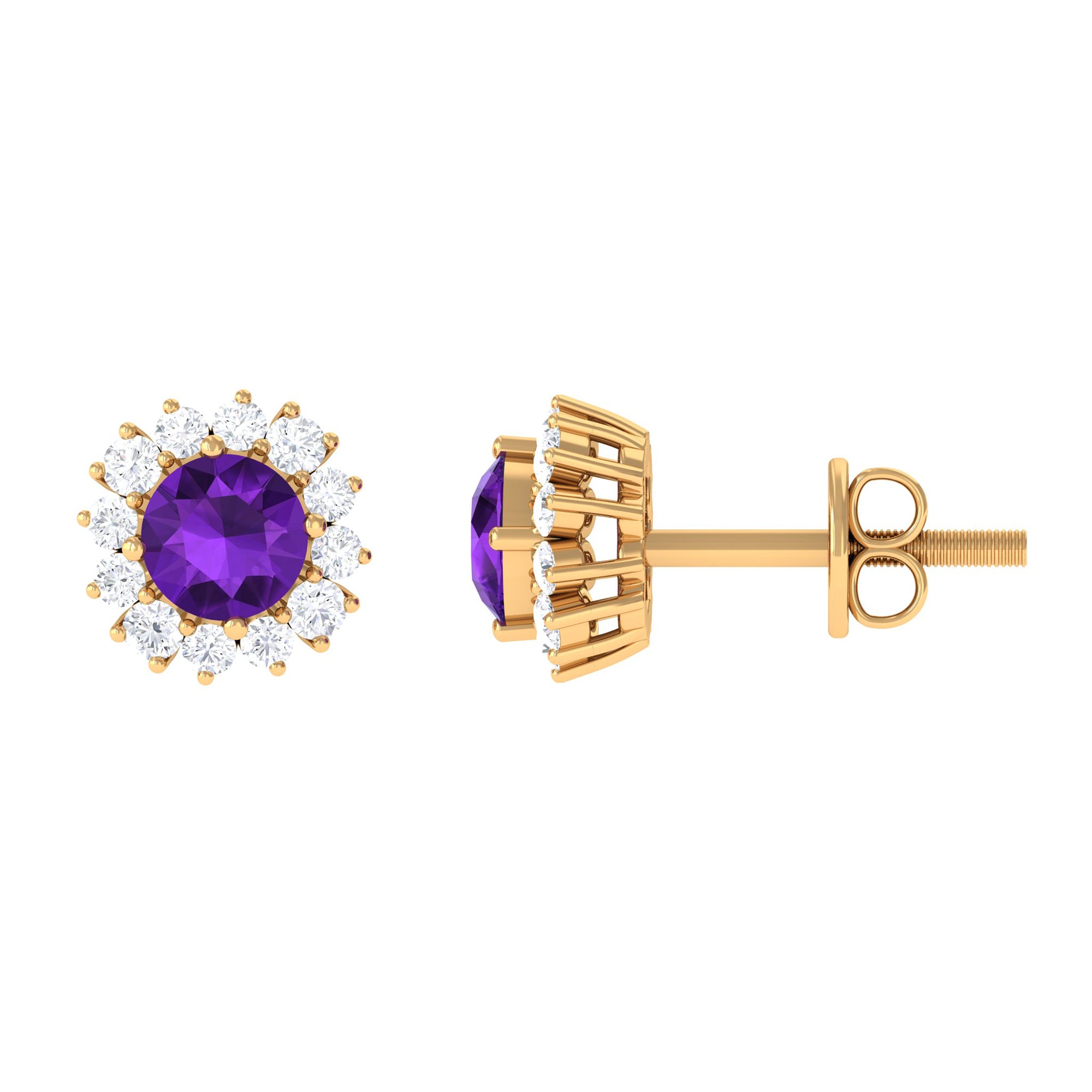 Halo Studs: Those who love extra sparkle, would definitely admire this design, which features a halo of small shining or colored gemstones, surrounding the center stone. Single, double or triple halo, not only increases the brilliance, but also offers added protection to the main gemstone.