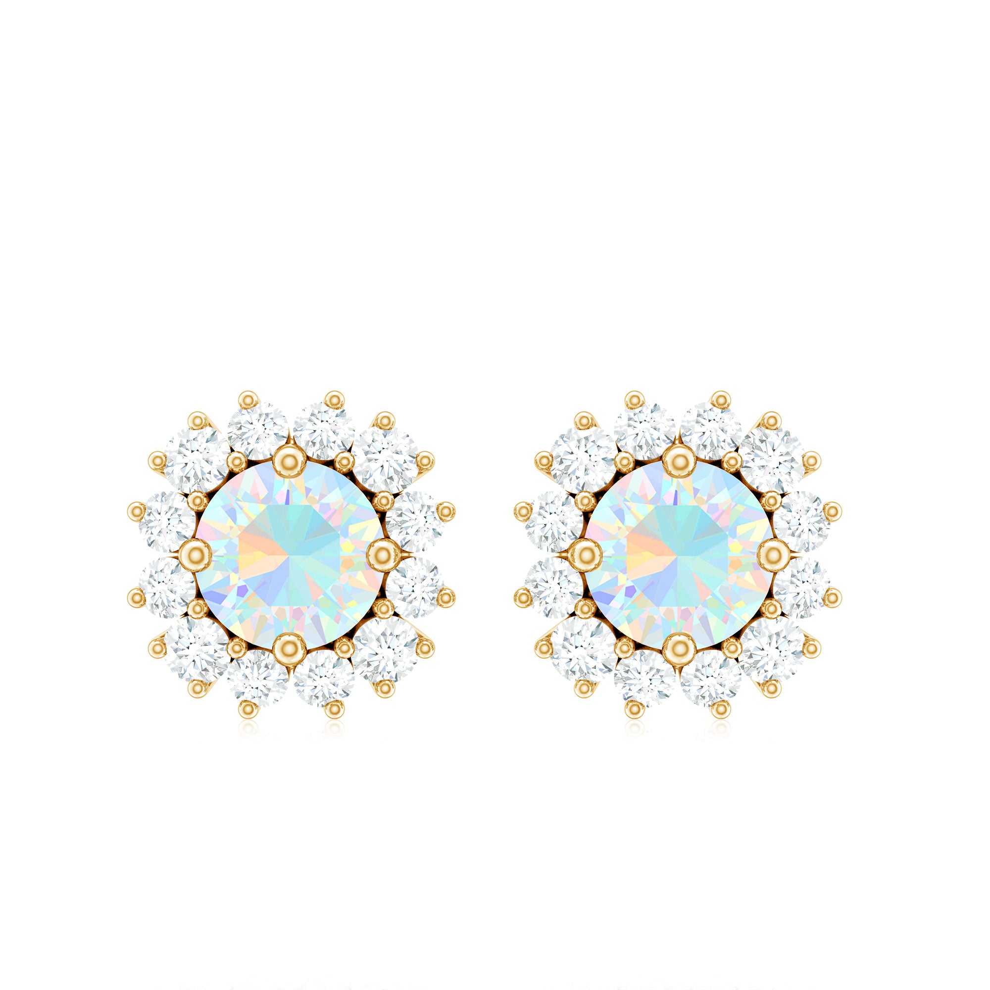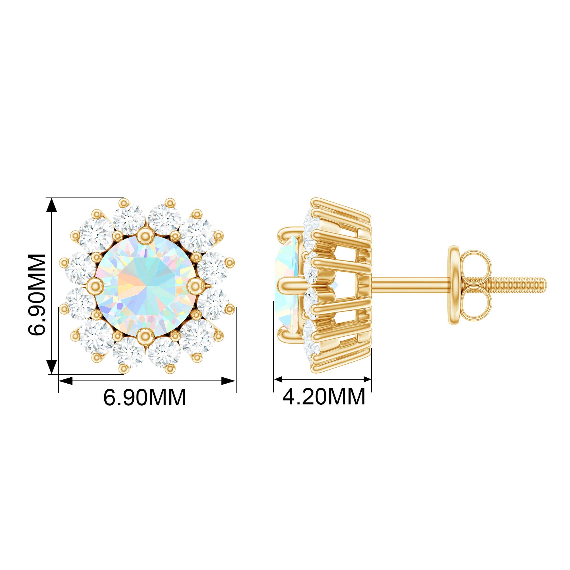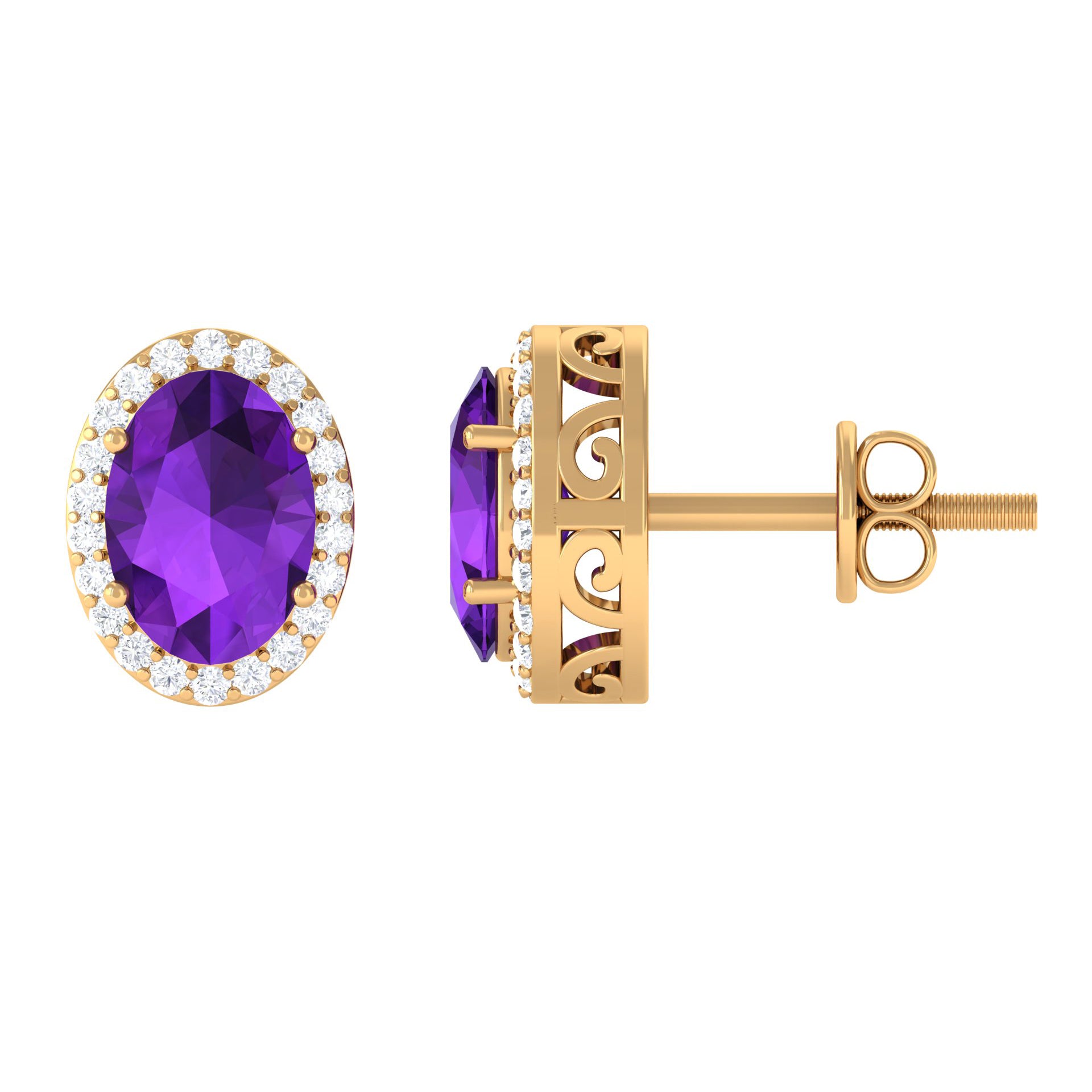 Halo Studs: Those who love extra sparkle, would definitely admire this design, which features a halo of small shining or colored gemstones, surrounding the center stone. Single, double or triple halo, not only increases the brilliance, but also offers added protection to the main gemstone.