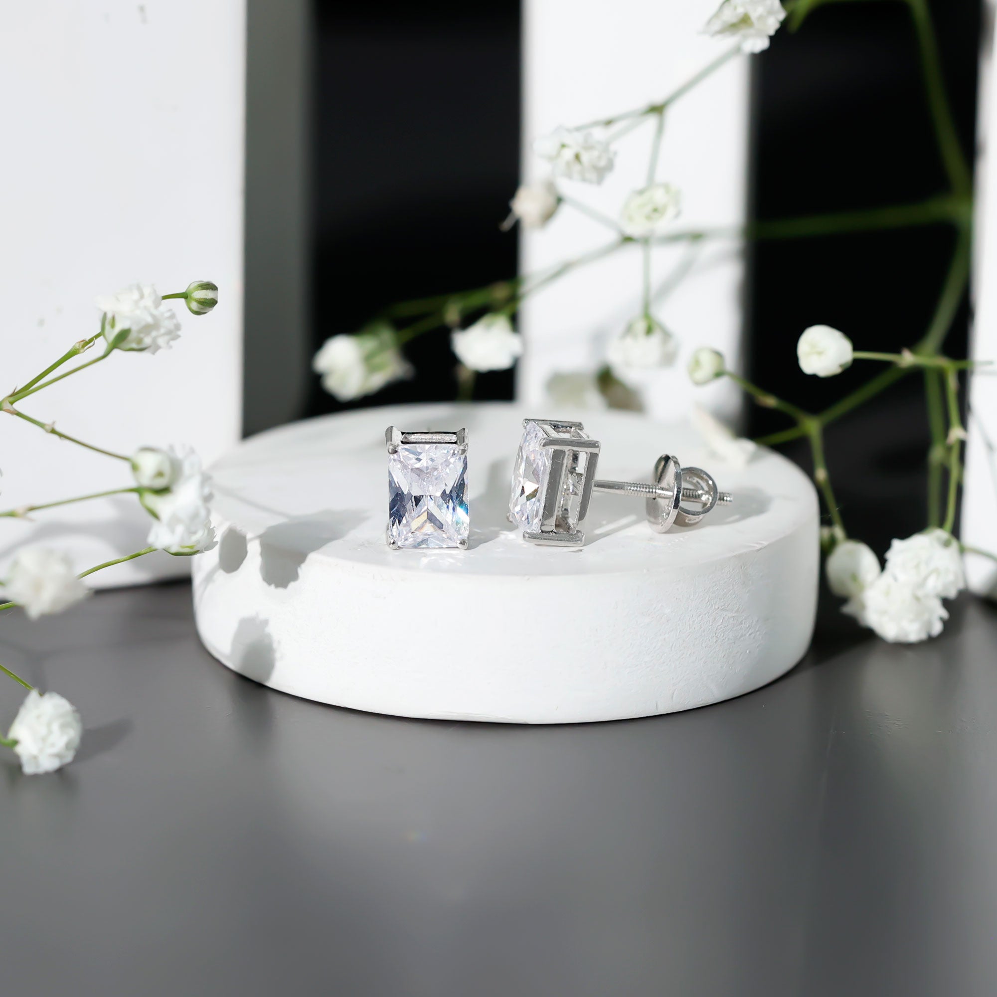 Emerald cut gemstones in earrings are quite popular. Step cut faceting of this rectangular gemstone with cut corners looks appealing and suits almost all types of styles.