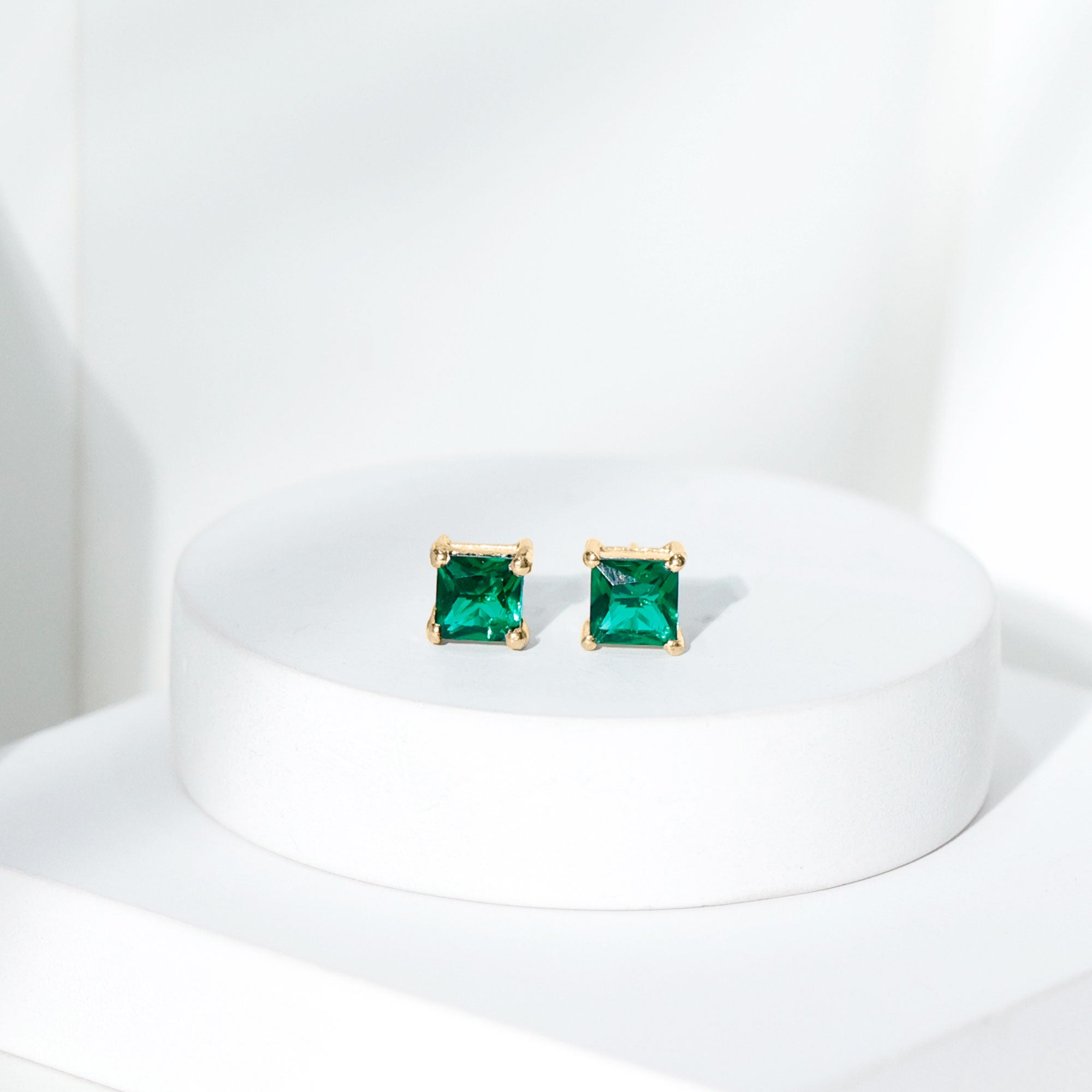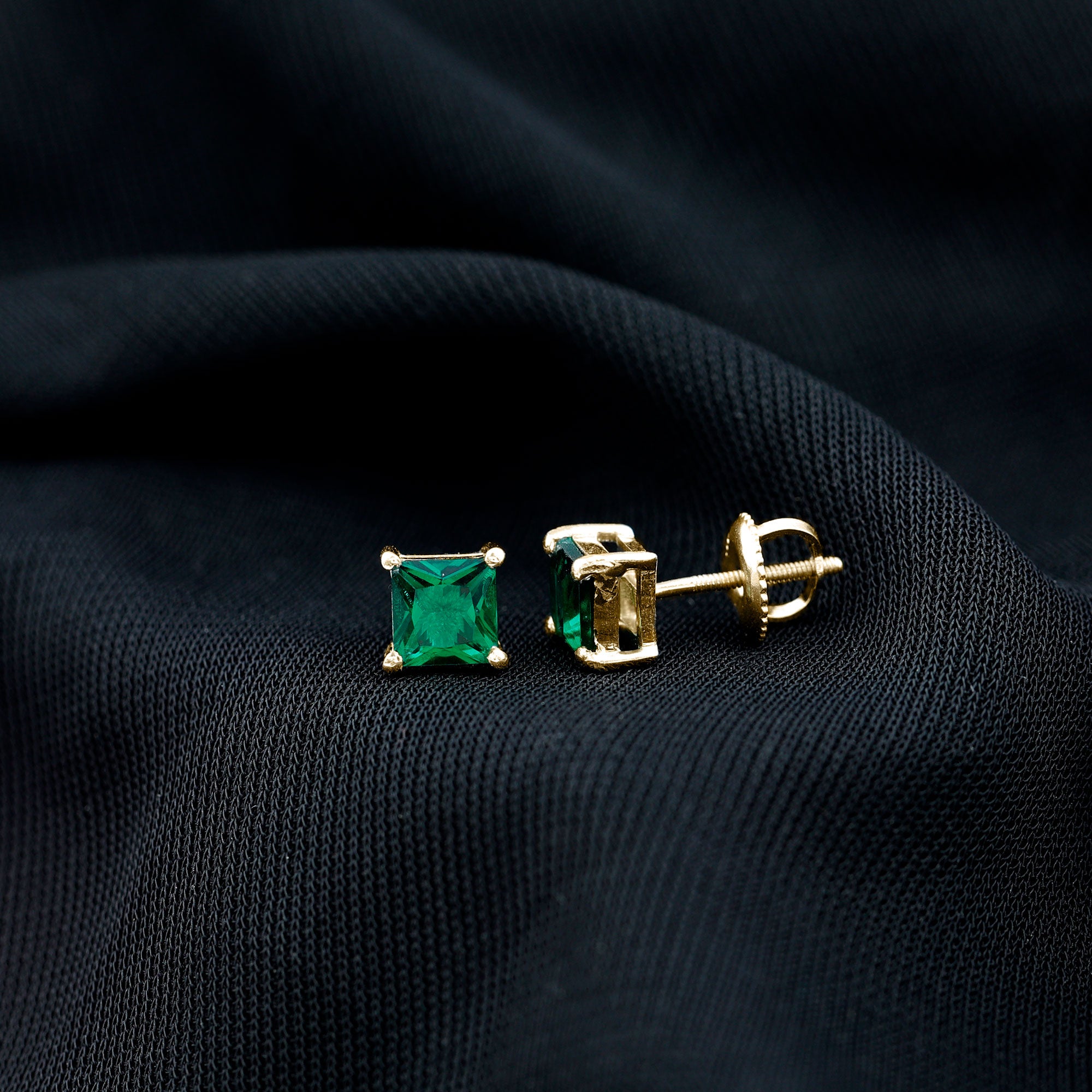 Emerald cut gemstones in earrings are quite popular. Step cut faceting of this rectangular gemstone with cut corners looks appealing and suits almost all types of styles.