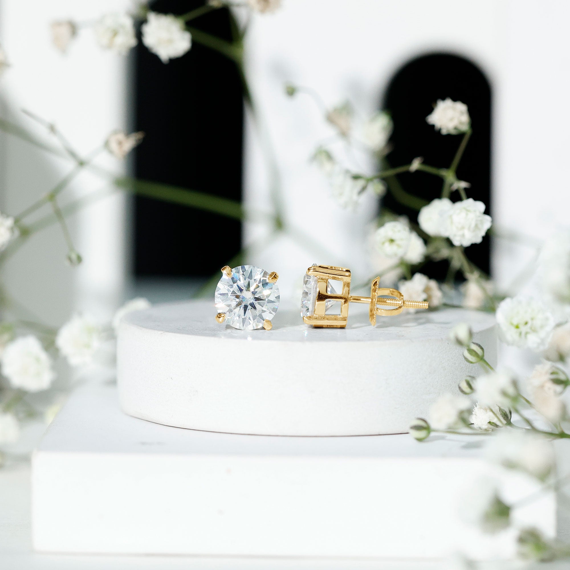 These metals complement gemstones in different ways. They enhance the color of colored gemstones, add brilliance to colorless stones, which ultimately increases the overall appeal of earrings. If you are looking for 1 carat diamond earrings then yellow gold is a perfect choice.