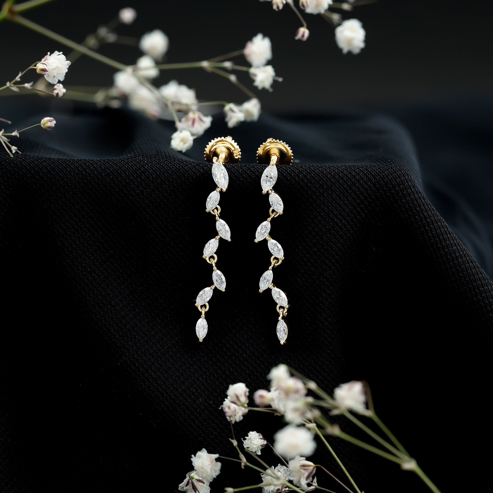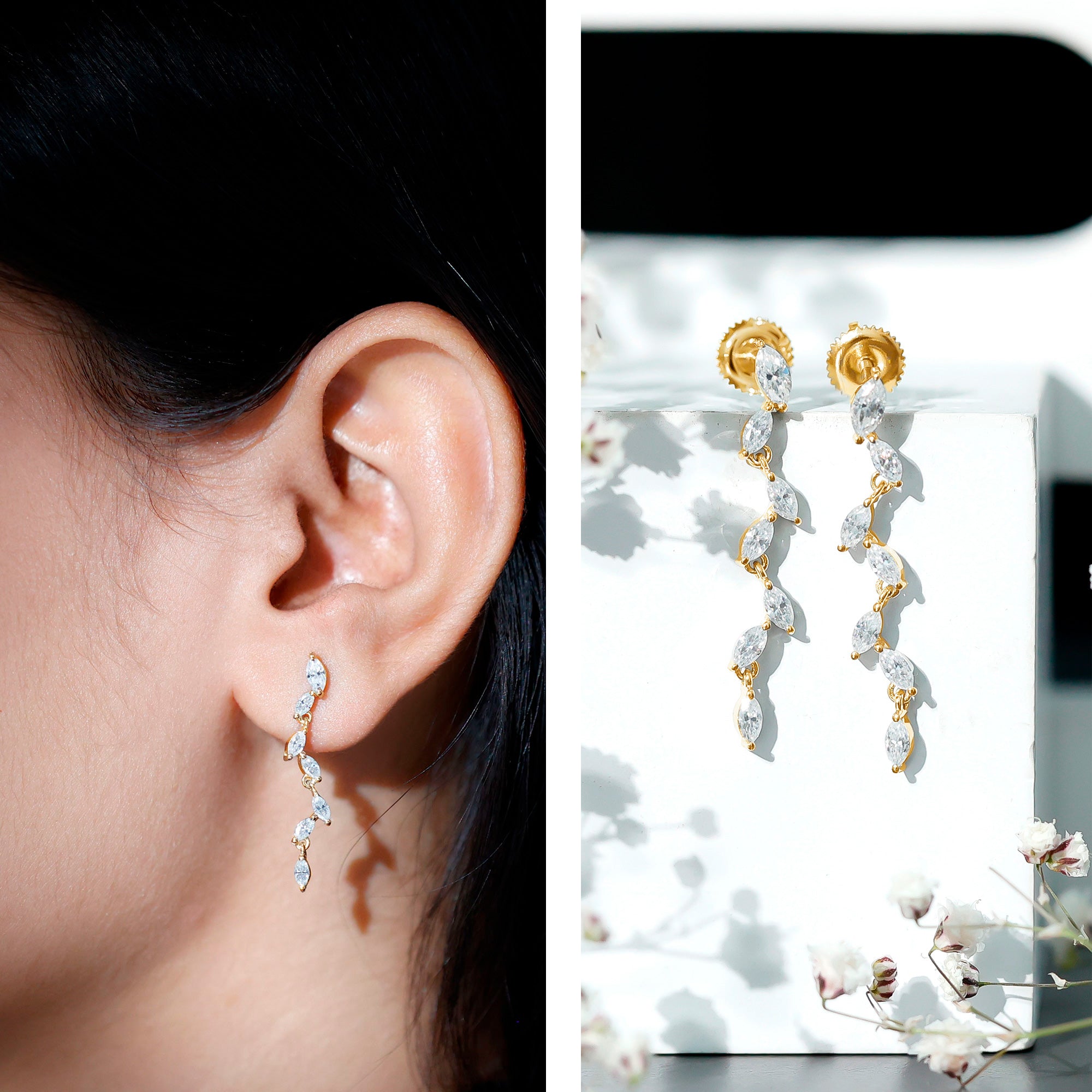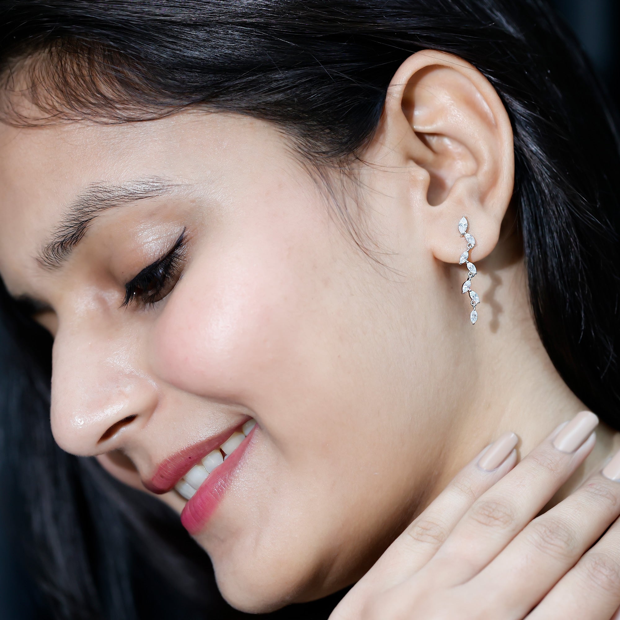 Danglers: Dangle earrings are ear pieces that gracefully hang below the earlobe. Sometimes a larger gemstone sits on the lobe with smaller ones dangling below, while in other designs, a smaller stone rests on the lobe and a larger one hangs down. A good choice to elevate your casual and formal looks. Drop earrings are also similar to dangle earrings, the only difference is they stay in place.