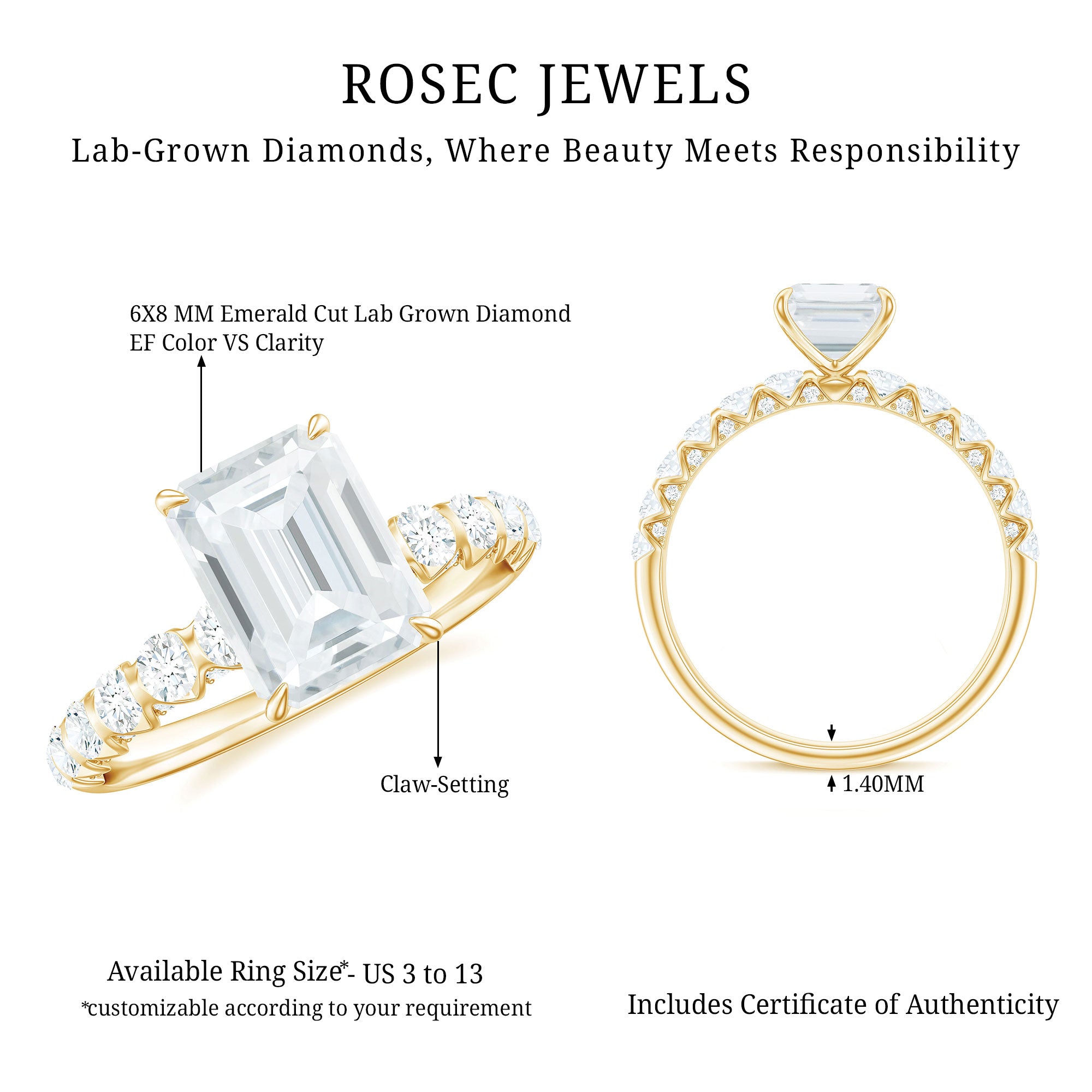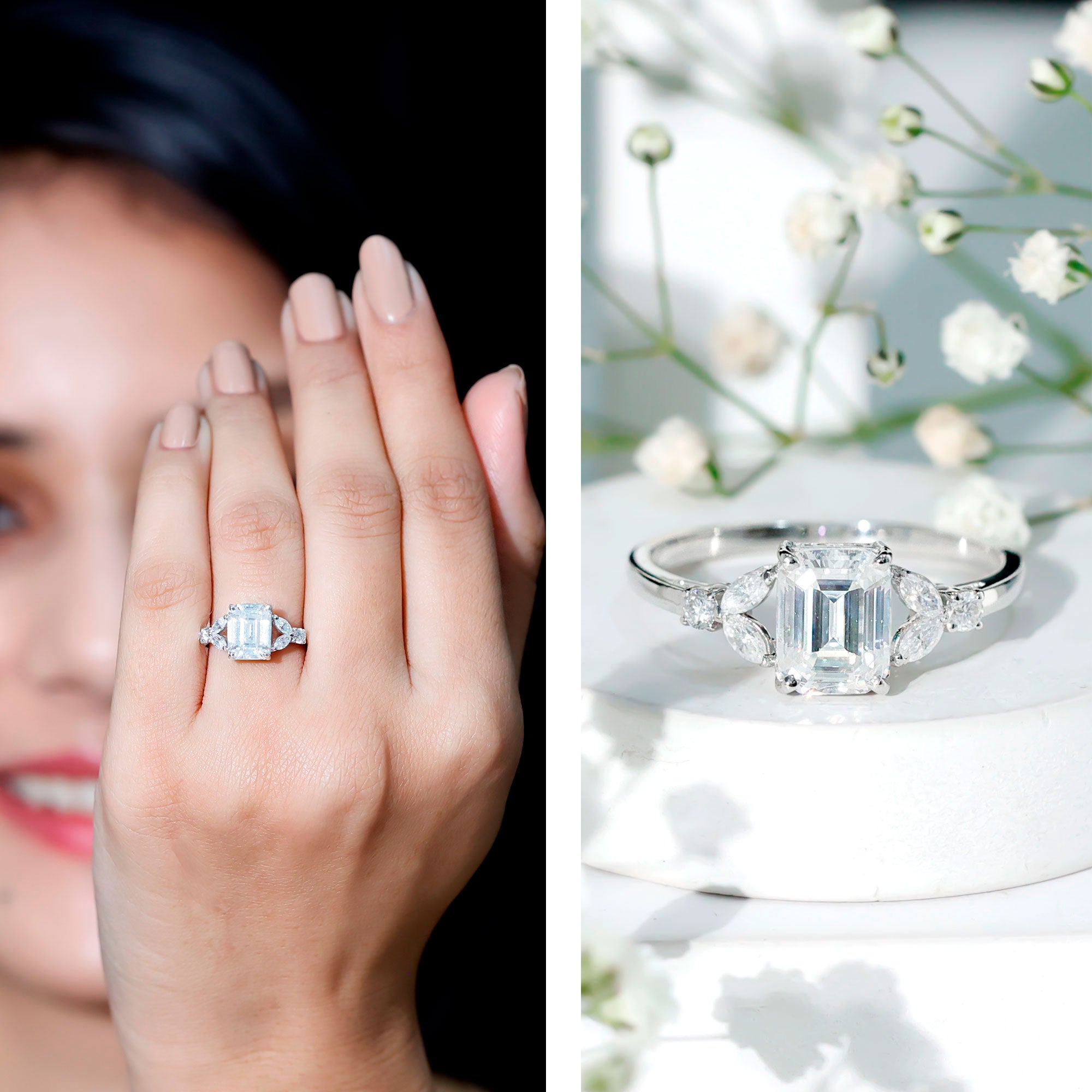 Flattering Fingers: The sleek lines and elongated shape of the emerald cut create a slimming, lengthening effect on the finger. This flattering feature makes it a favorite among those who love elegance with a refined touch.