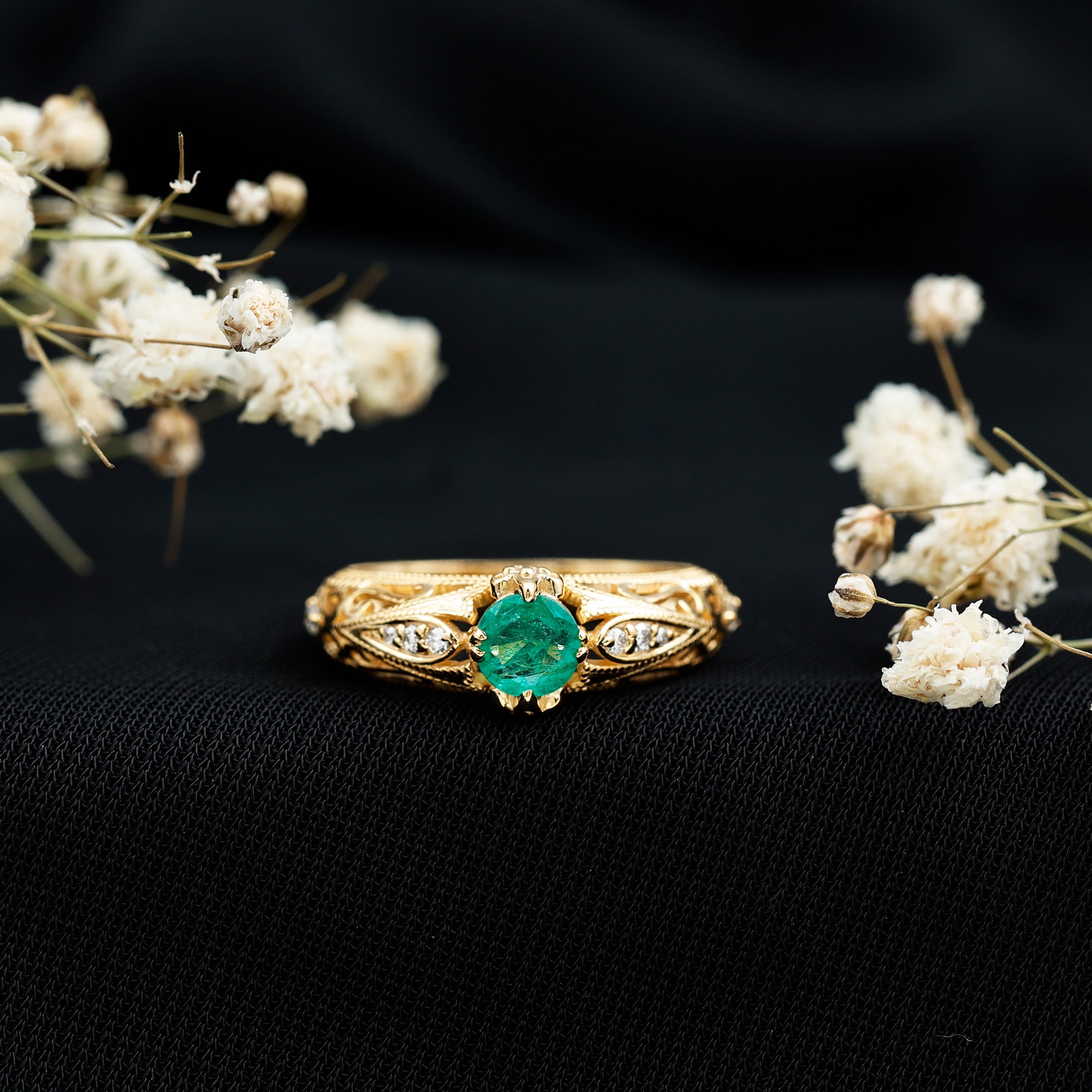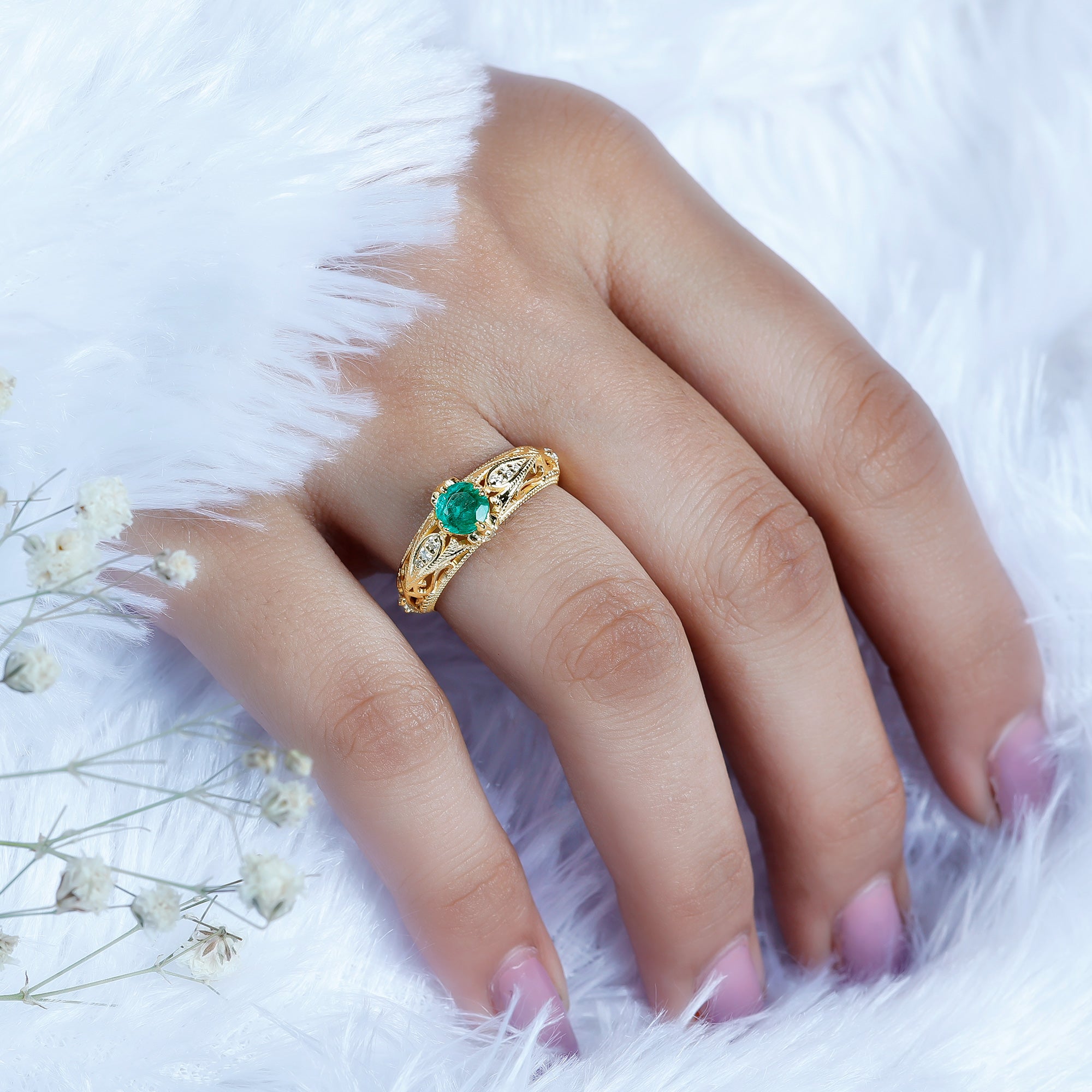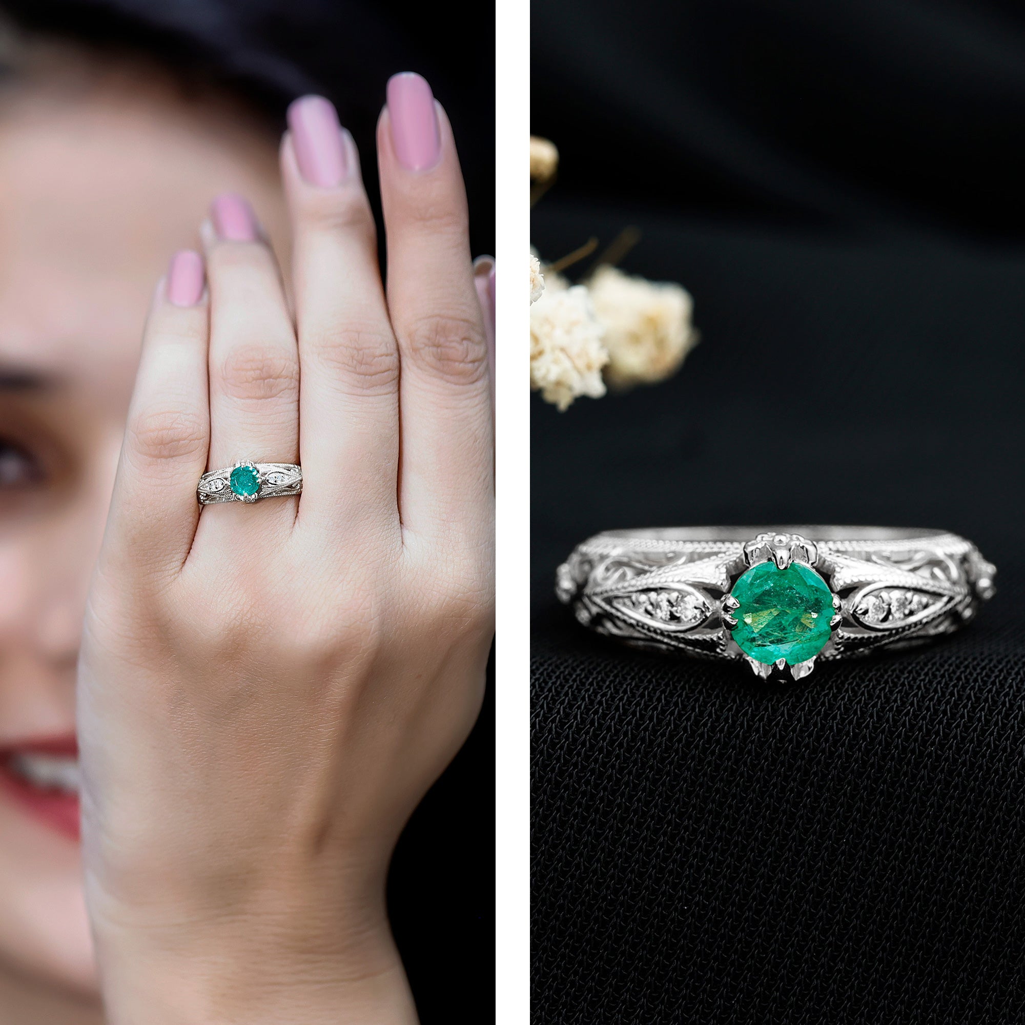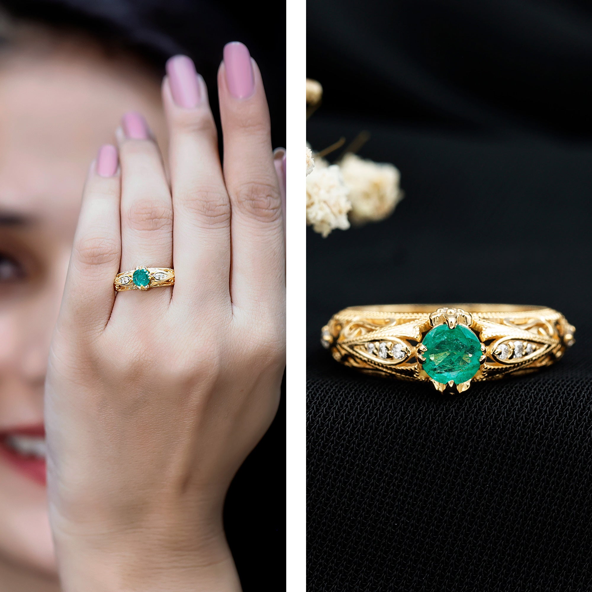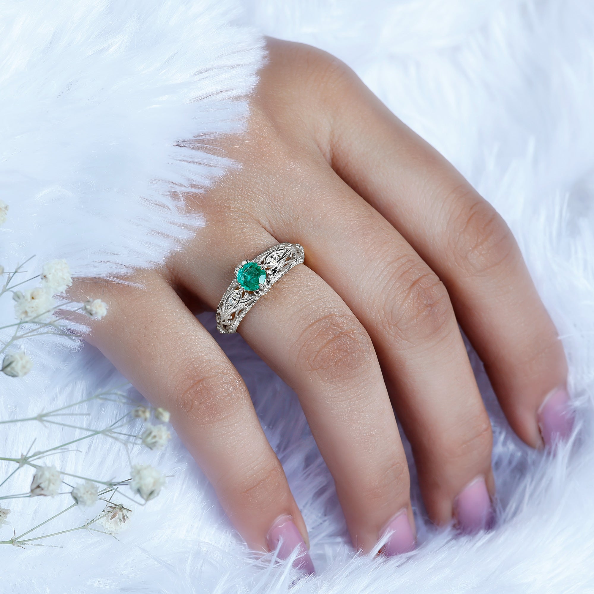 • Vintage Inspired Emerald Rings: - Stands out as antique and unique due to its nostalgic vibe. Our collection of vintage-inspired emerald rings merges the elements of Art Deco style, Victoria, and Edwardian design, making everlasting emerald jewelry.