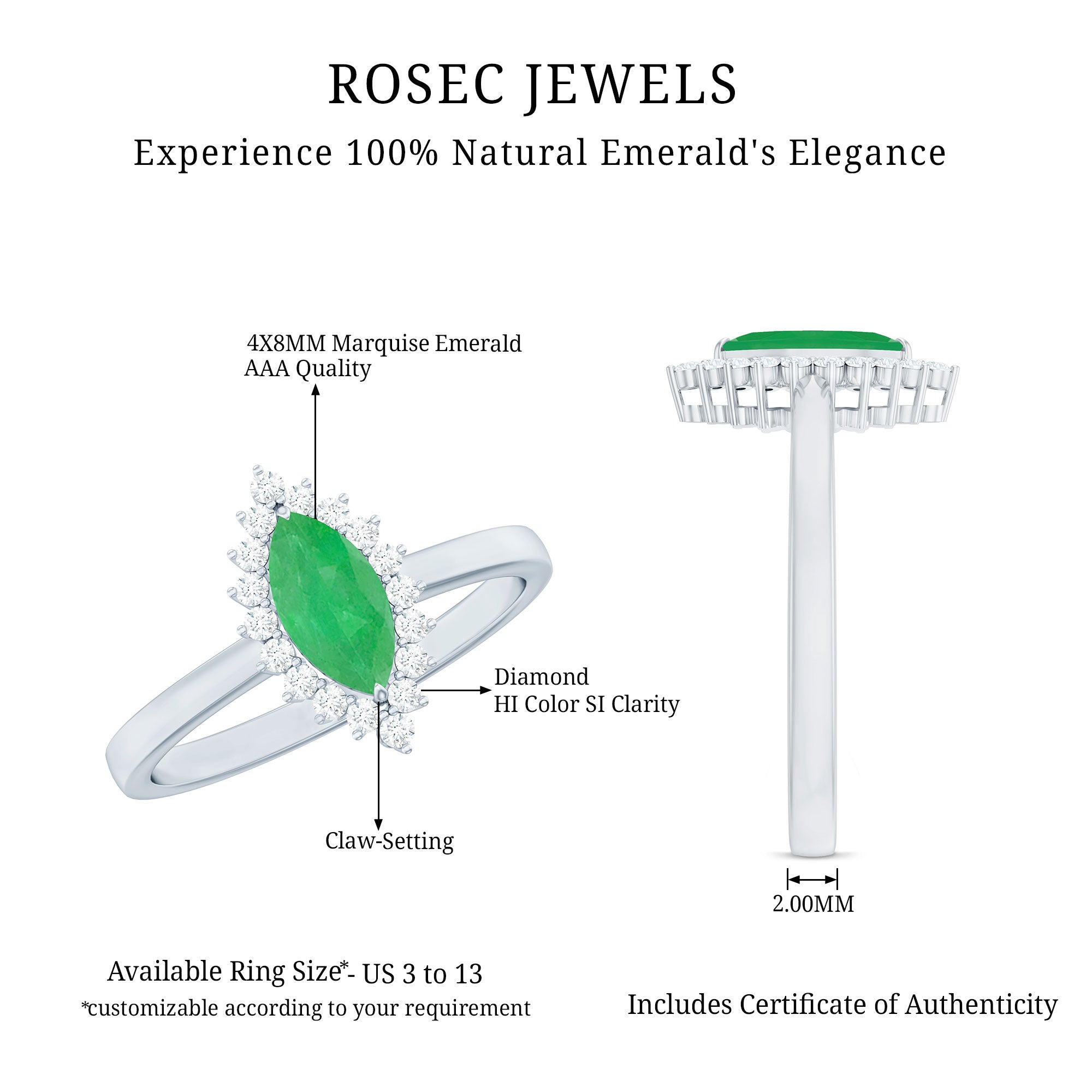 The cost of an emerald engagement ring for women is highly influenced by several factors such as color, clarity, cut, and carat weight. At Rosec Jewels, a natural emerald engagement ring can cost you anywhere between $434 and $1699, boasting excellent color and minimal inclusions. Also, the overall cost is further shaped by the choice of metal for the ring setting and the addition of diamonds or other gemstones, resulting in a diverse price range.