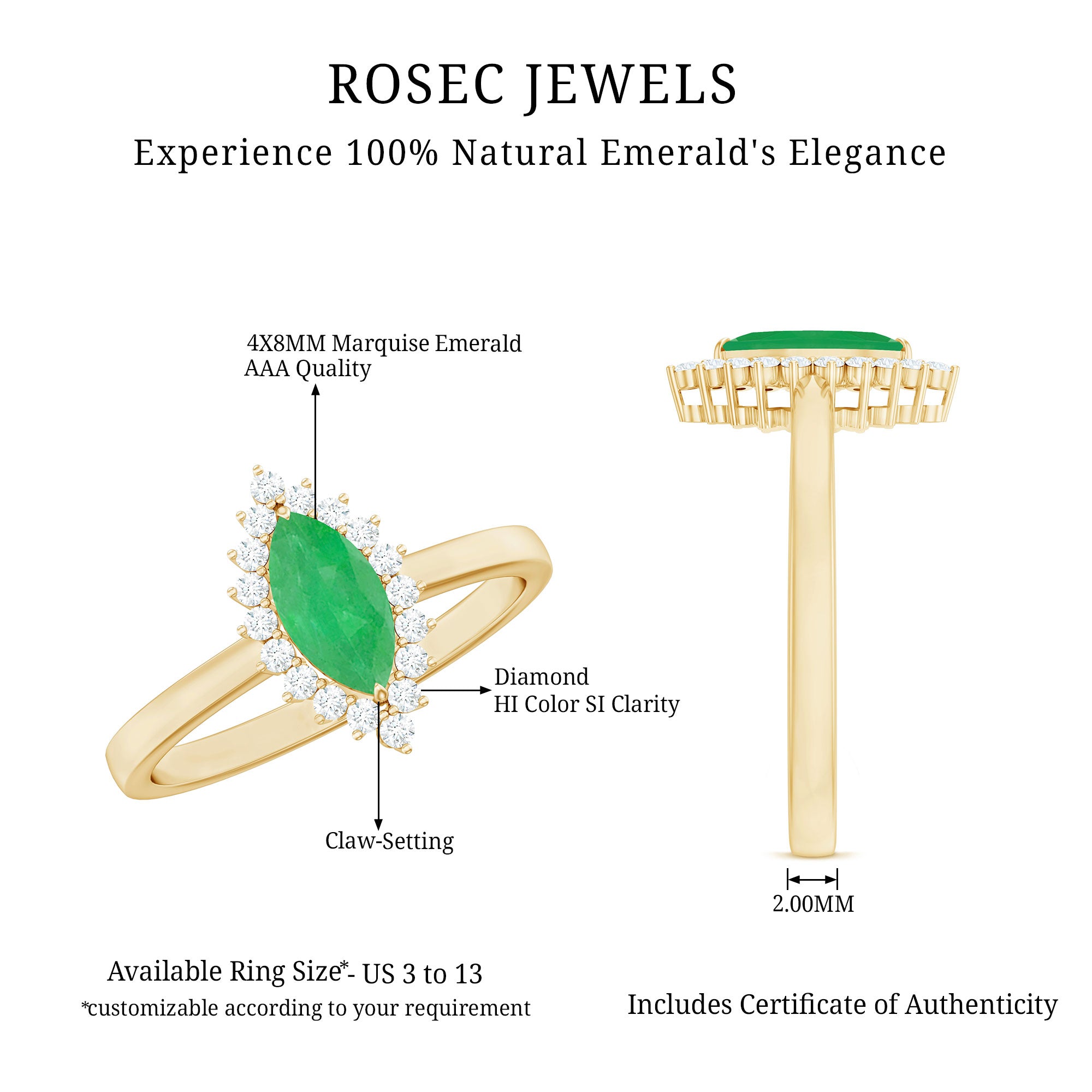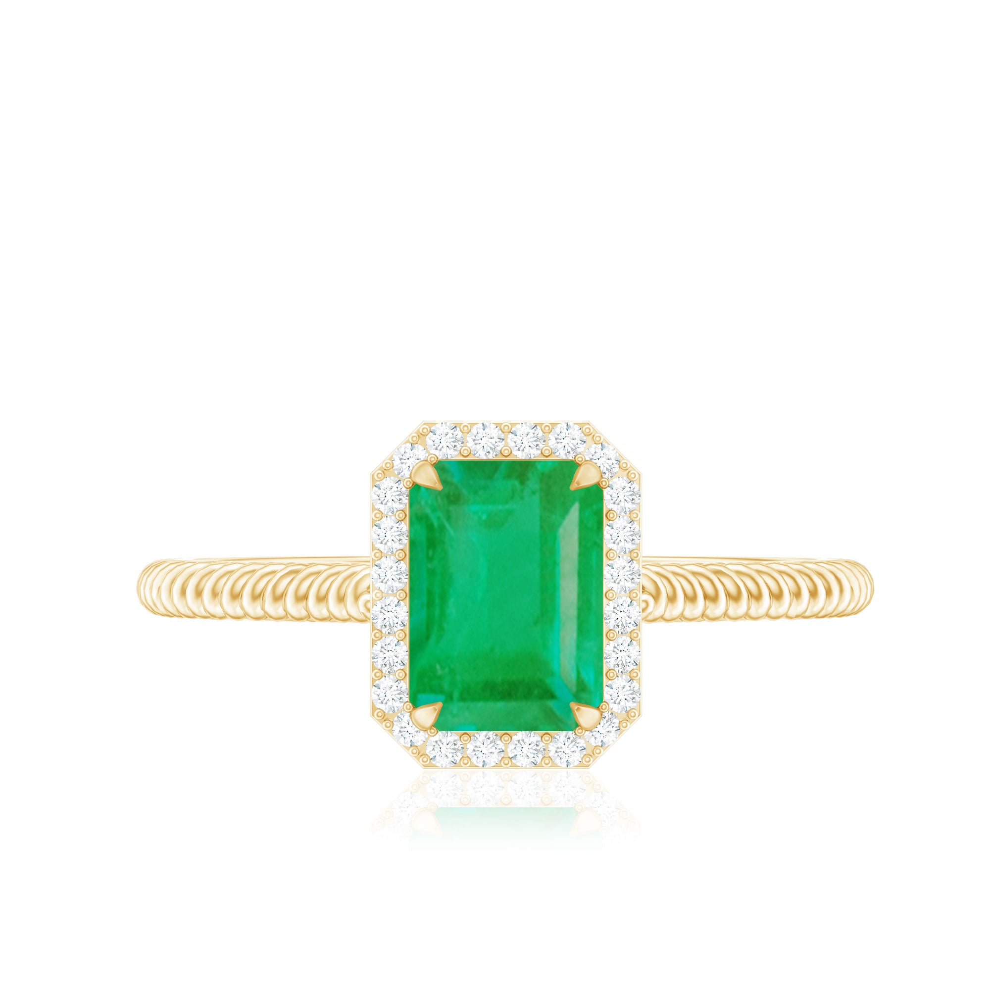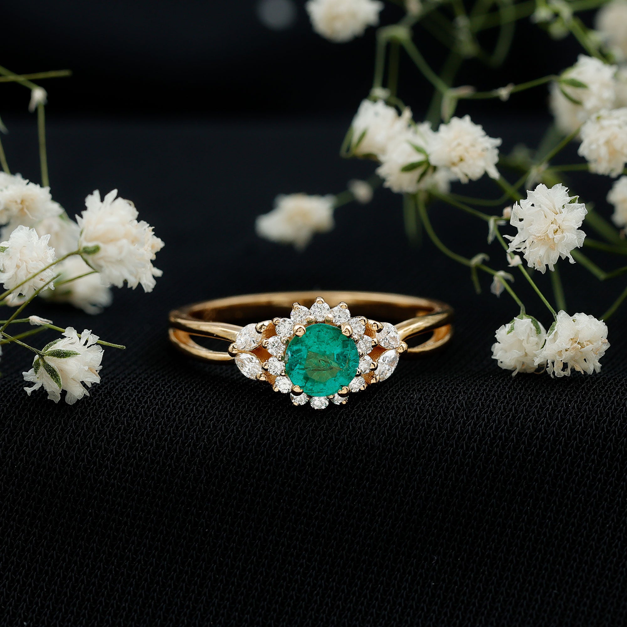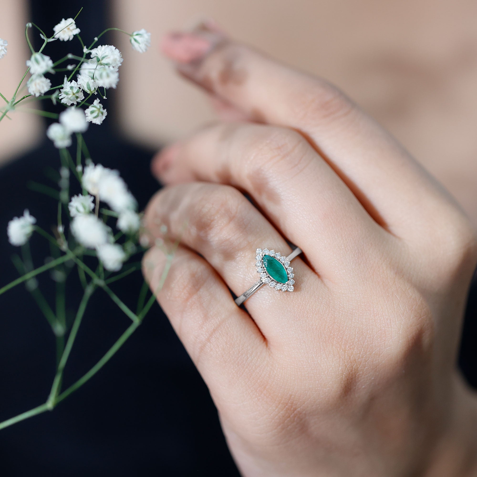 • Emerald Halo Engagement Rings: - Halo-style rings add a layer of shine and glamour to the overall appearance of the ring. These rings highlight the emerald gemstone a bit bigger due to the halo design.