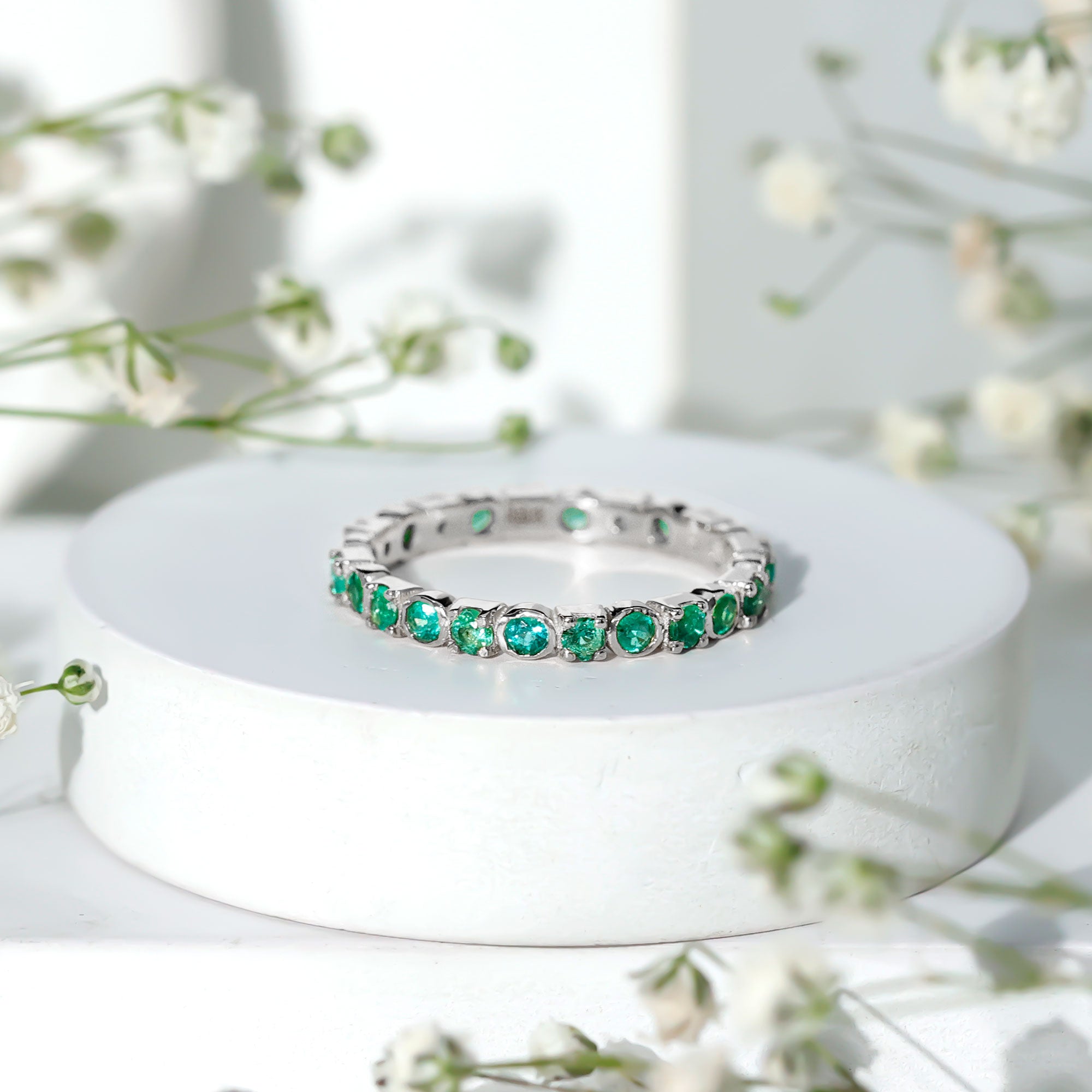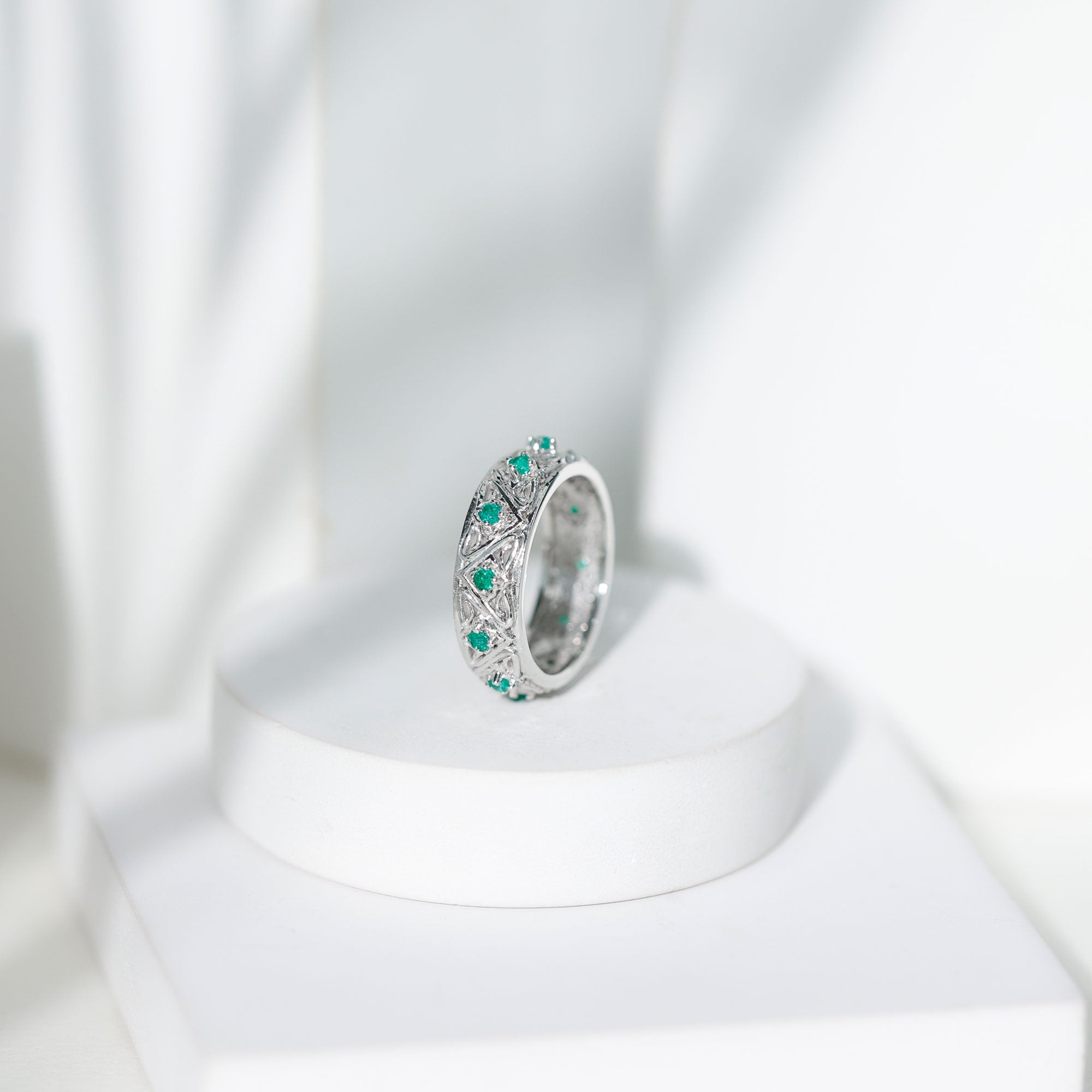 Emerald Eternity Rings: - Our elegant and dazzling emerald eternity rings feature rich emeralds encircling the whole band. These rings symbolize enduring love and passion. The unbroken circle of emerald gemstones signifies an unbreakable connection and commitment. Emerald rings represent harmony and renewal, making them ideal for couples wanting to build lasting connections with each other.