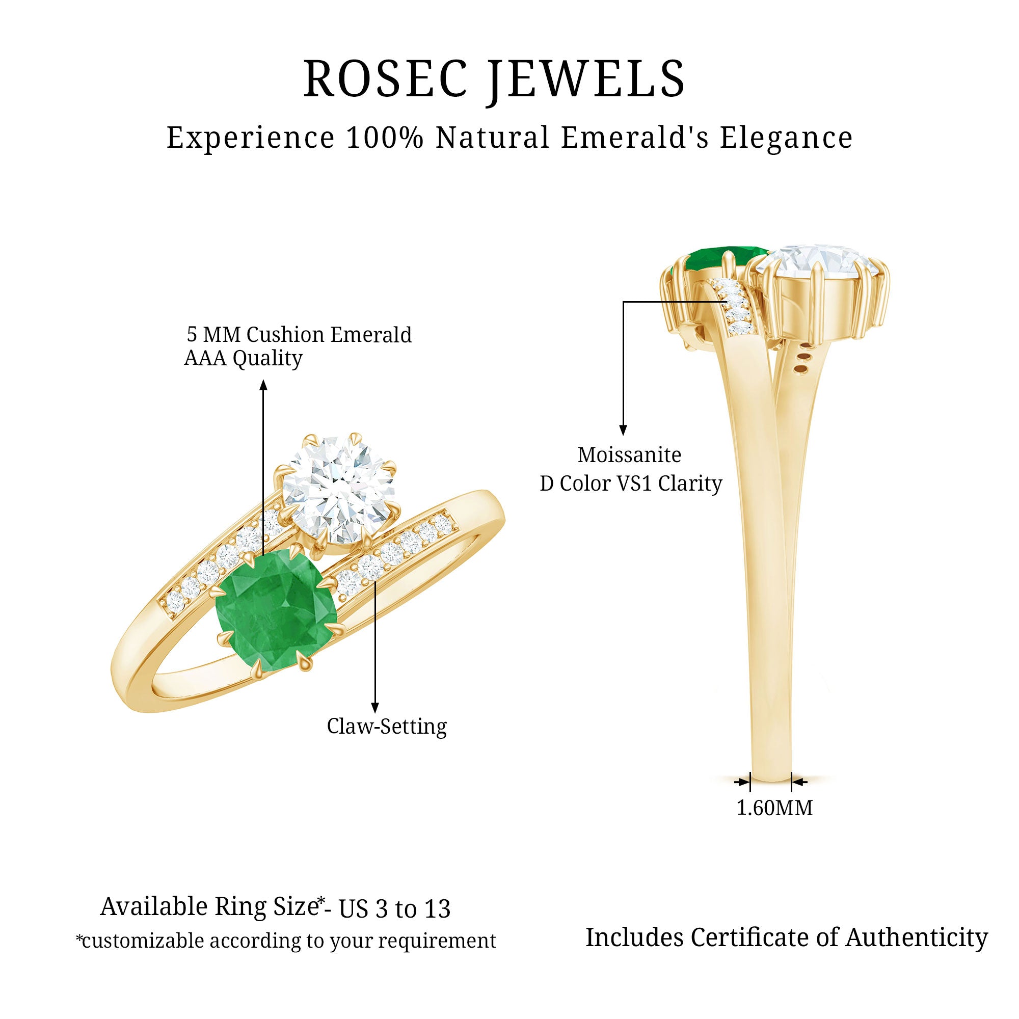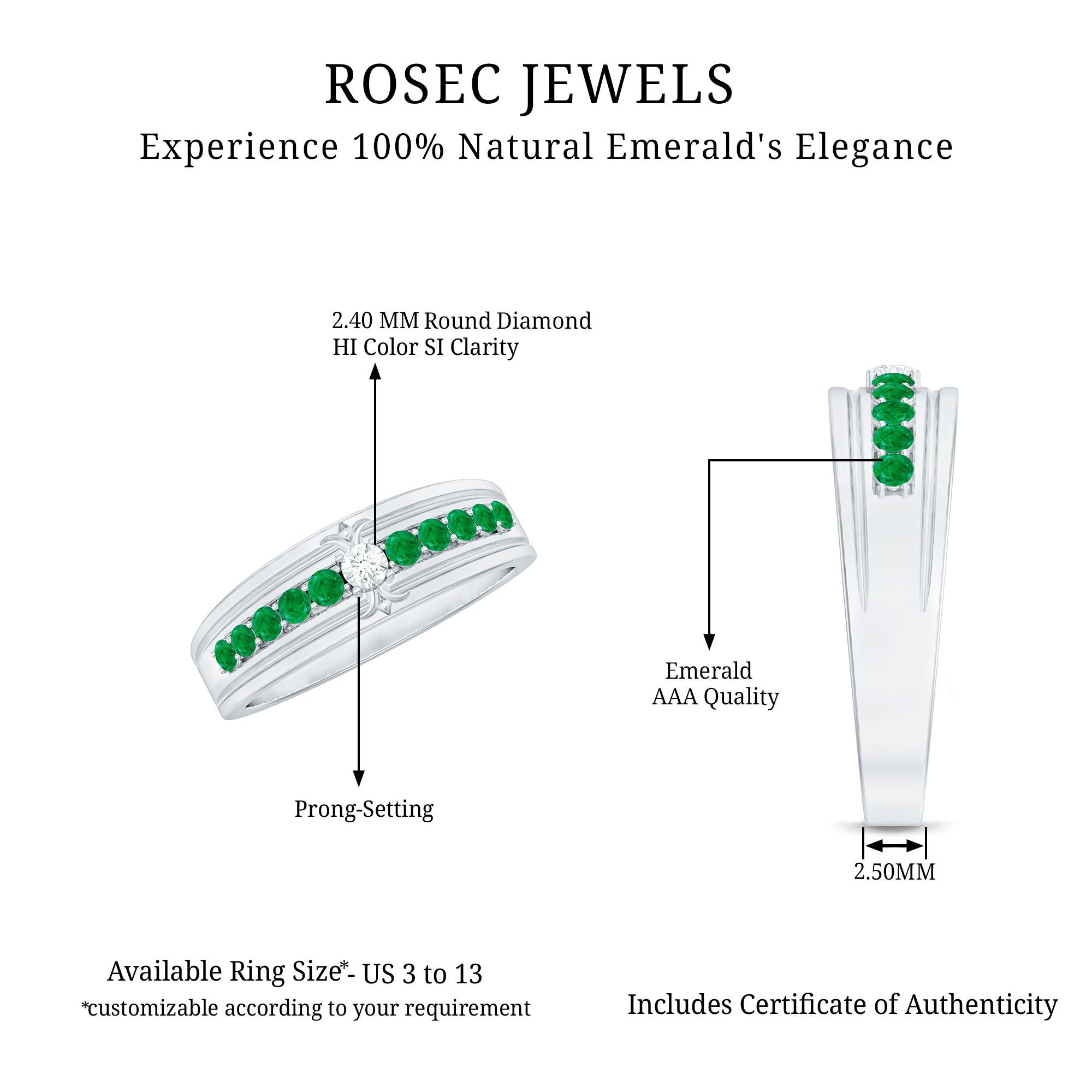 Rosec Jewels uses Genuine Emeralds in Rings