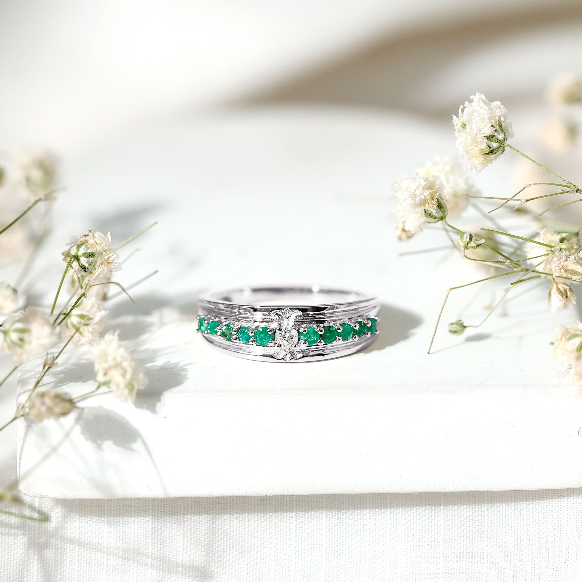 Emerald Men Wedding Bands | Emerald Women Wedding Bands | Emerald Earrings | Emerald Necklace | May Birthstone Jewelry | Emerald Engagement Rings