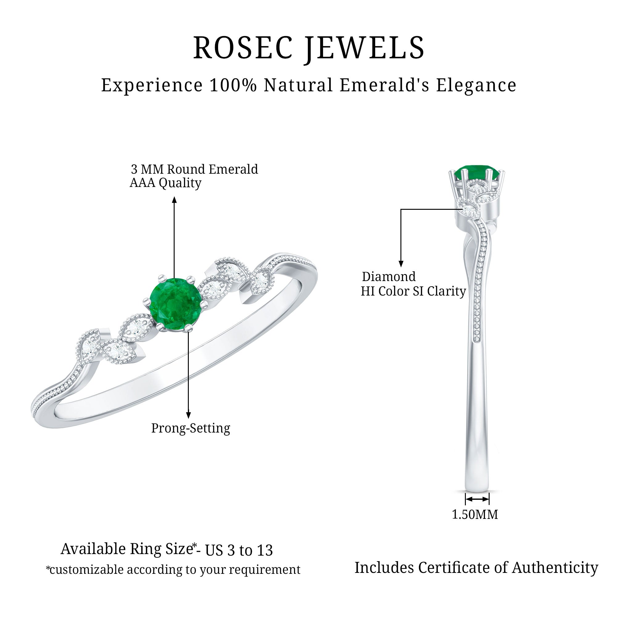 Rosec Jewels uses Genuine Emeralds in Rings