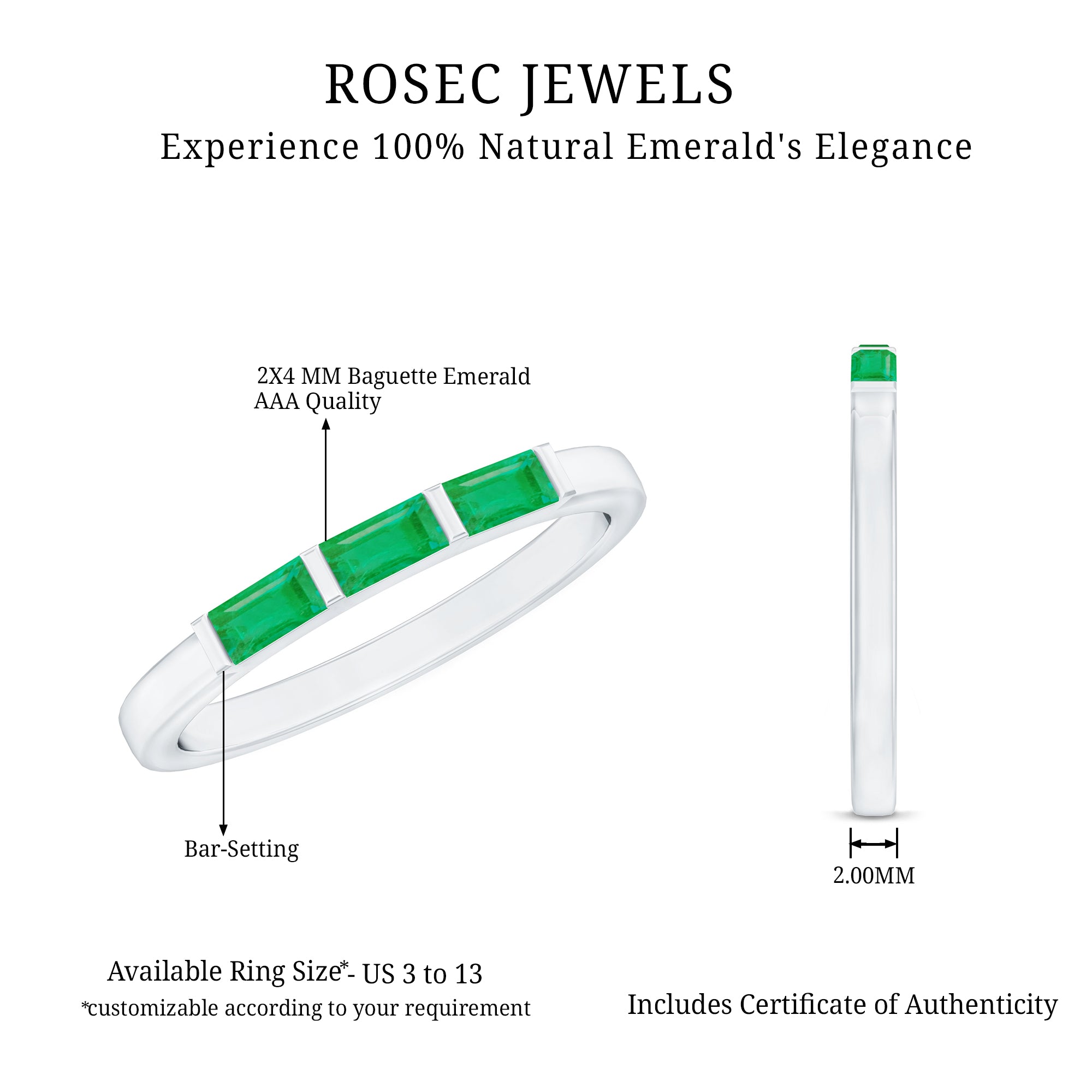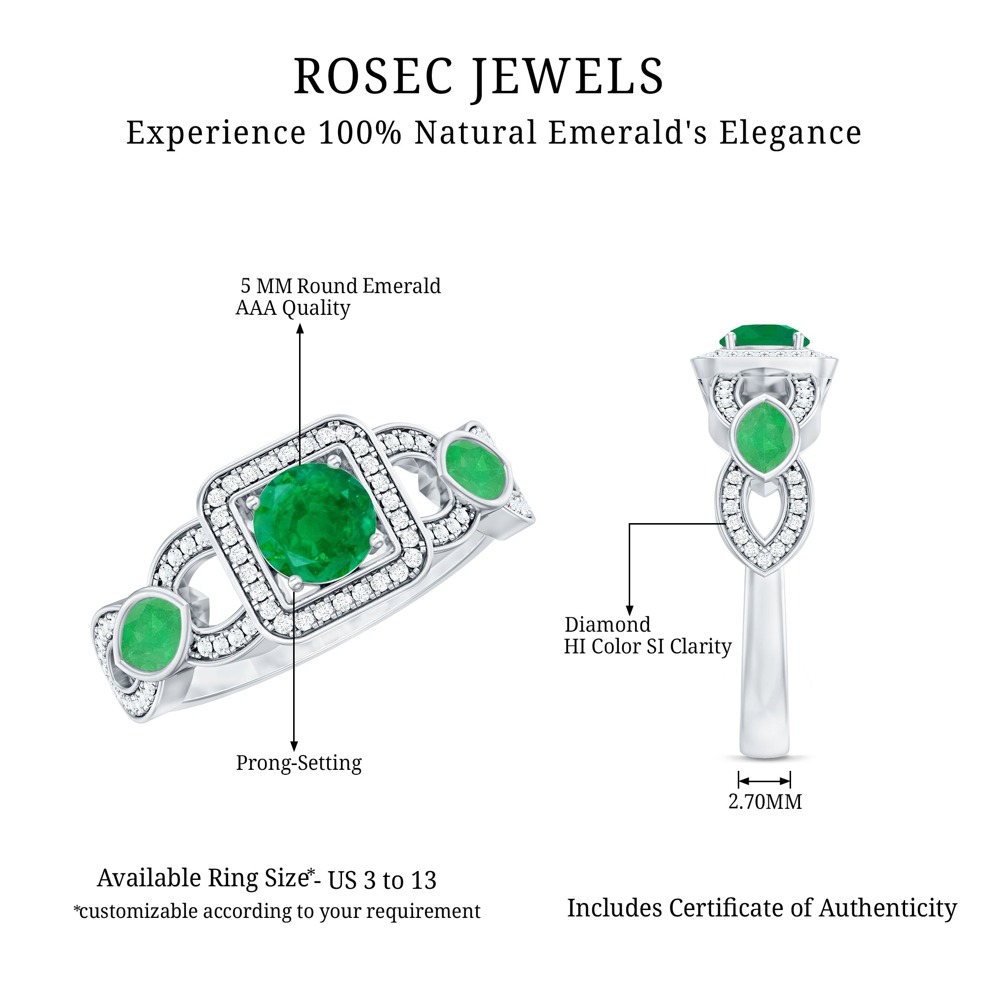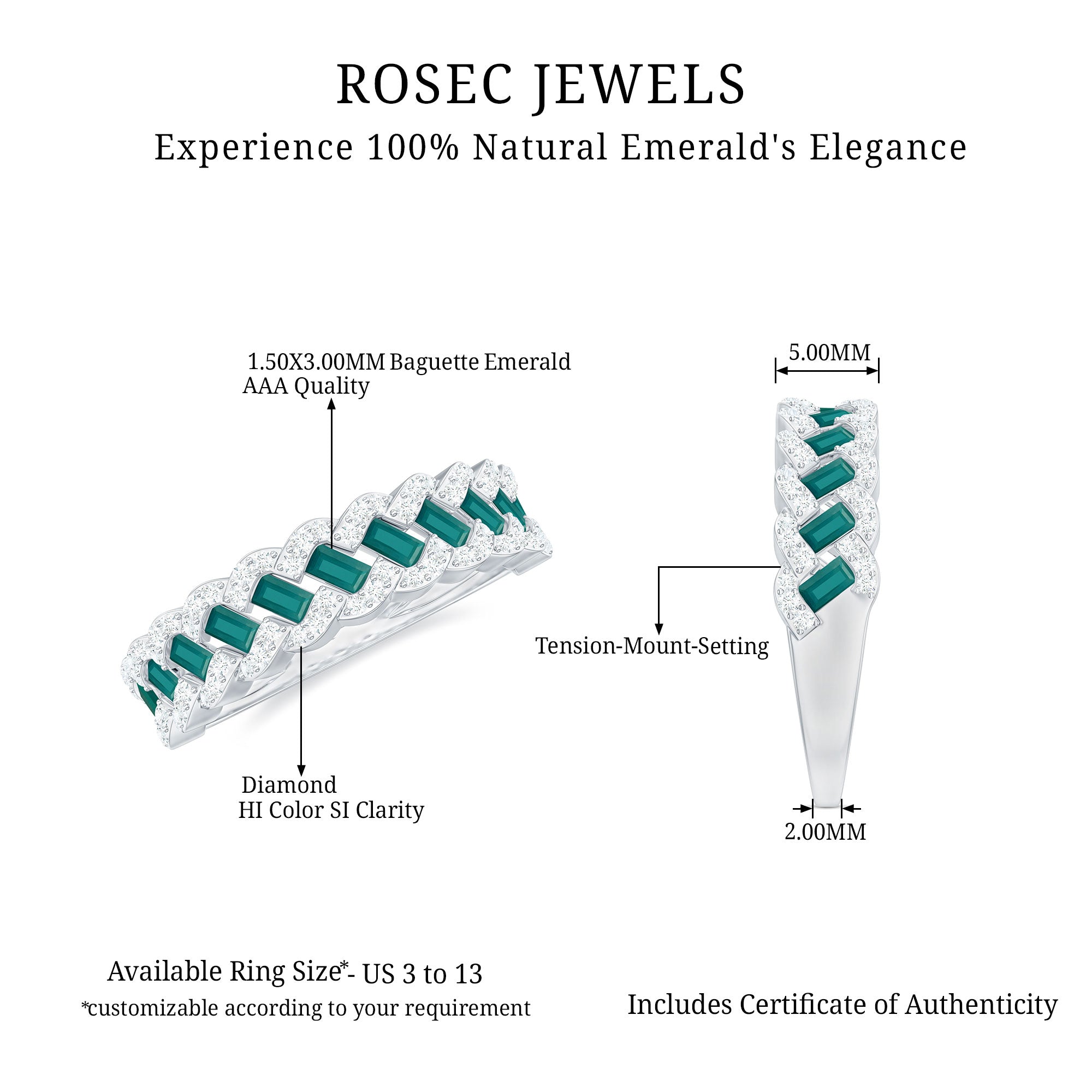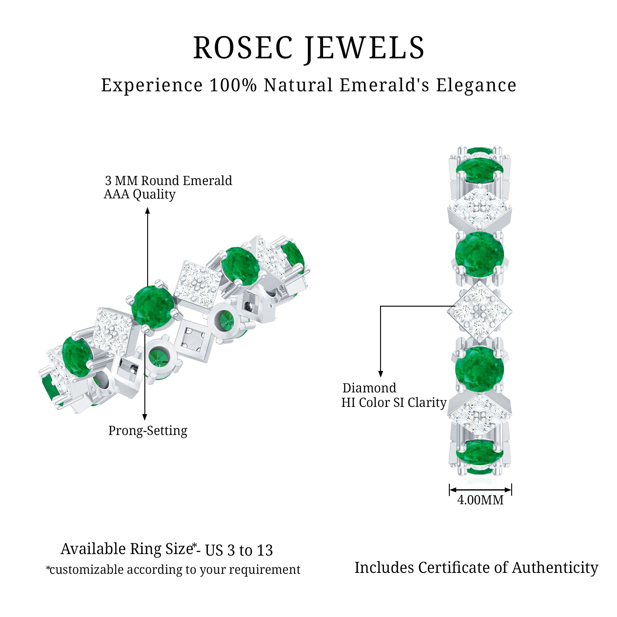 Rosec Jewels uses Genuine Emeralds in Rings