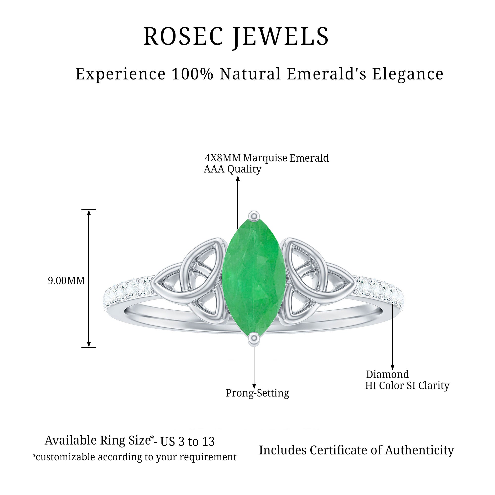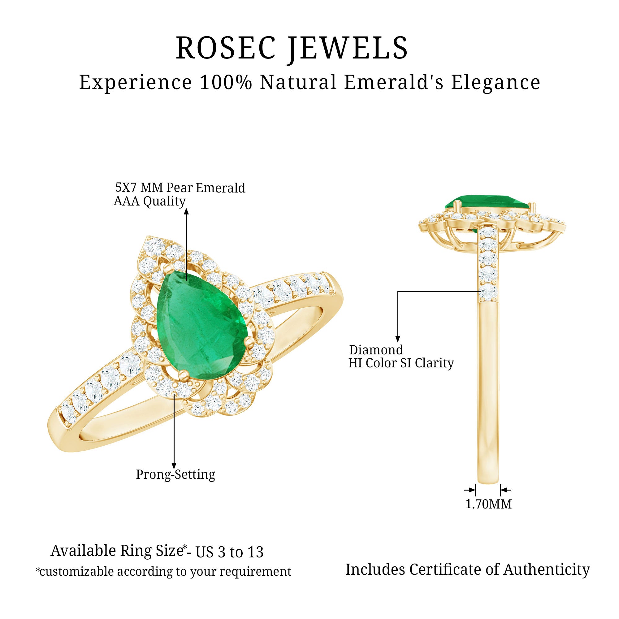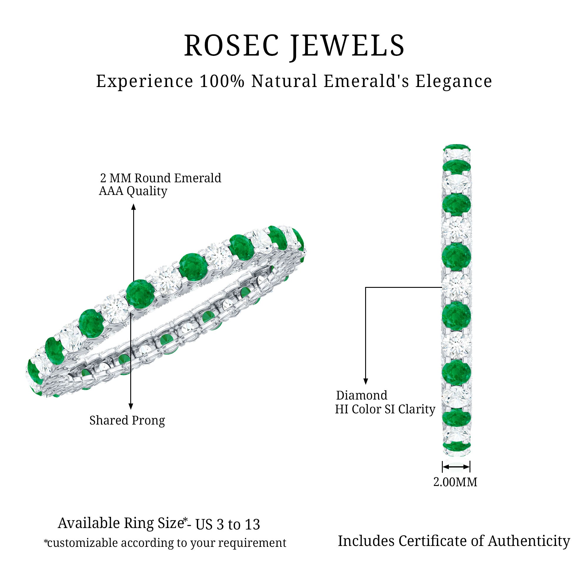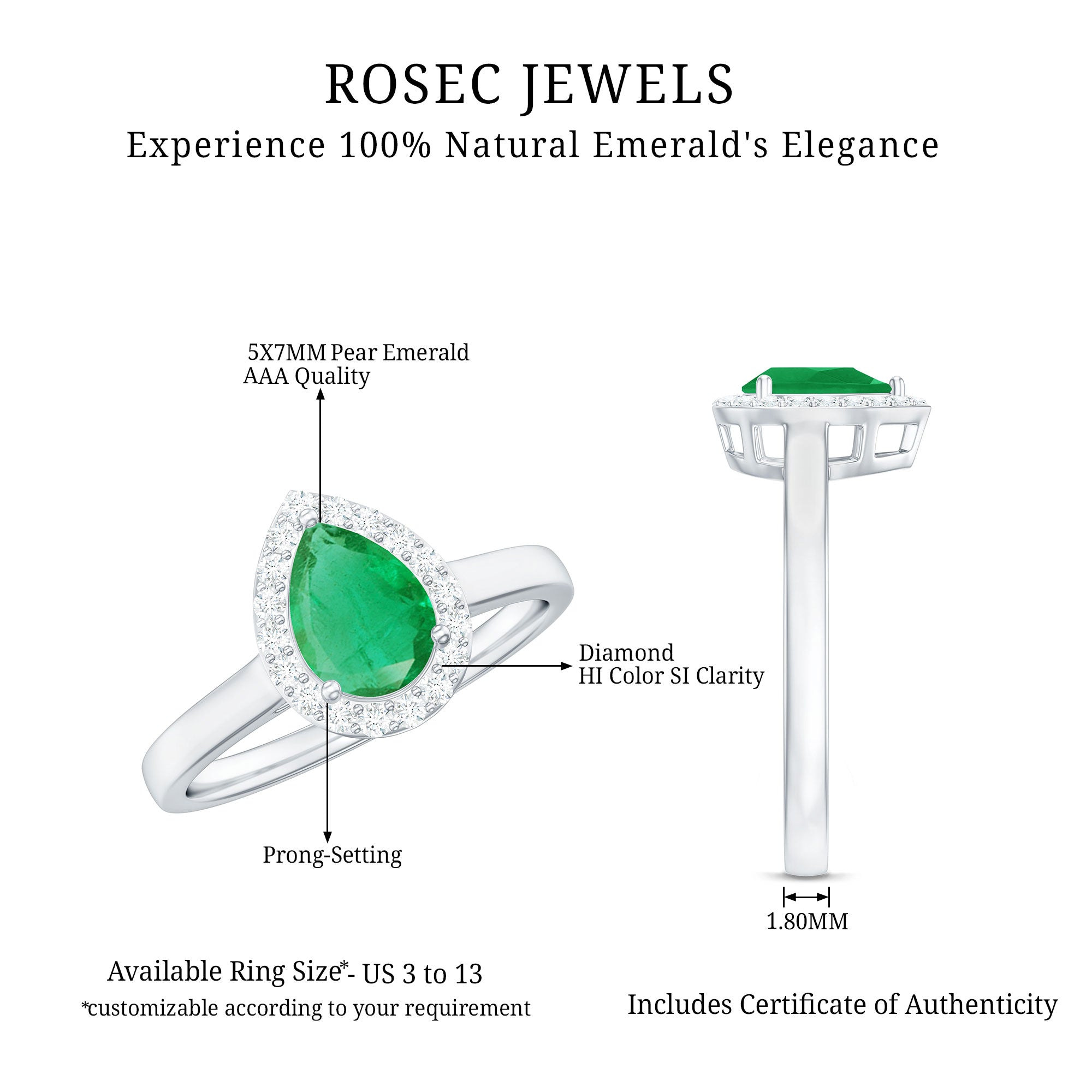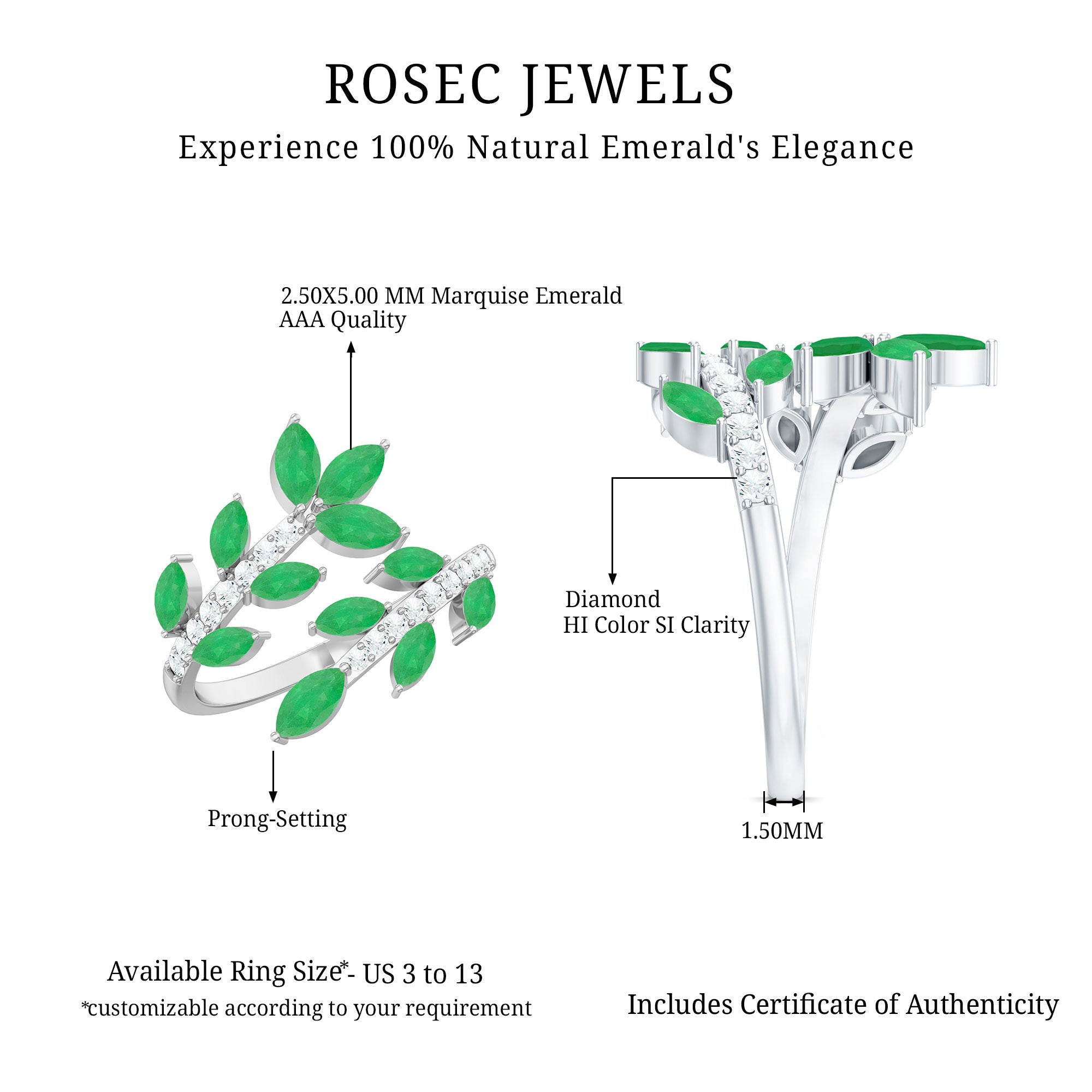 Rosec Jewels uses Genuine Emeralds in Rings