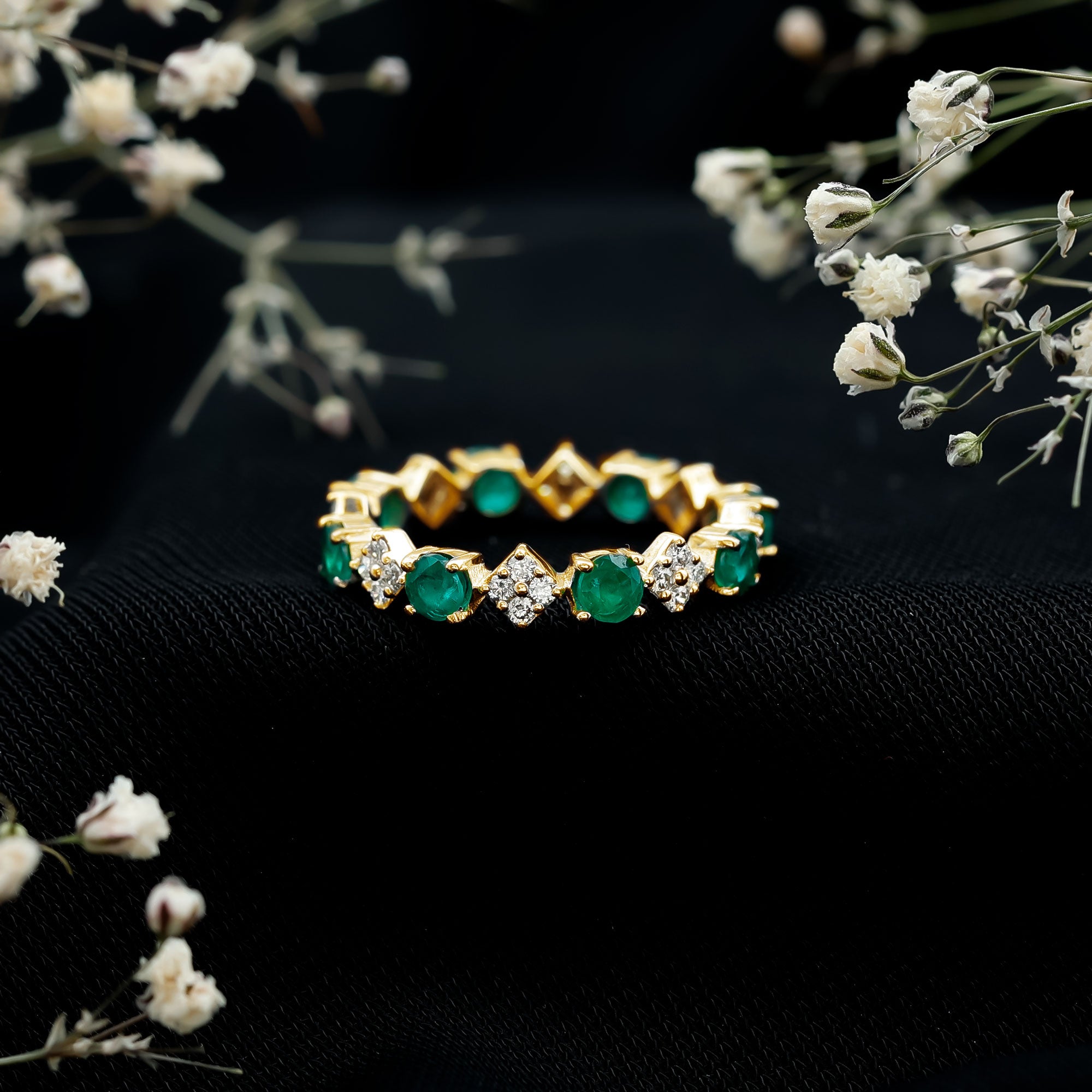 Emerald Eternity Rings: - Our elegant and dazzling emerald eternity rings feature rich emeralds encircling the whole band. These rings symbolize enduring love and passion. The unbroken circle of emerald gemstones signifies an unbreakable connection and commitment. Emerald rings represent harmony and renewal, making them ideal for couples wanting to build lasting connections with each other.