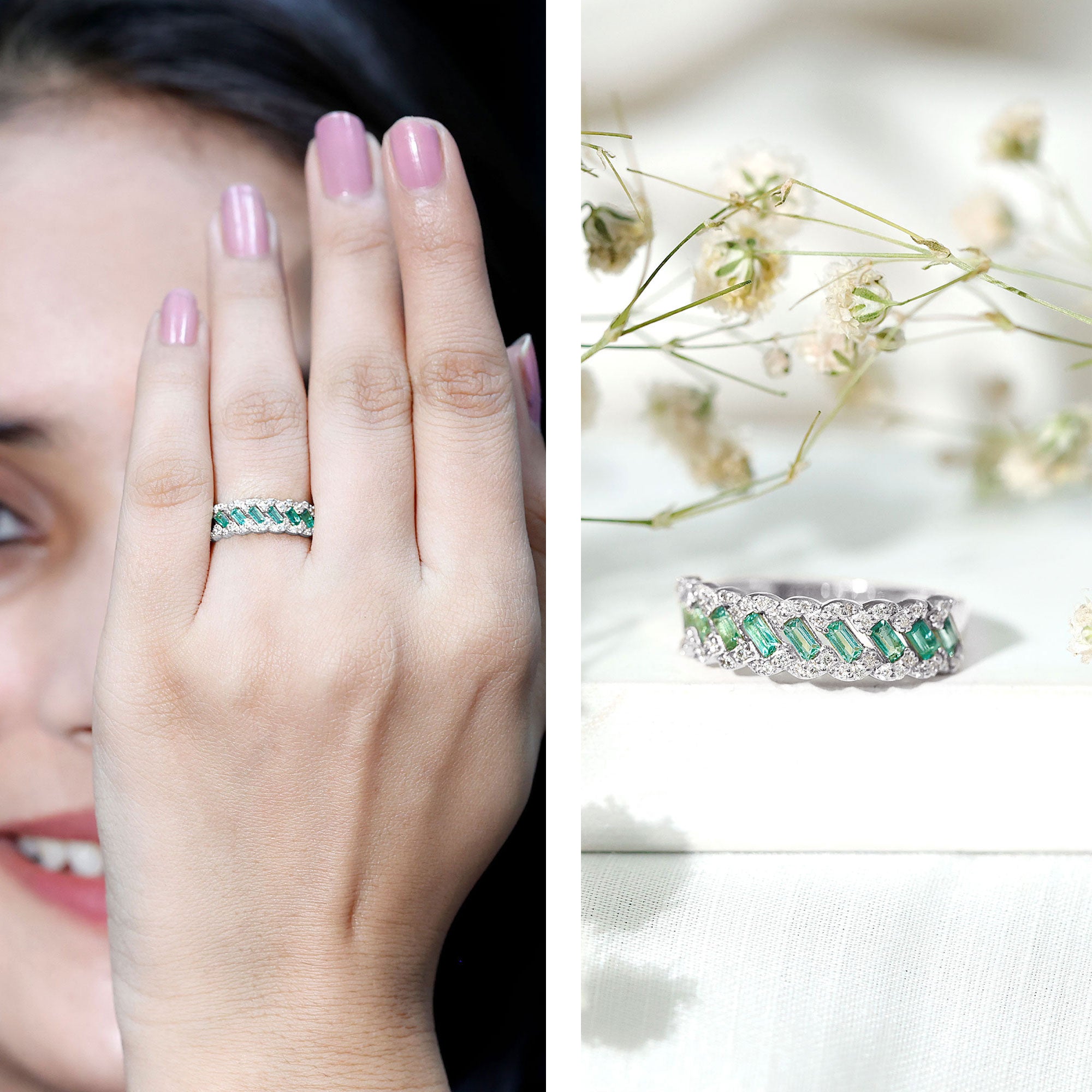 Emerald Men Wedding Bands | Emerald Women Wedding Bands | Emerald Earrings | Emerald Necklace | May Birthstone Jewelry | Emerald Engagement Rings