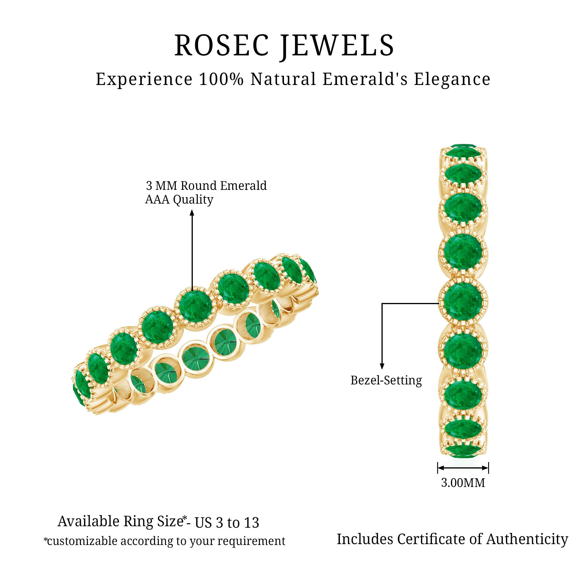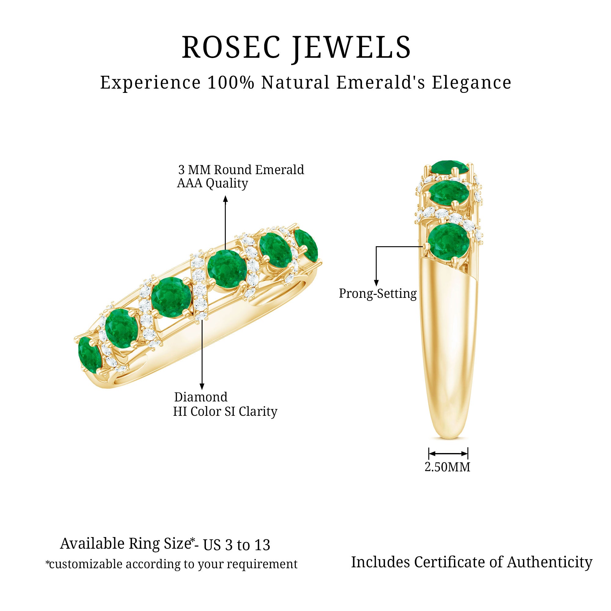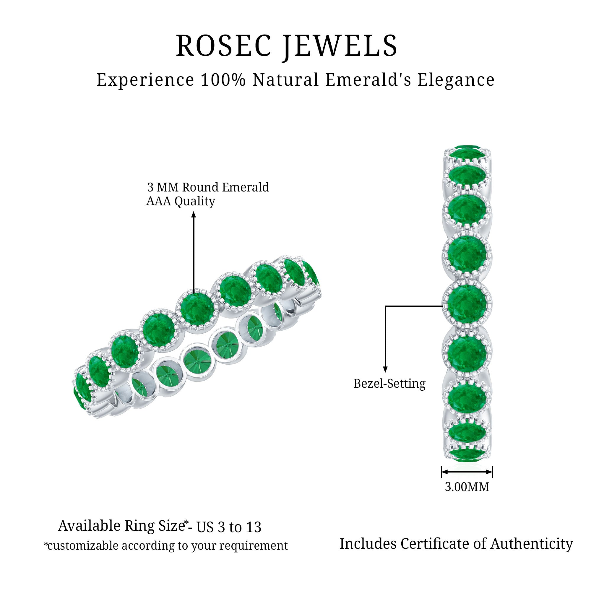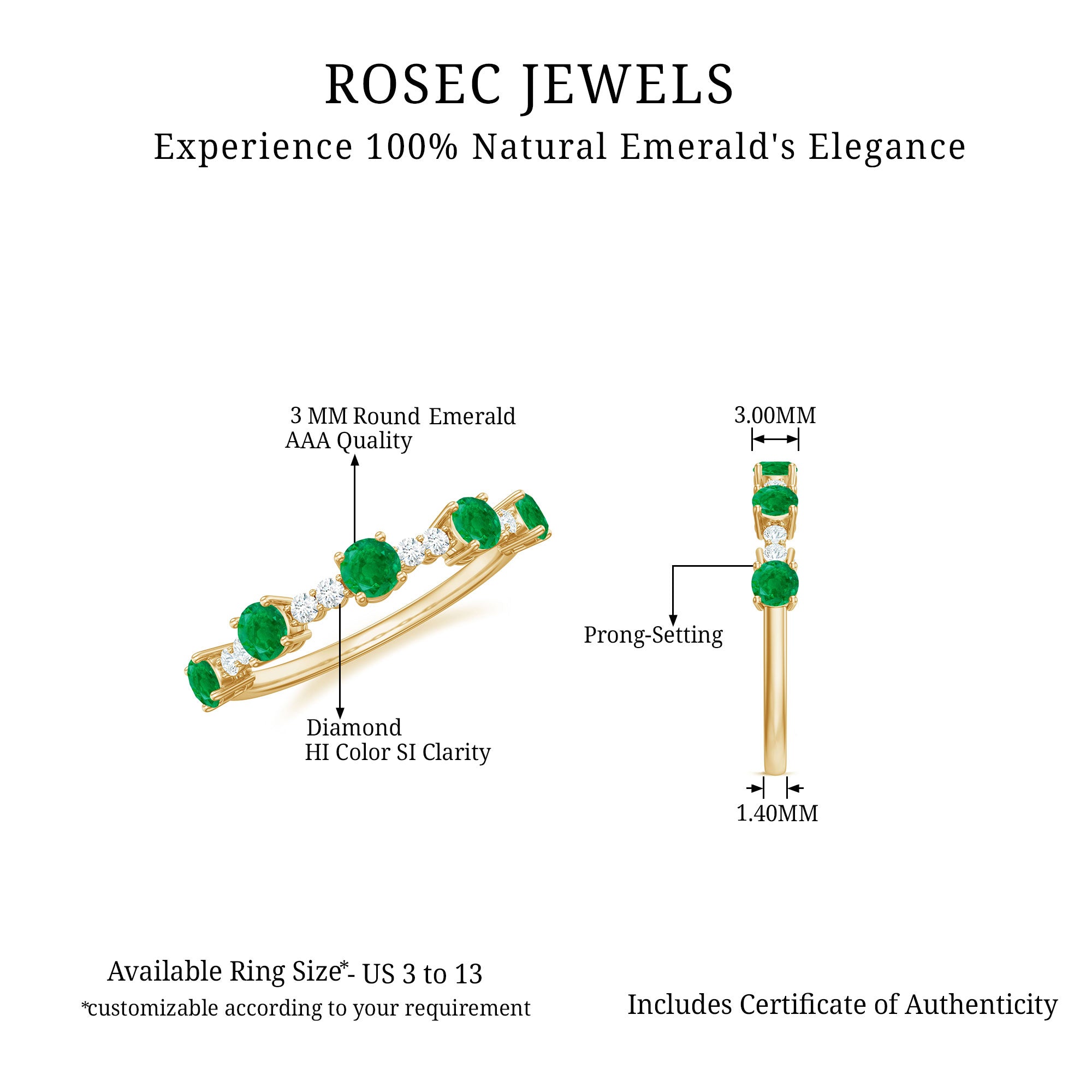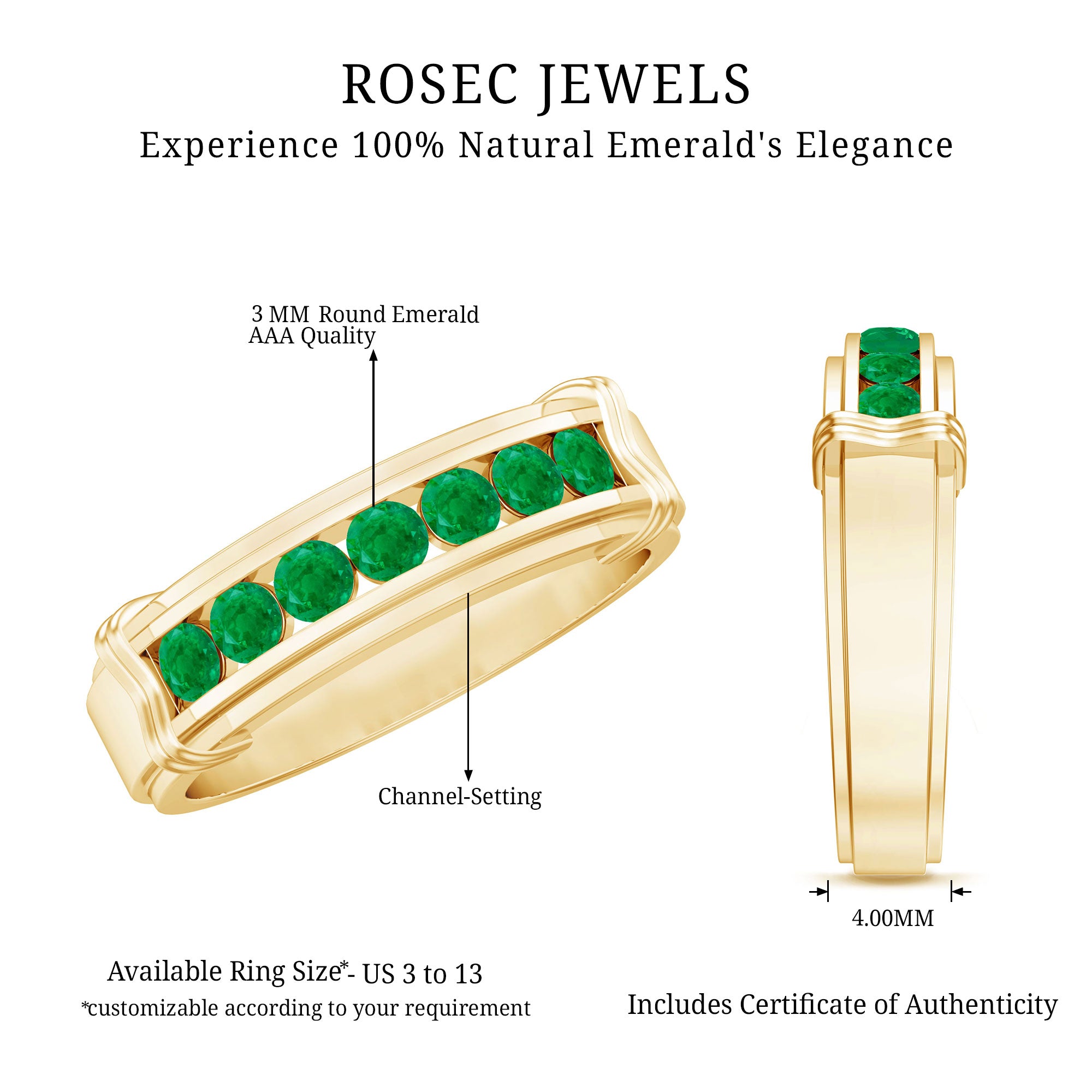 Half-eternity bands offer comfort for daily wear, while full-eternity styles deliver maximum emerald coverage and visual impact.