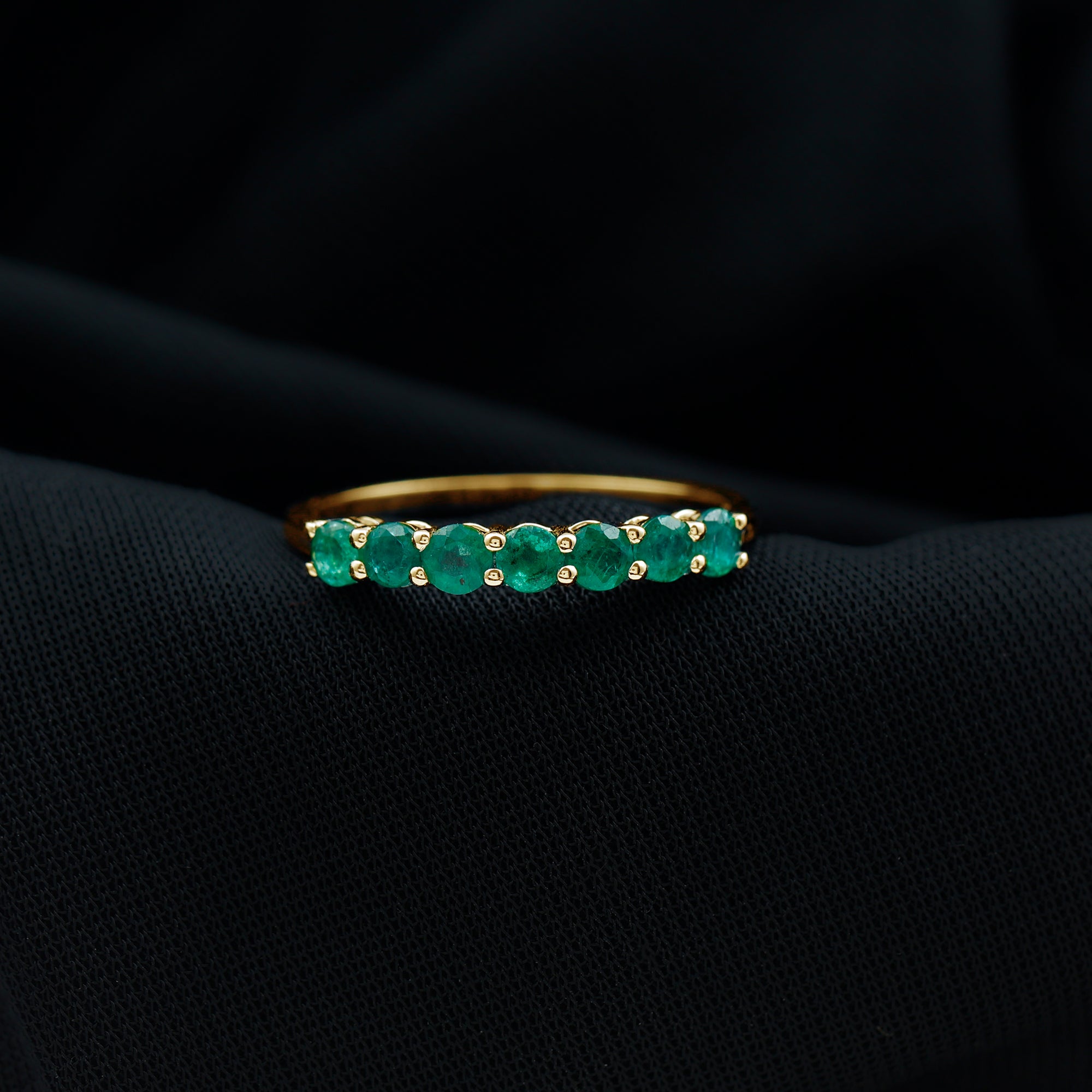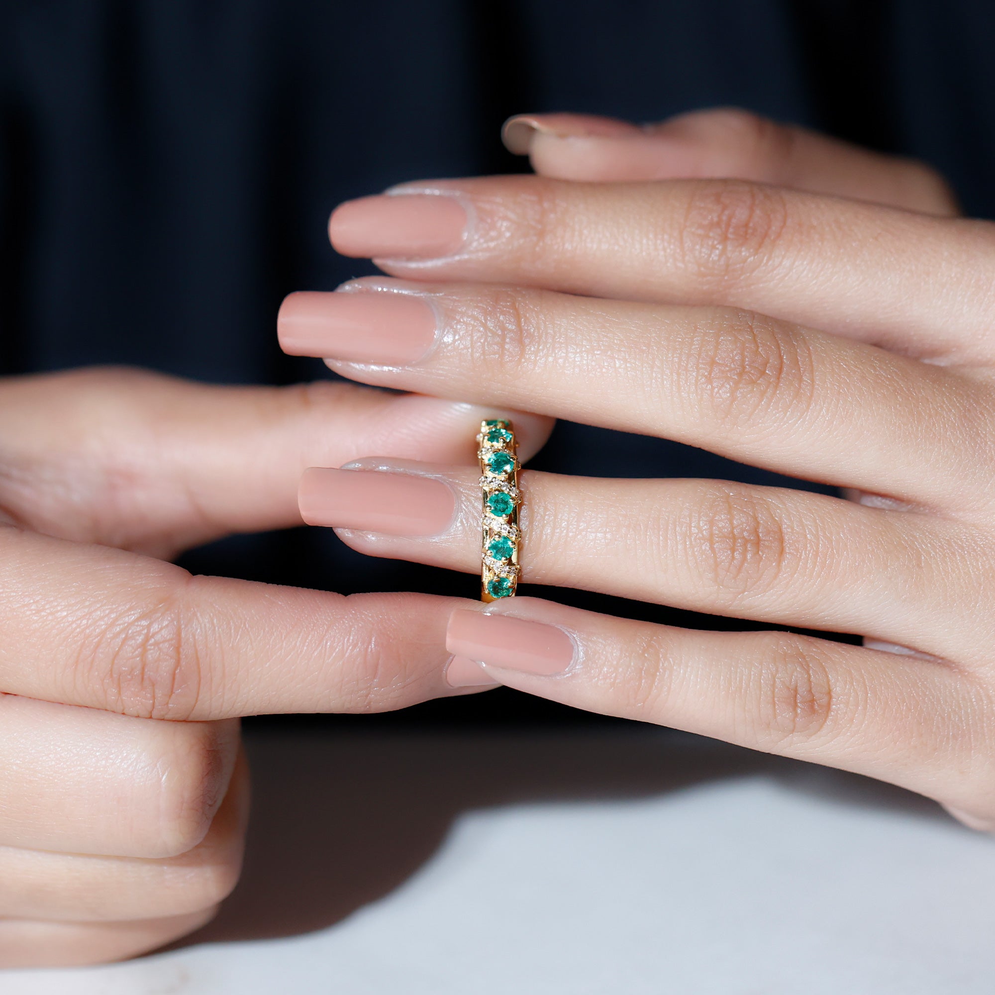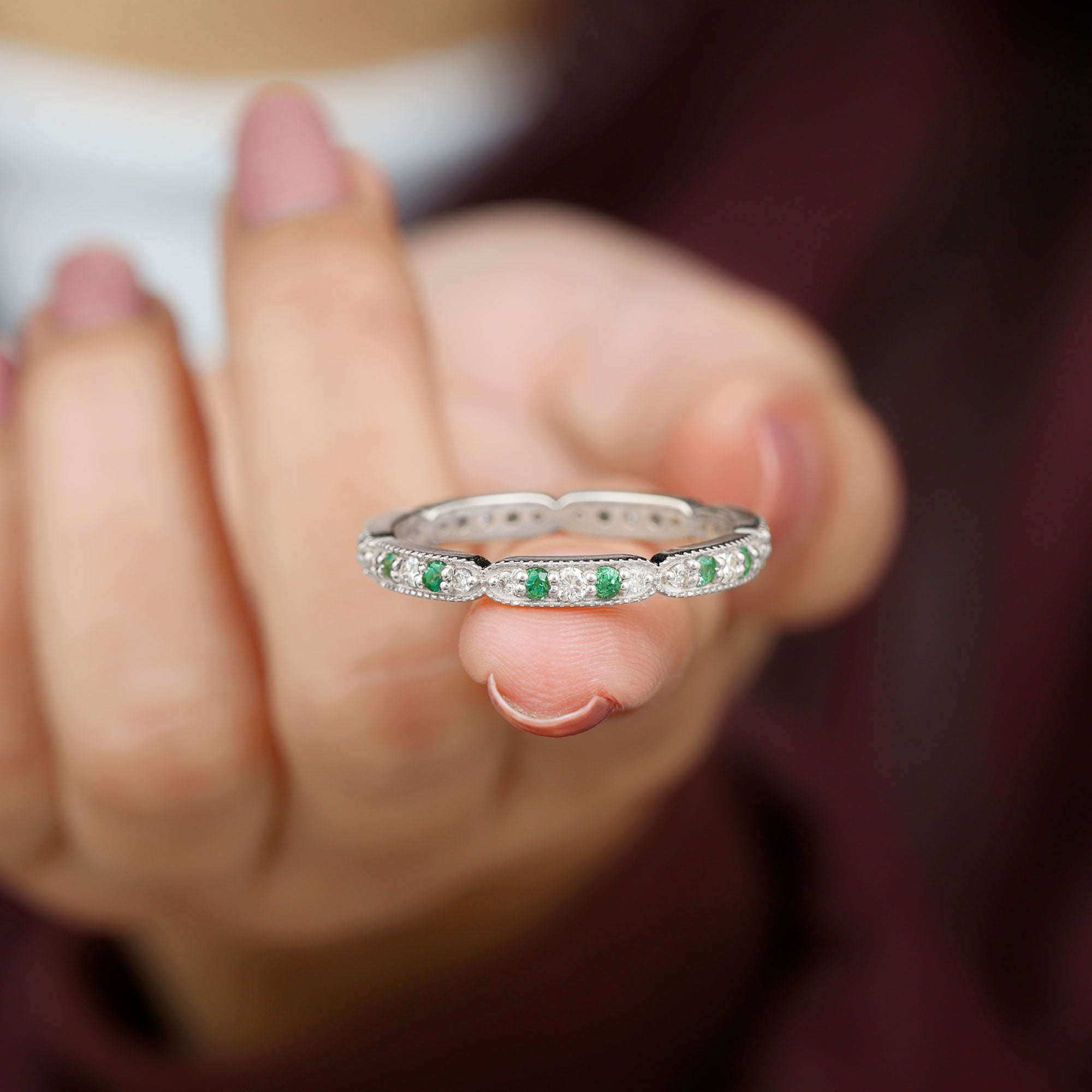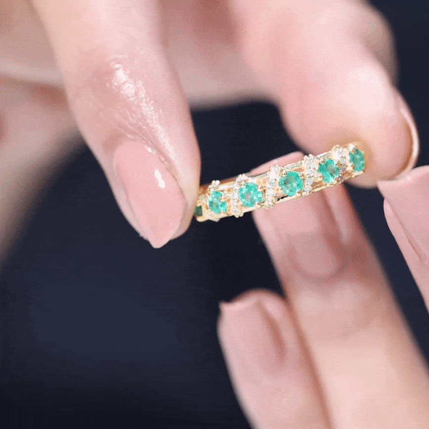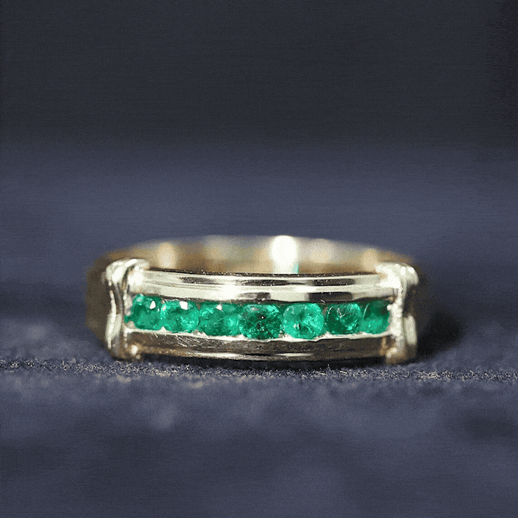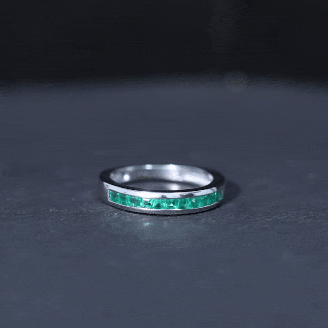 Half-eternity bands feature emeralds across the top portion of the ring, while full-eternity bands circle the entire band with gemstones.