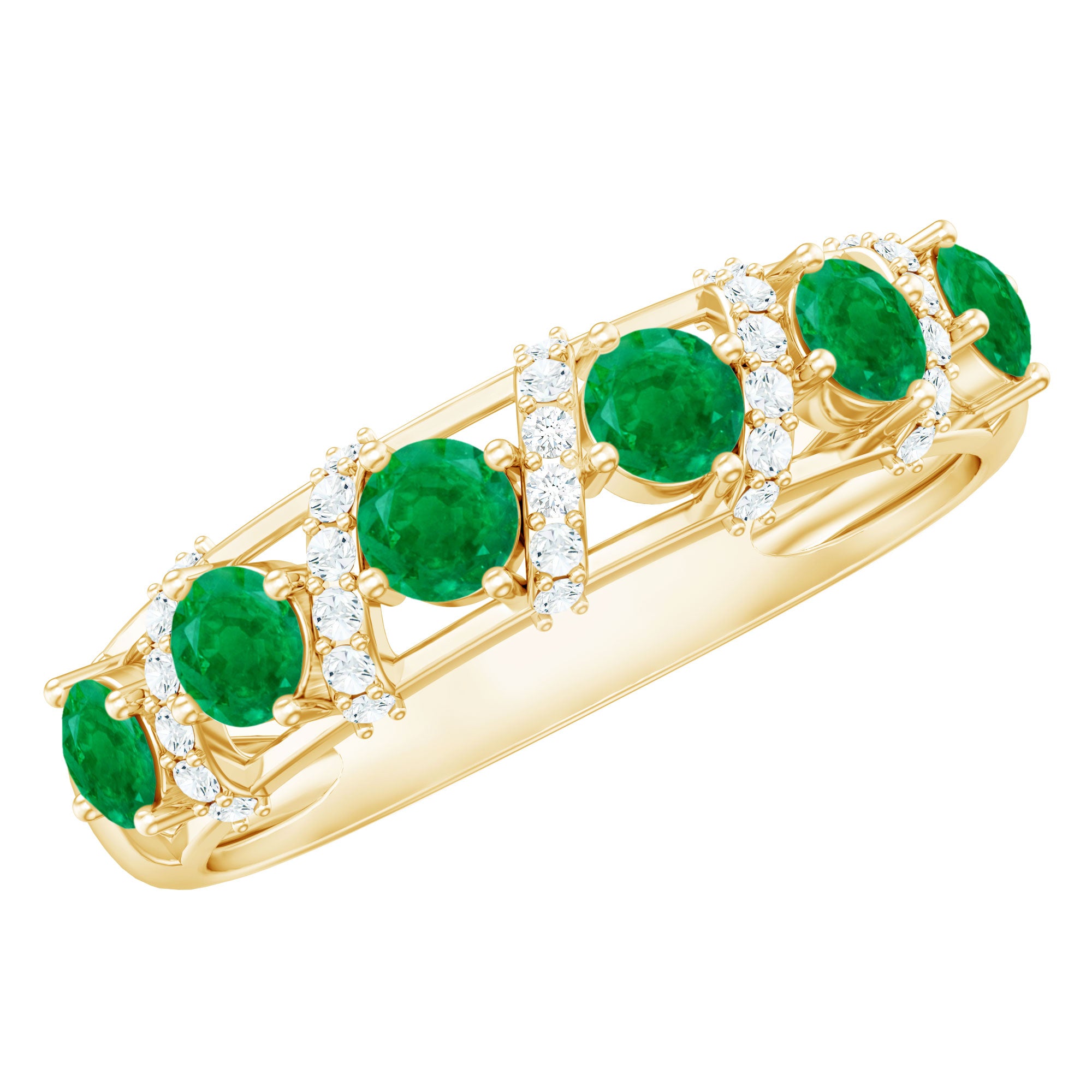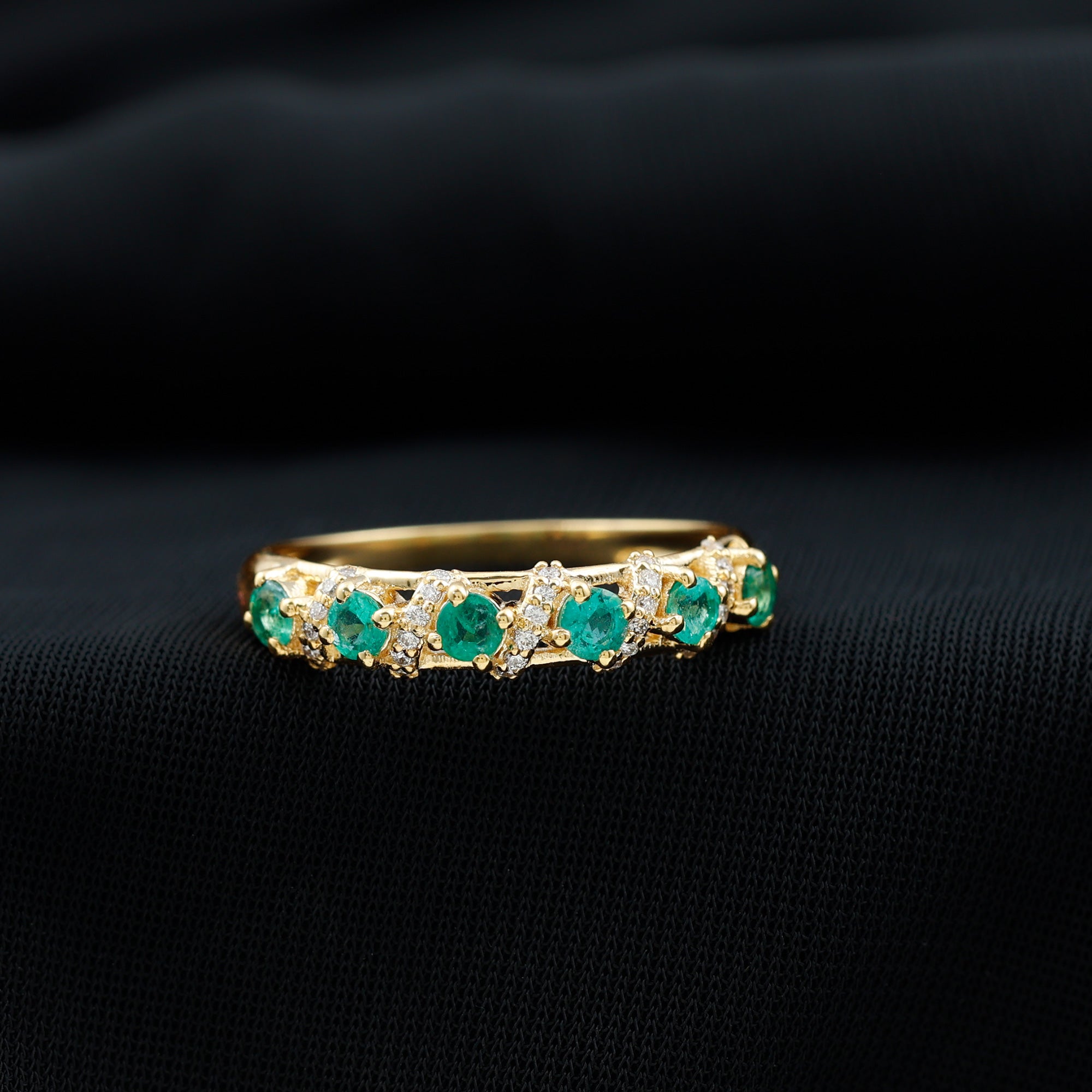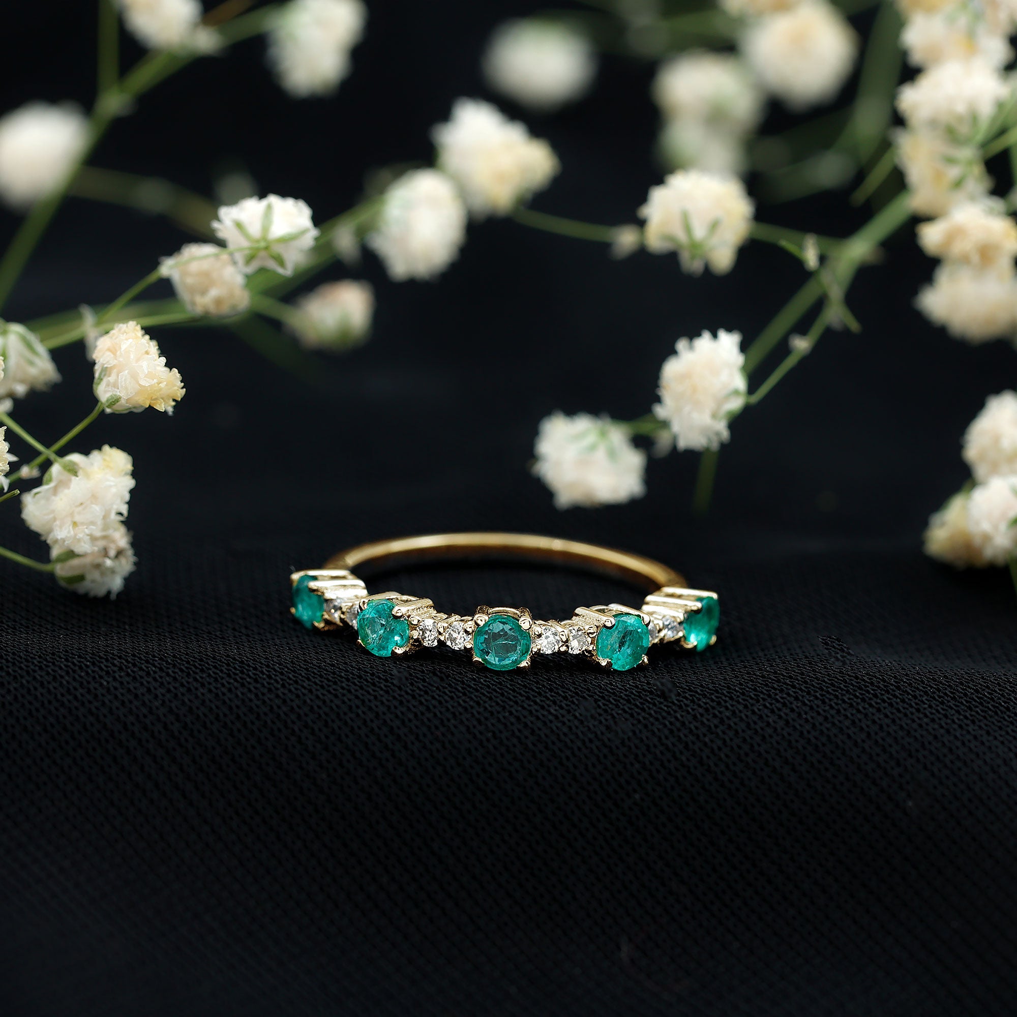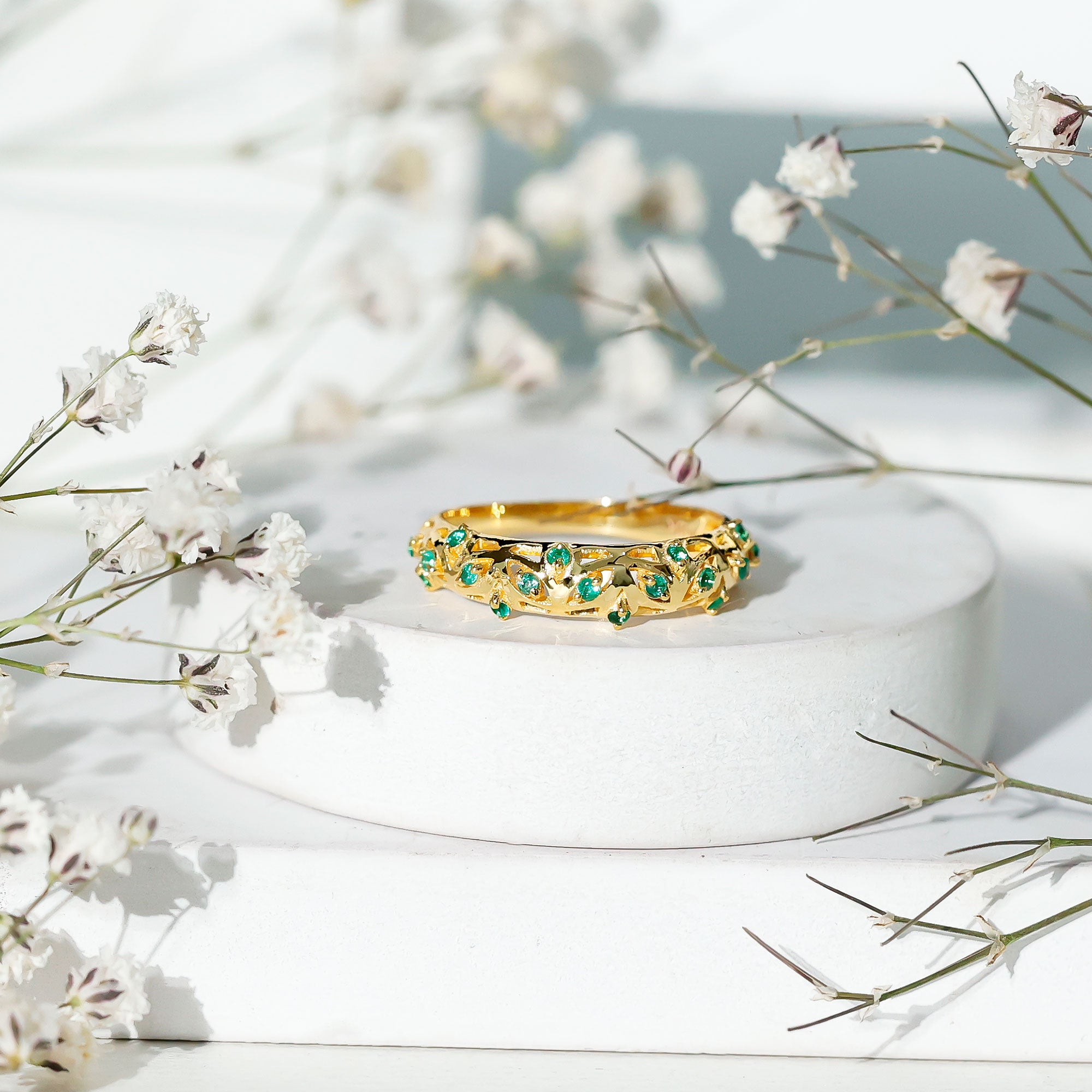 Half-eternity bands feature emeralds across the top portion of the ring, while full-eternity bands circle the entire band with gemstones.