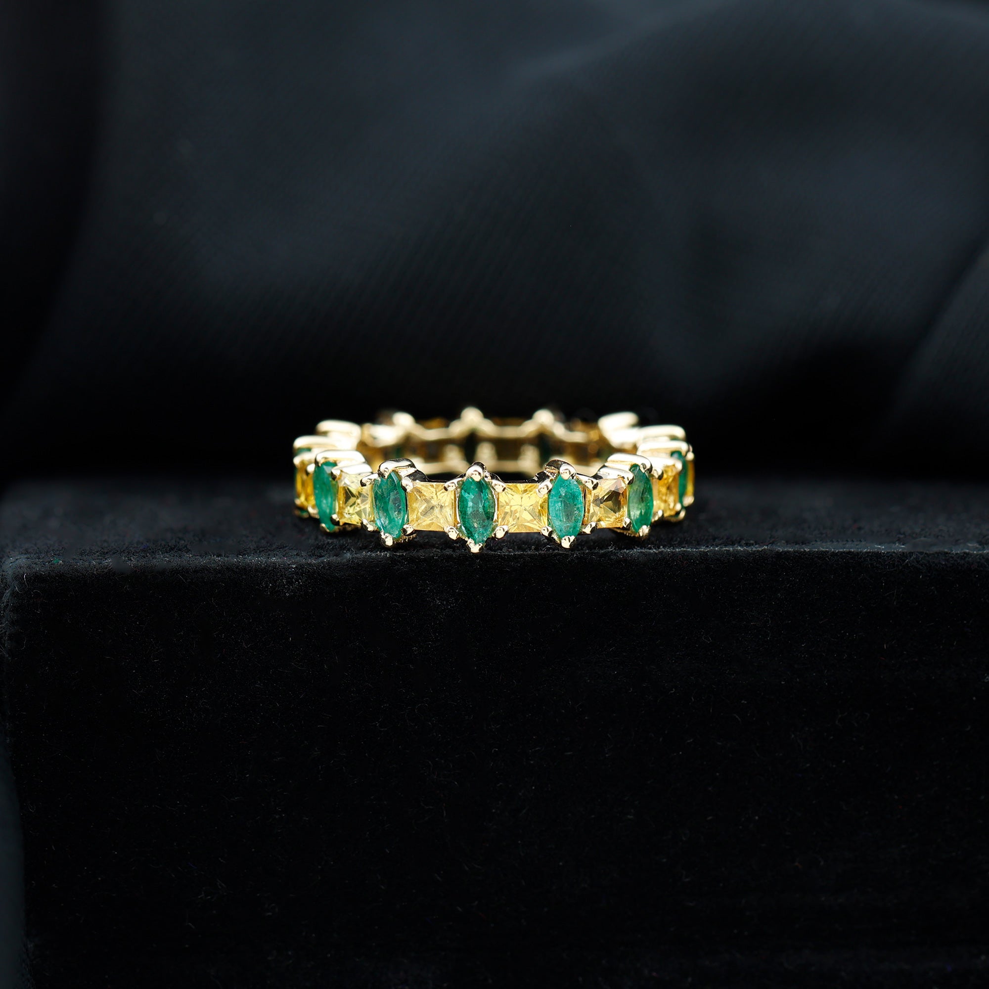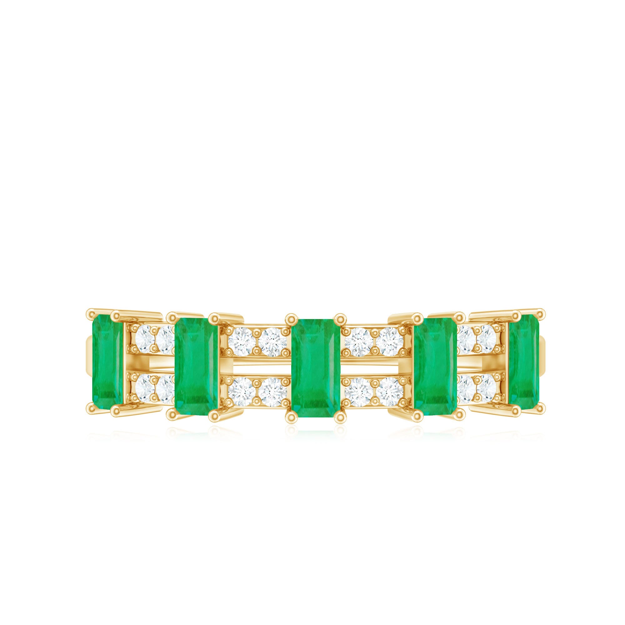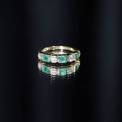 Half-eternity bands feature emeralds across the top portion of the ring, while full-eternity bands circle the entire band with gemstones.