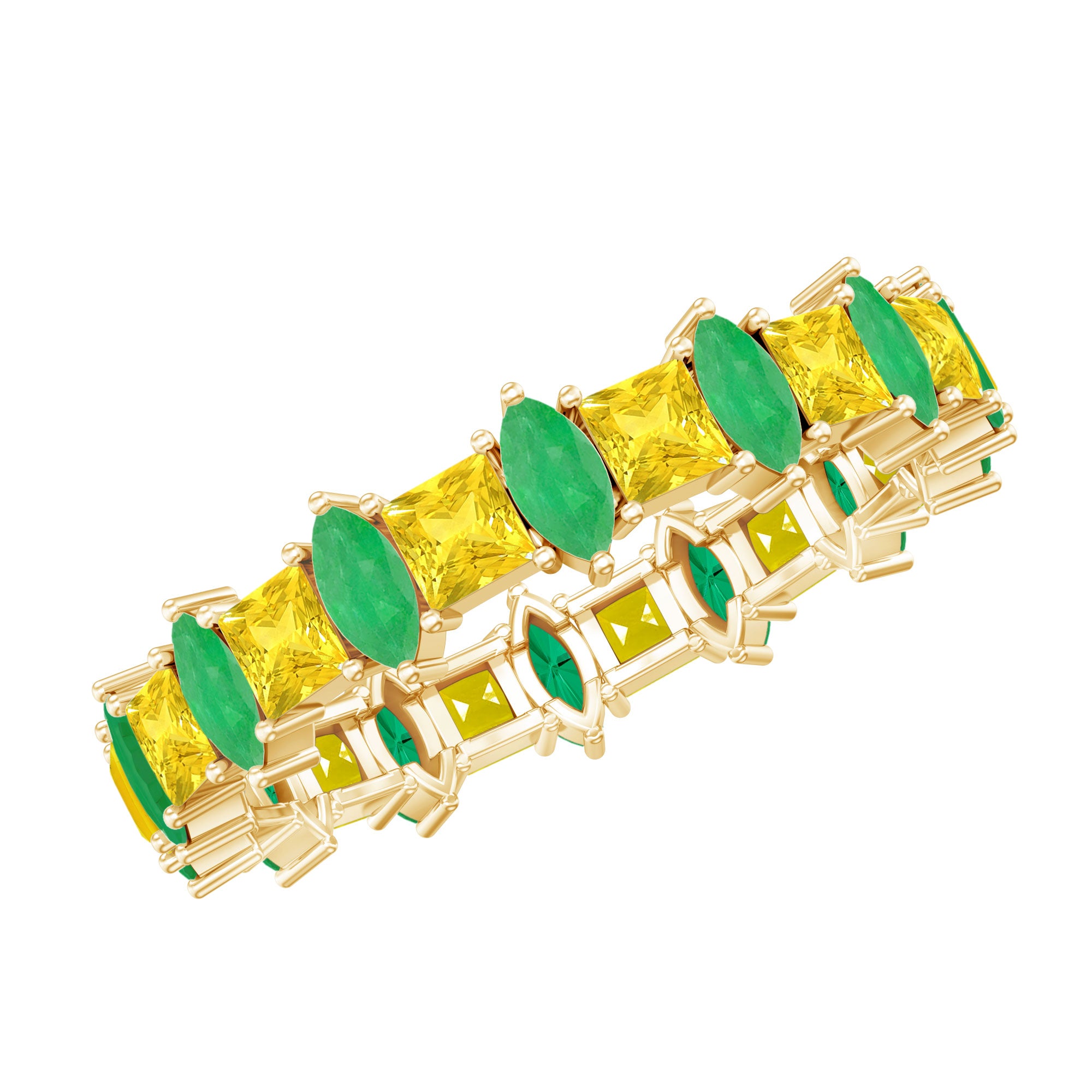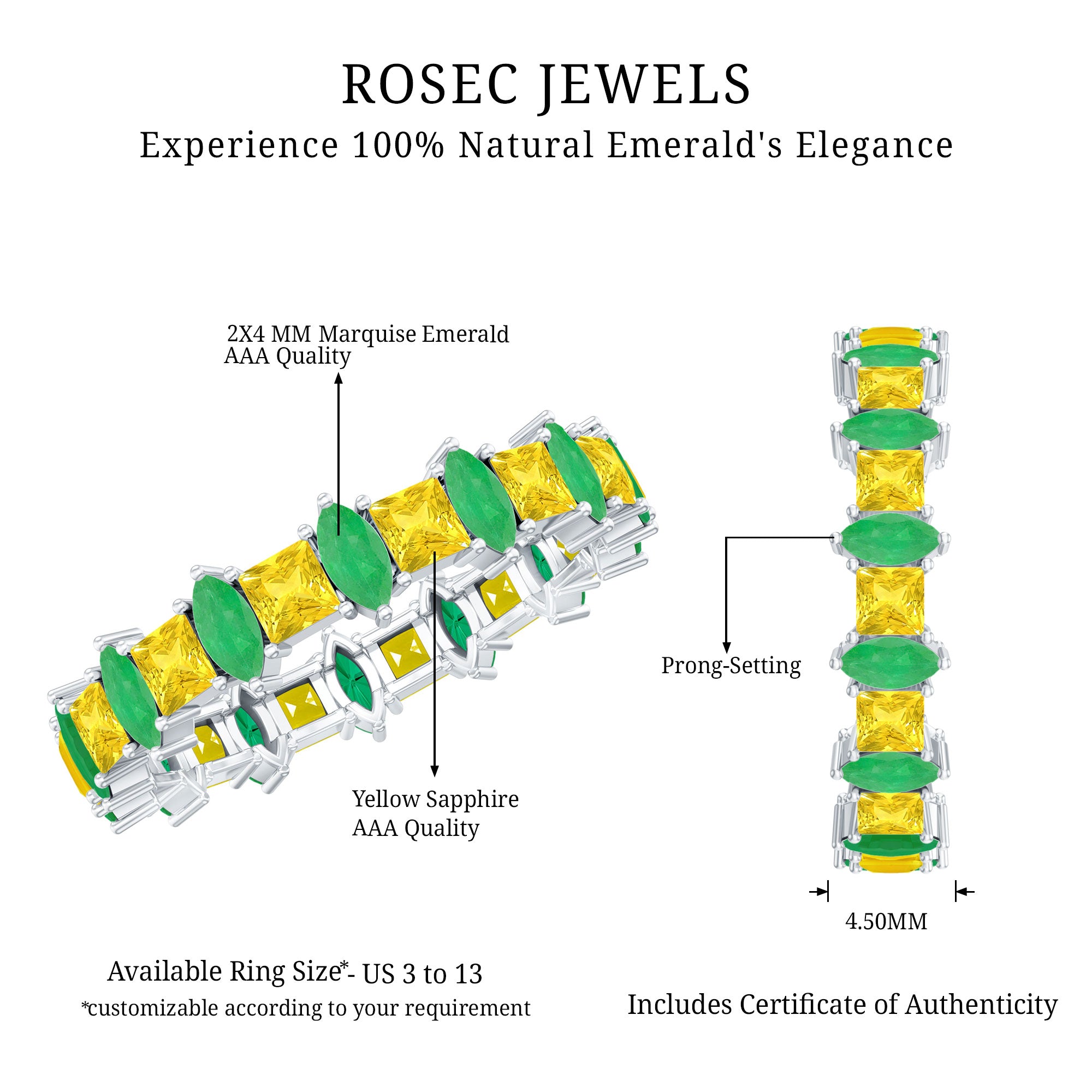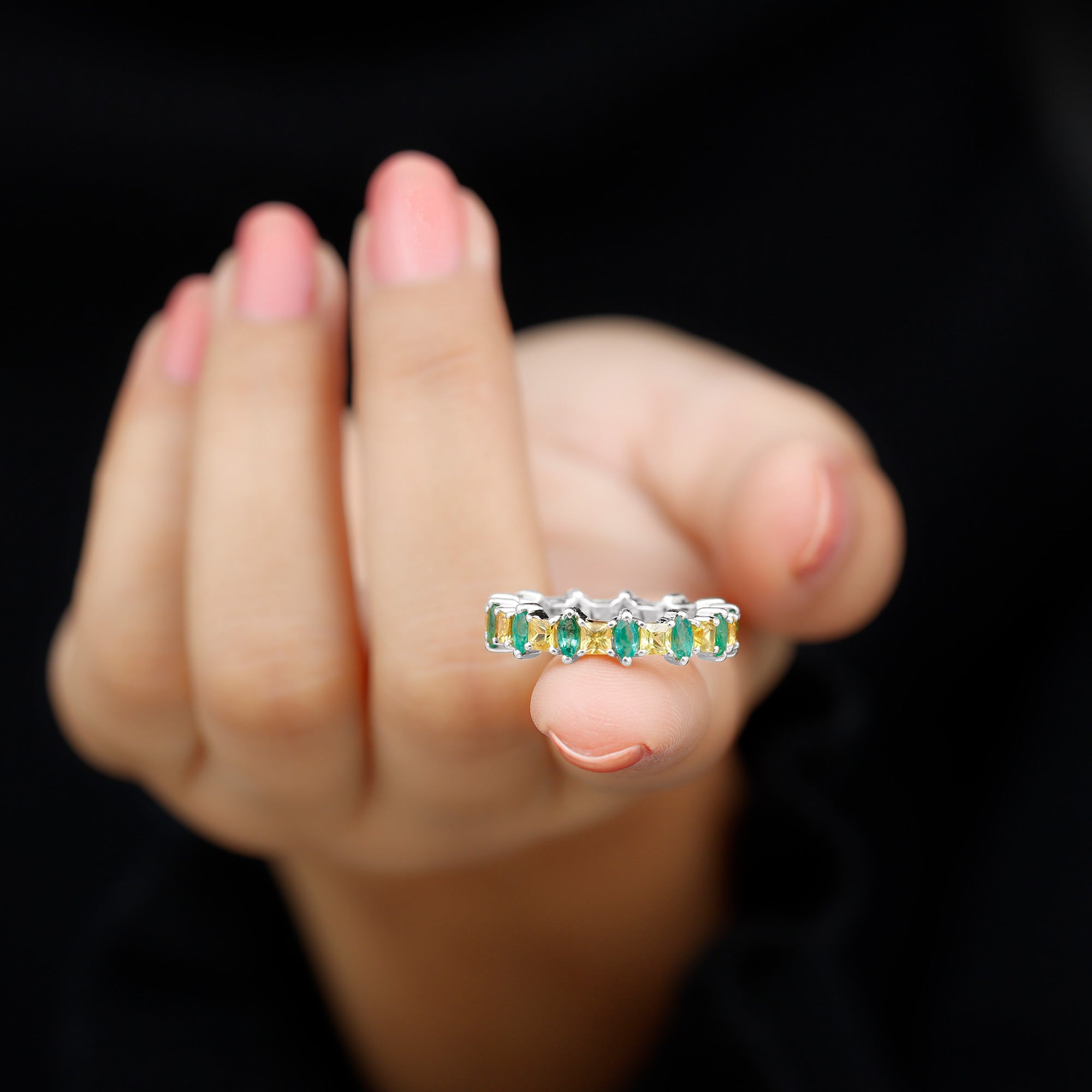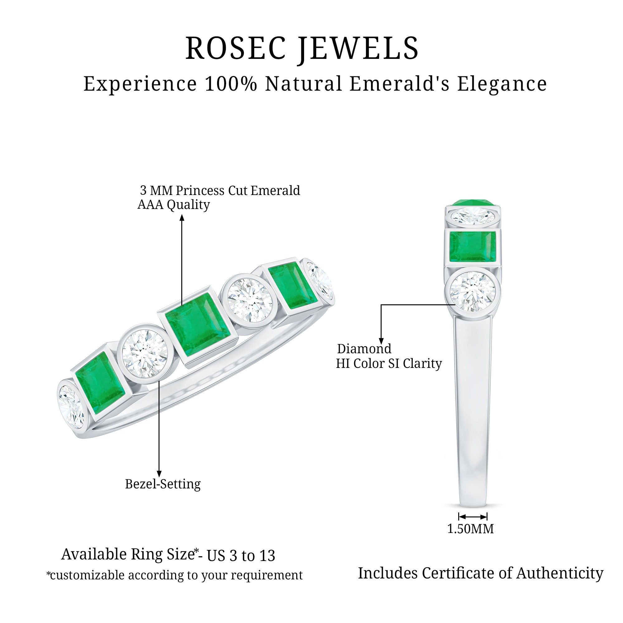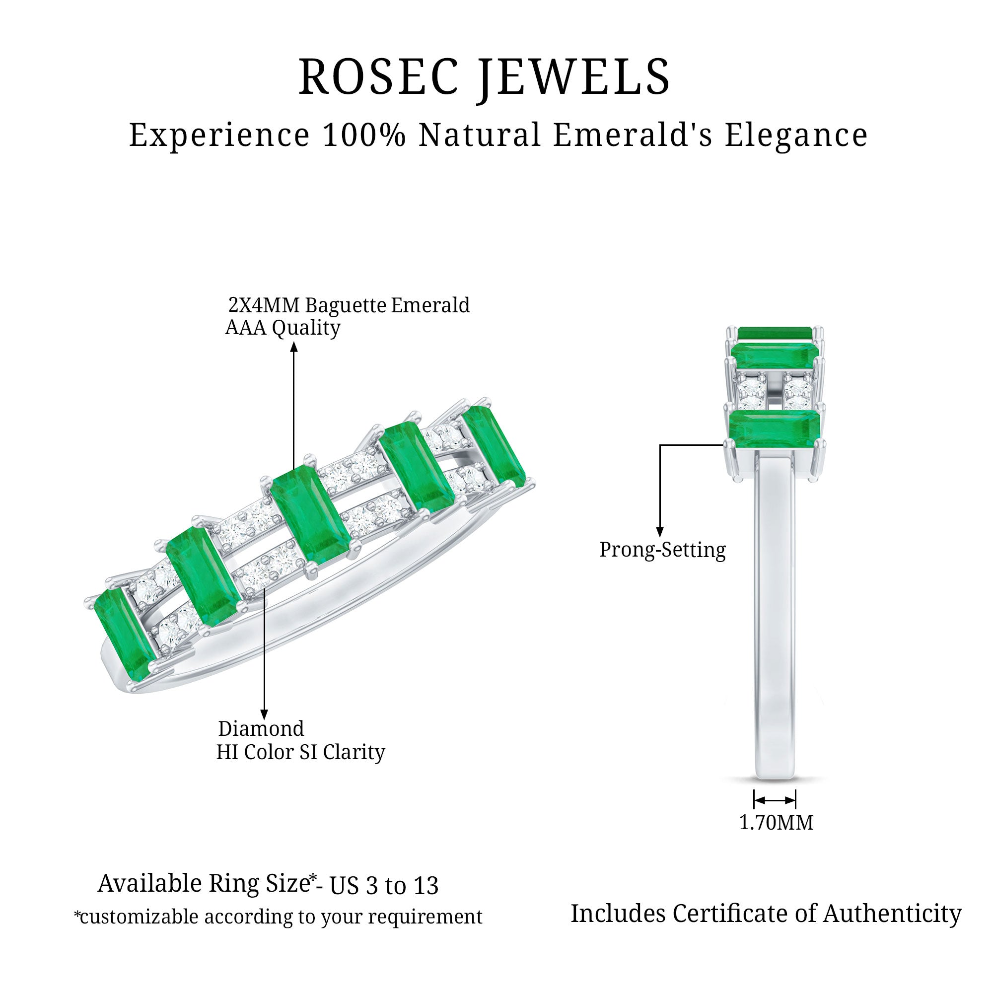 Half-eternity bands offer comfort for daily wear, while full-eternity styles deliver maximum emerald coverage and visual impact.