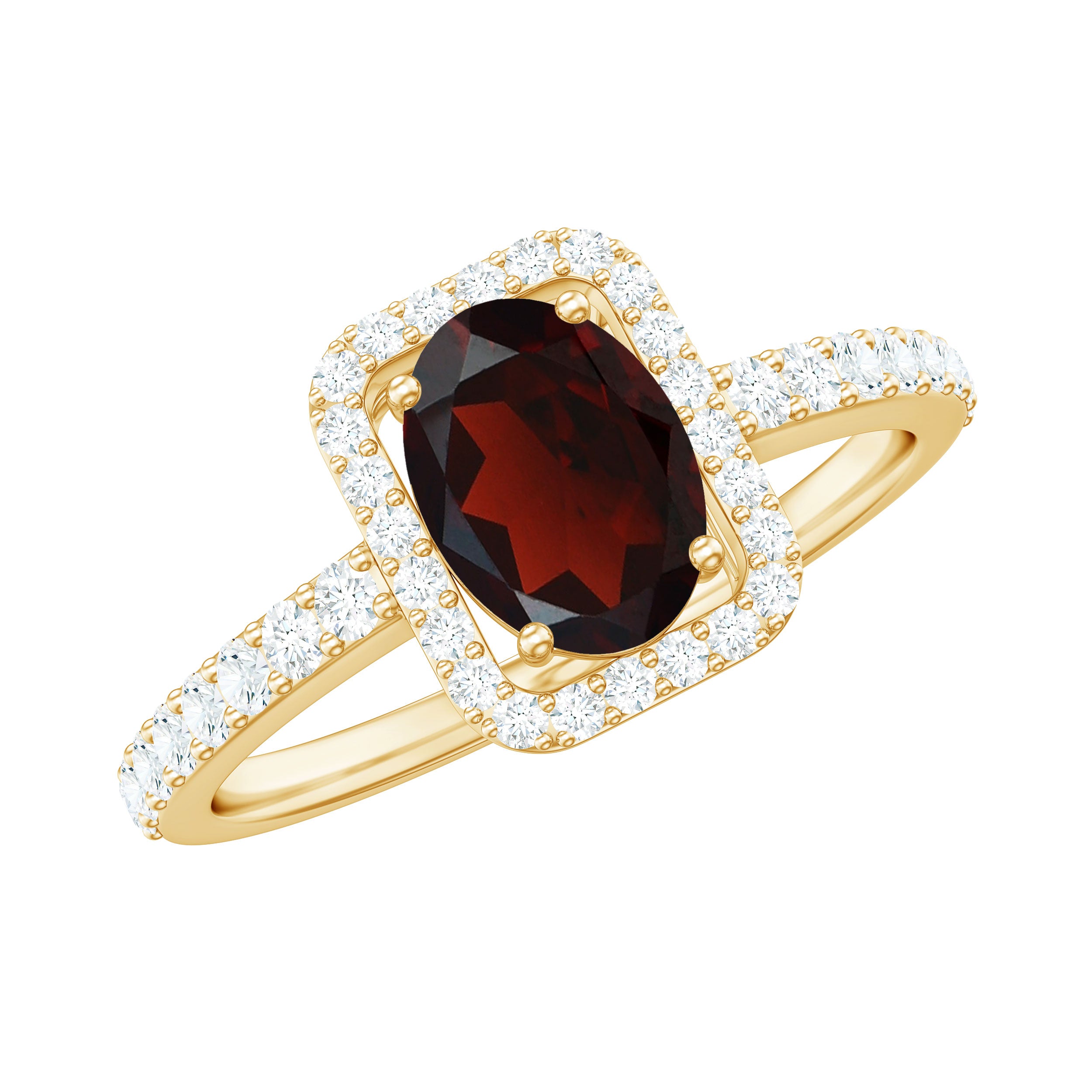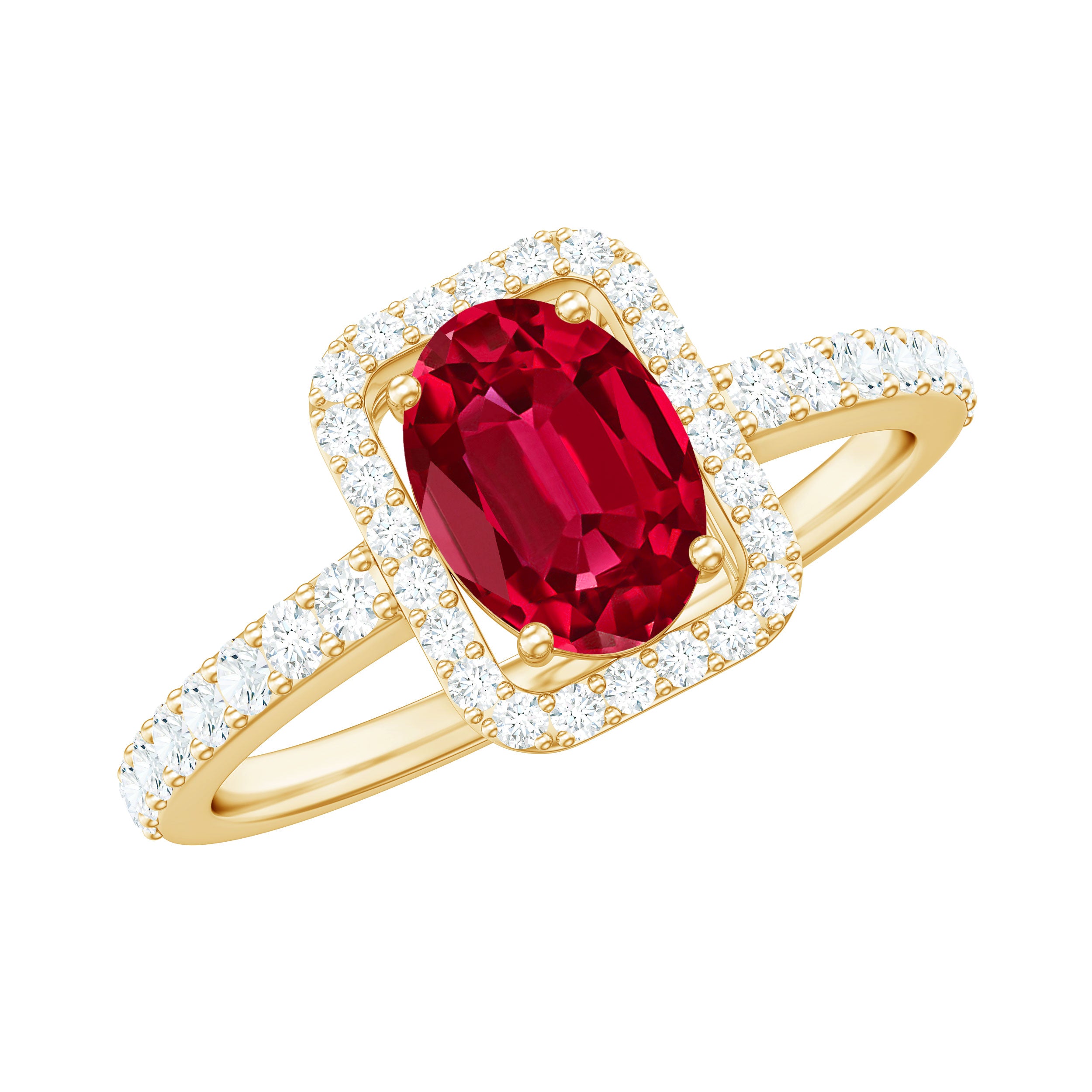 Halo Rings: Center gemstone is accentuated with shining or colored gemstones, usually smaller in size, to add a touch of sparkle in halo engagement rings. This style adds a layer of protection to the gemstones, too.