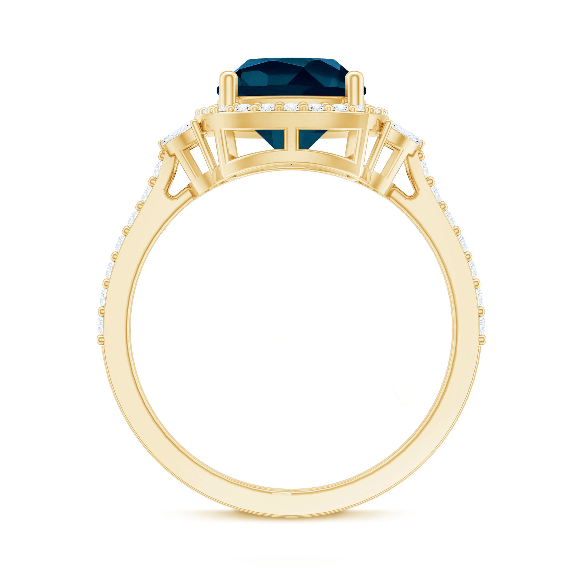 Halo Rings: Center gemstone is accentuated with shining or colored gemstones, usually smaller in size, to add a touch of sparkle in halo engagement rings. This style adds a layer of protection to the gemstones, too.