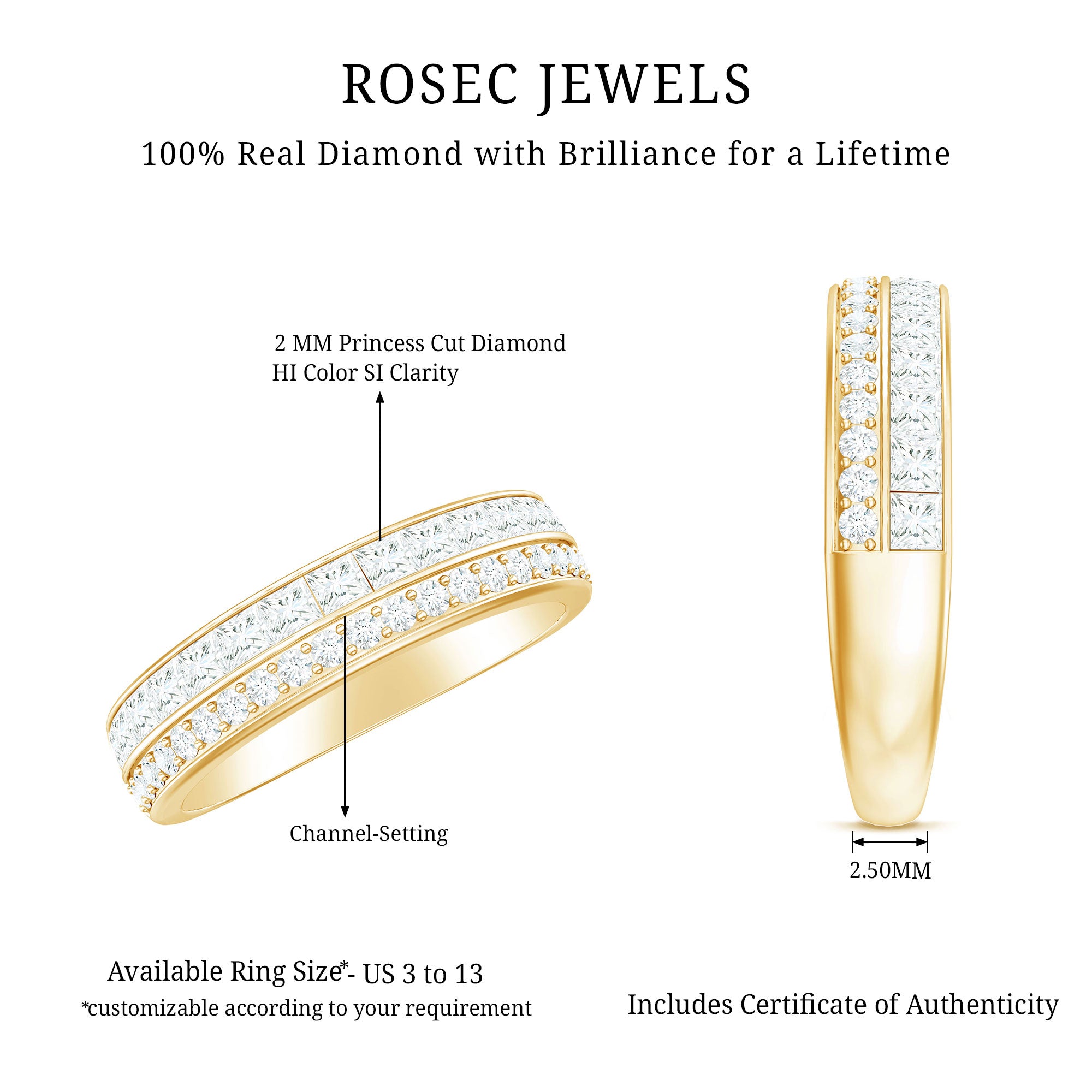 Rosec Jewels’ men’s eternity wedding rings are exclusively designed for the soon-to-be grooms. Our sensational eternity bands for men are a handsome choice befitting the personality of men. The eternity rings have been a symbol of eternal love owing to the age old tradition of offering rings of braided reed. However today, eternity band rings are crafted with combination of 35+ kinds of precious and semi-precious gemstones along the circumference of the ring forming a never-ending circle.