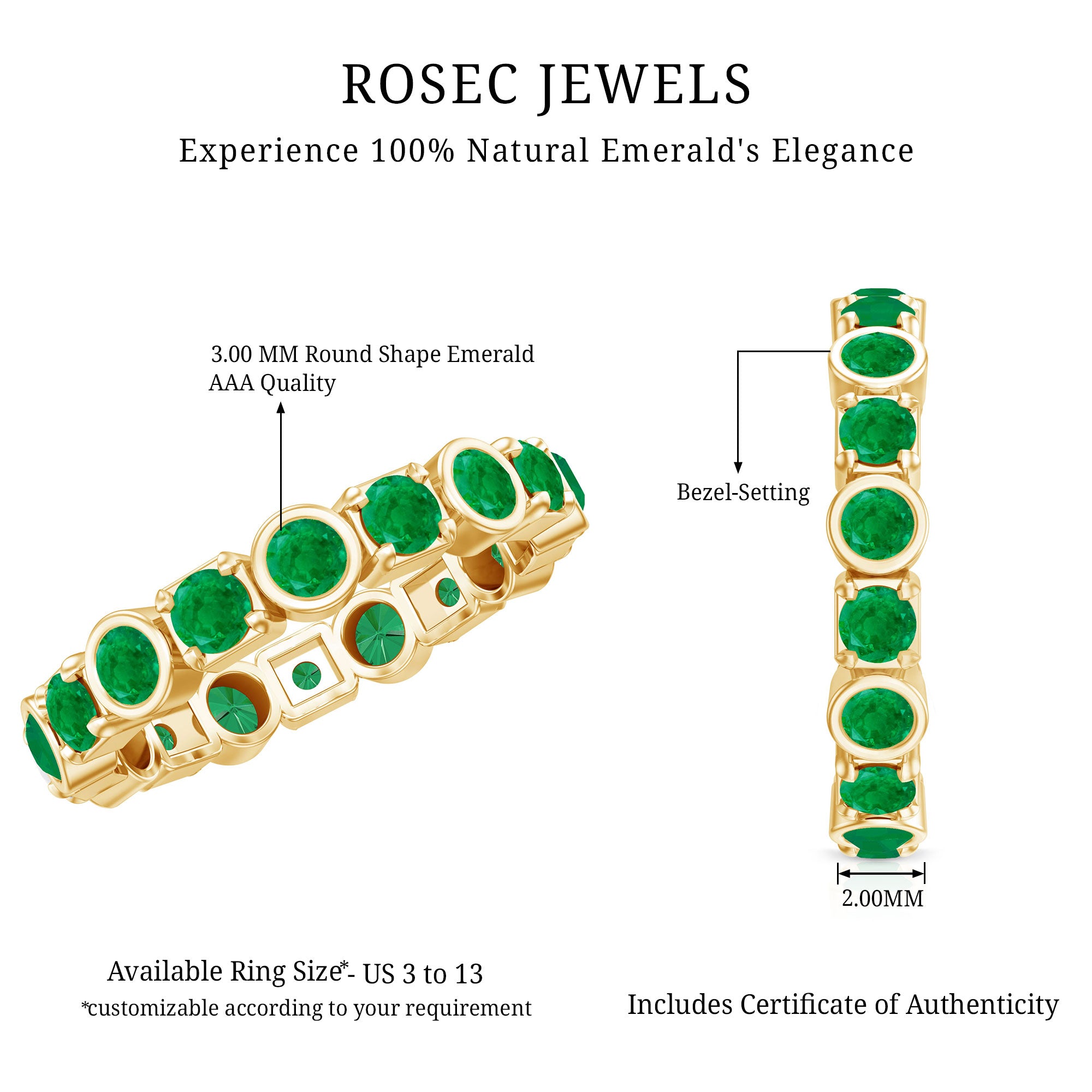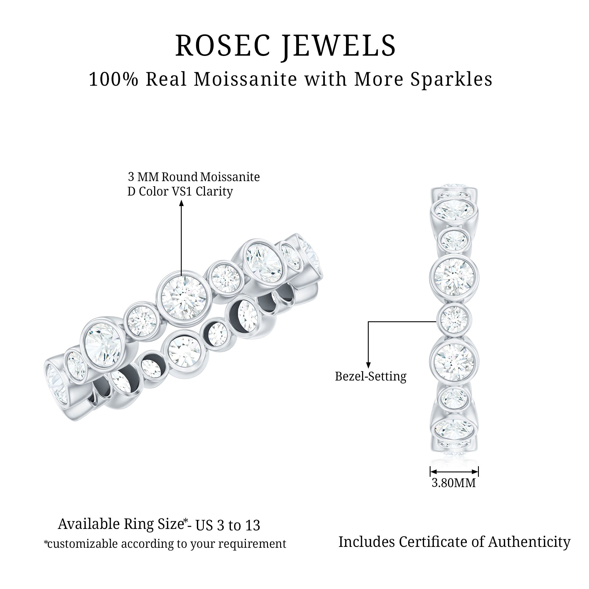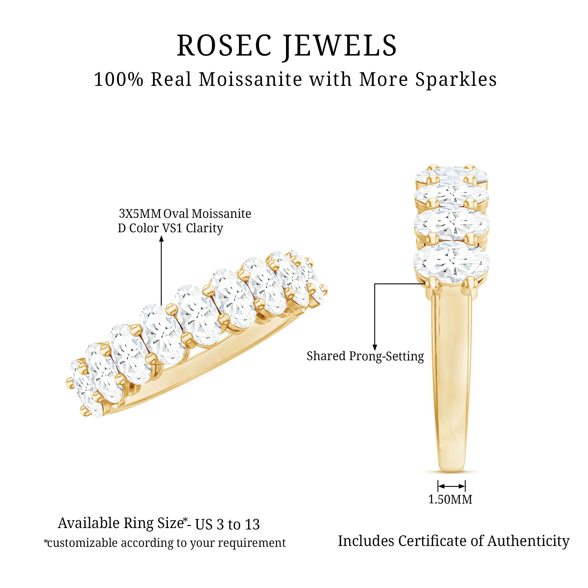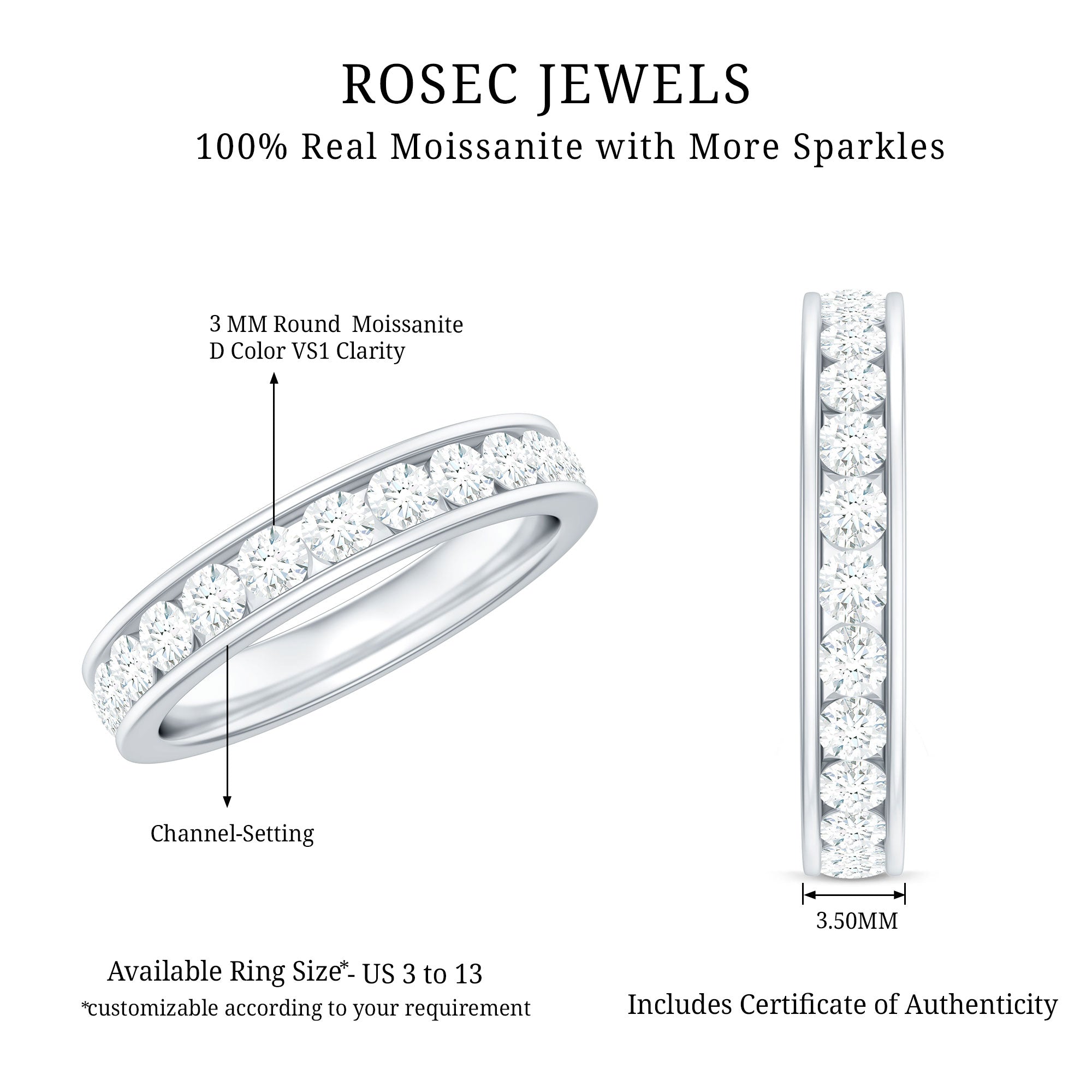 • Genuine and Pure: Rosec Jewels is proud to offer genuine Eternity Rings made from real gold and silver. Every ring comes with a certificate to guarantee its authenticity, ensuring you get the real and captivating beauty of an authentic eternity rings.