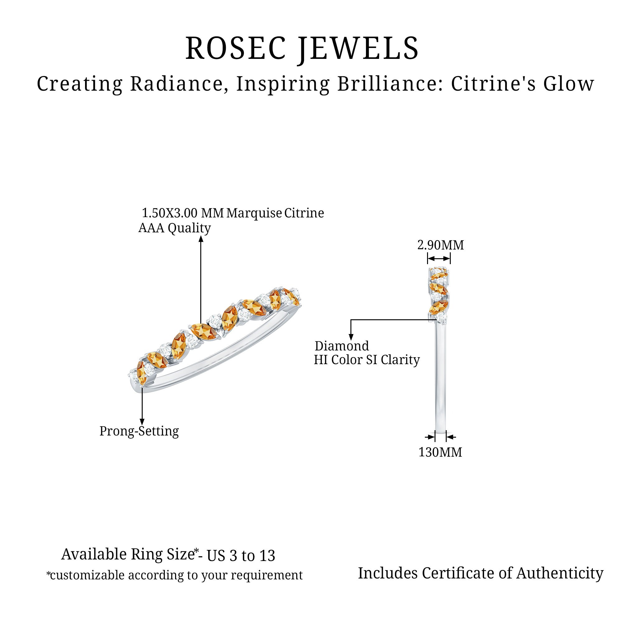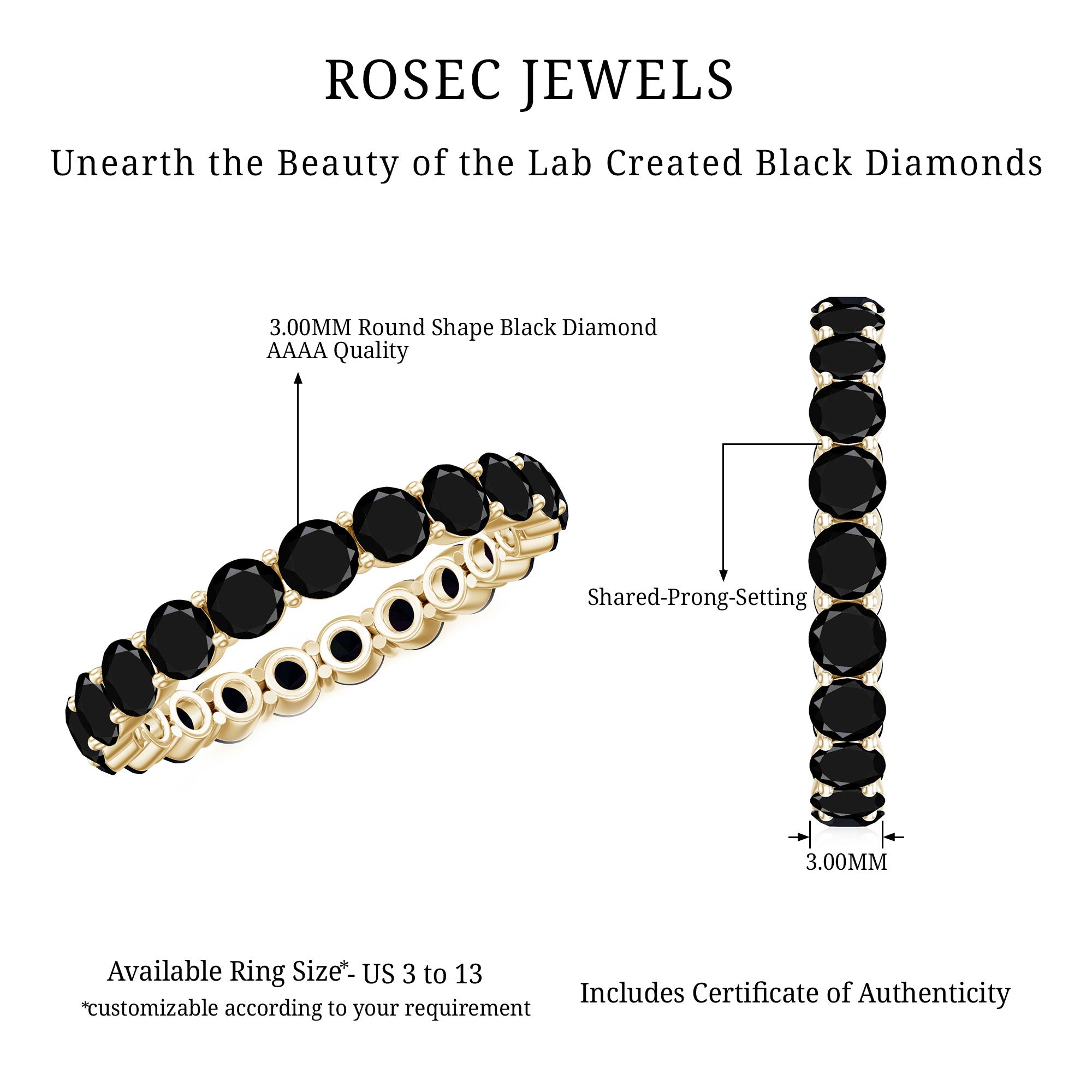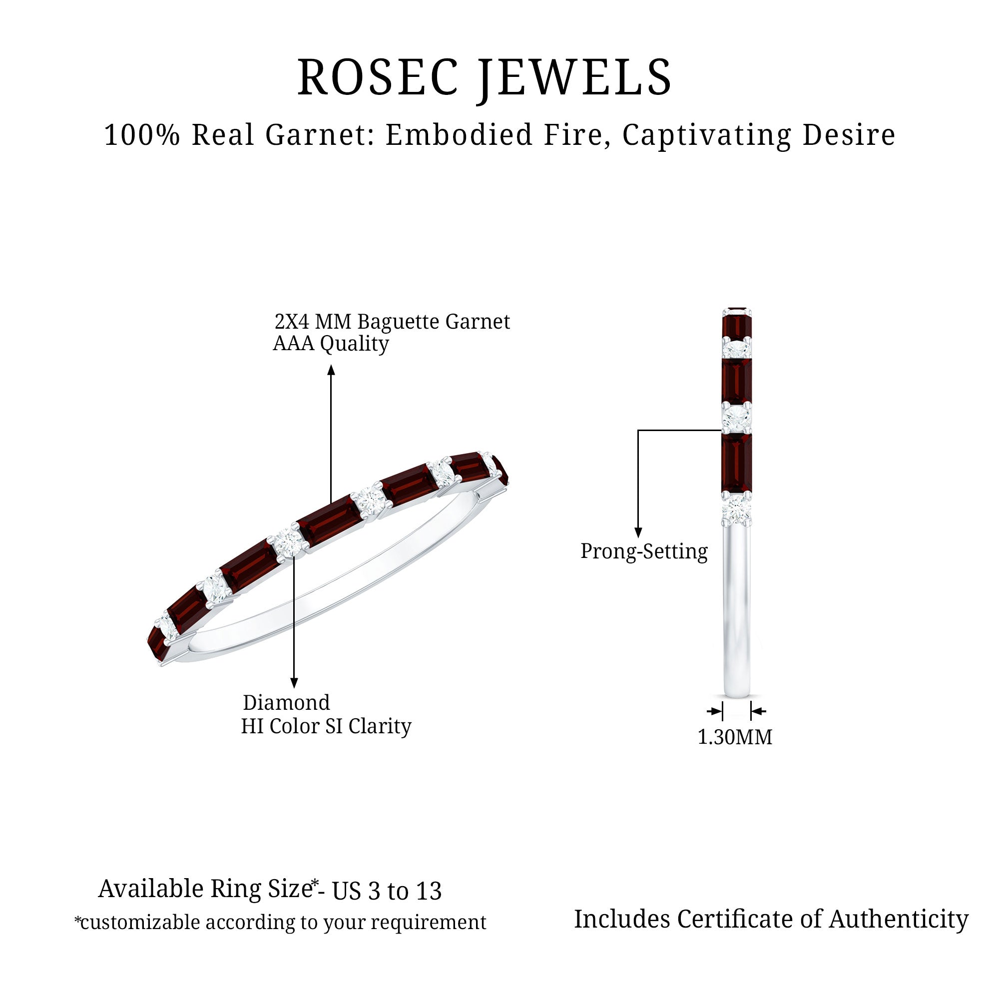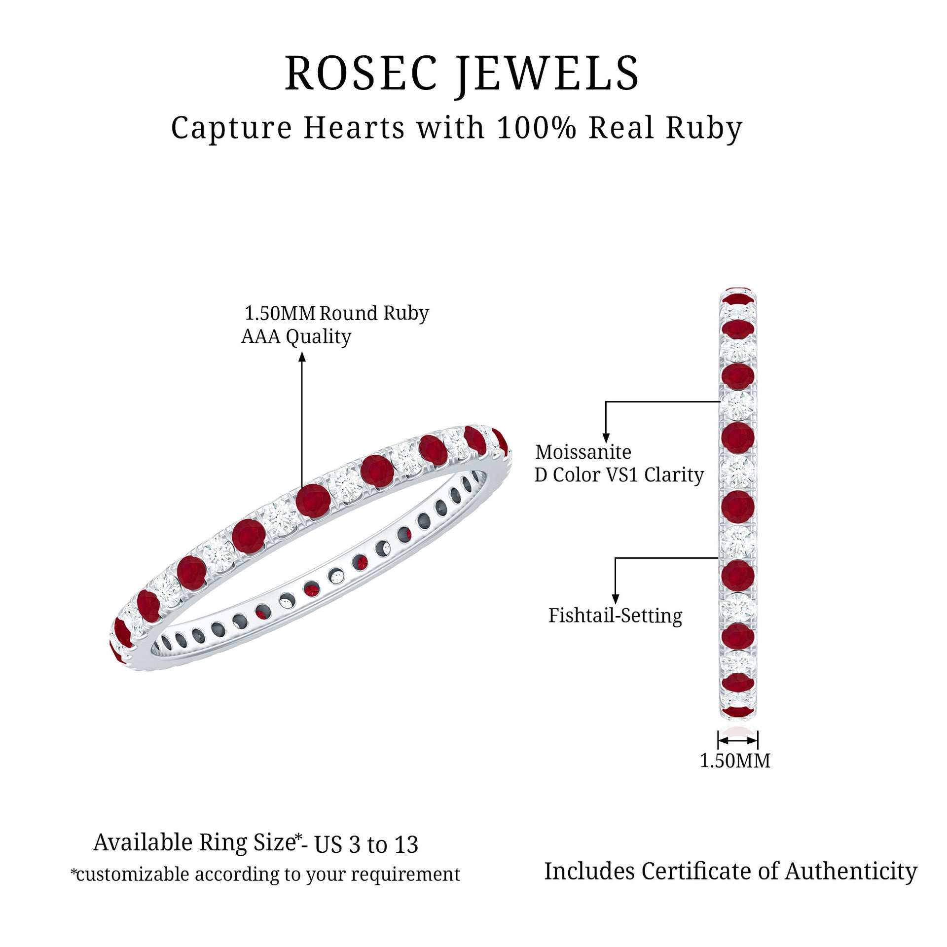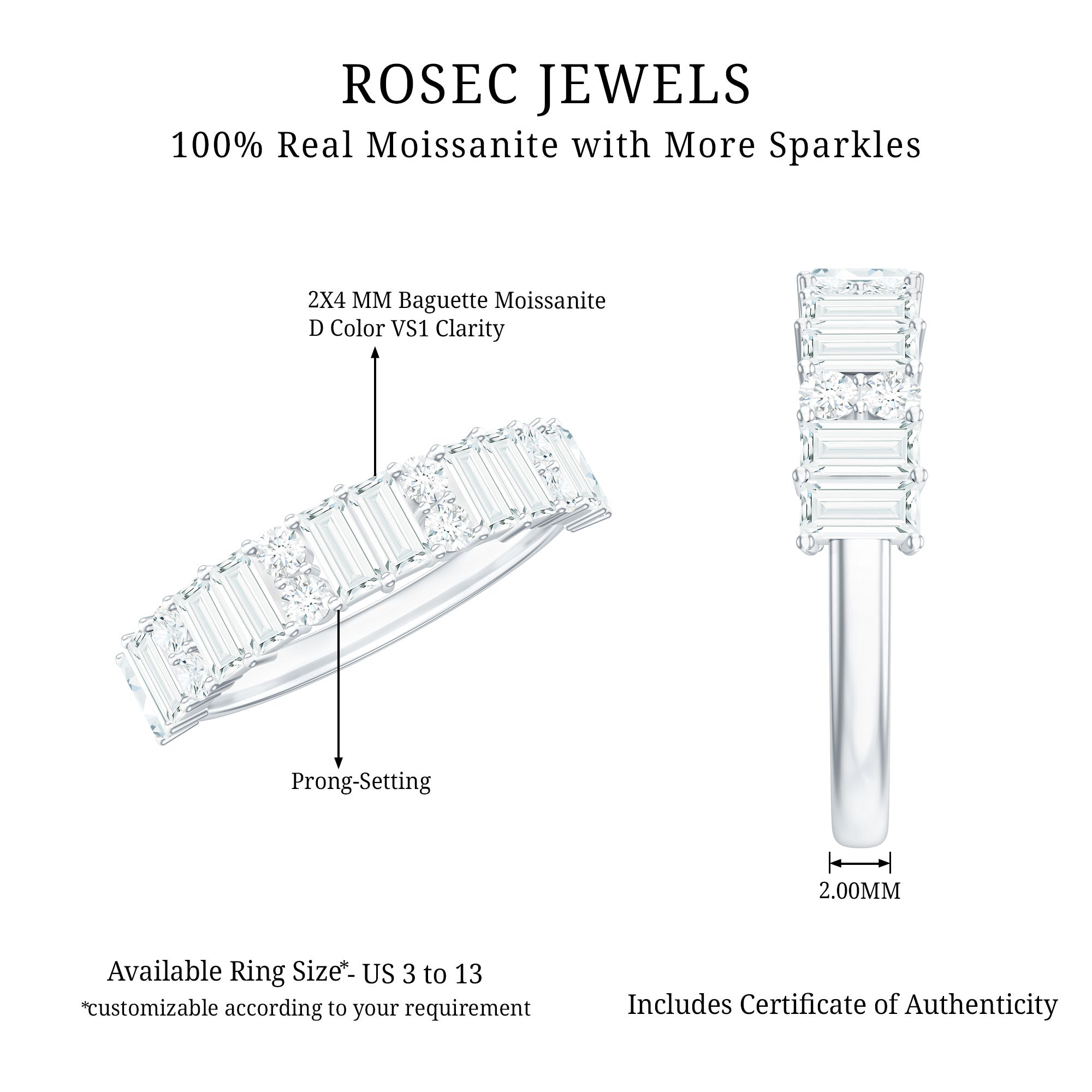• Genuine and Pure: Rosec Jewels is proud to offer genuine Eternity Rings made from real gold and silver. Every ring comes with a certificate to guarantee its authenticity, ensuring you get the real and captivating beauty of an authentic eternity rings.