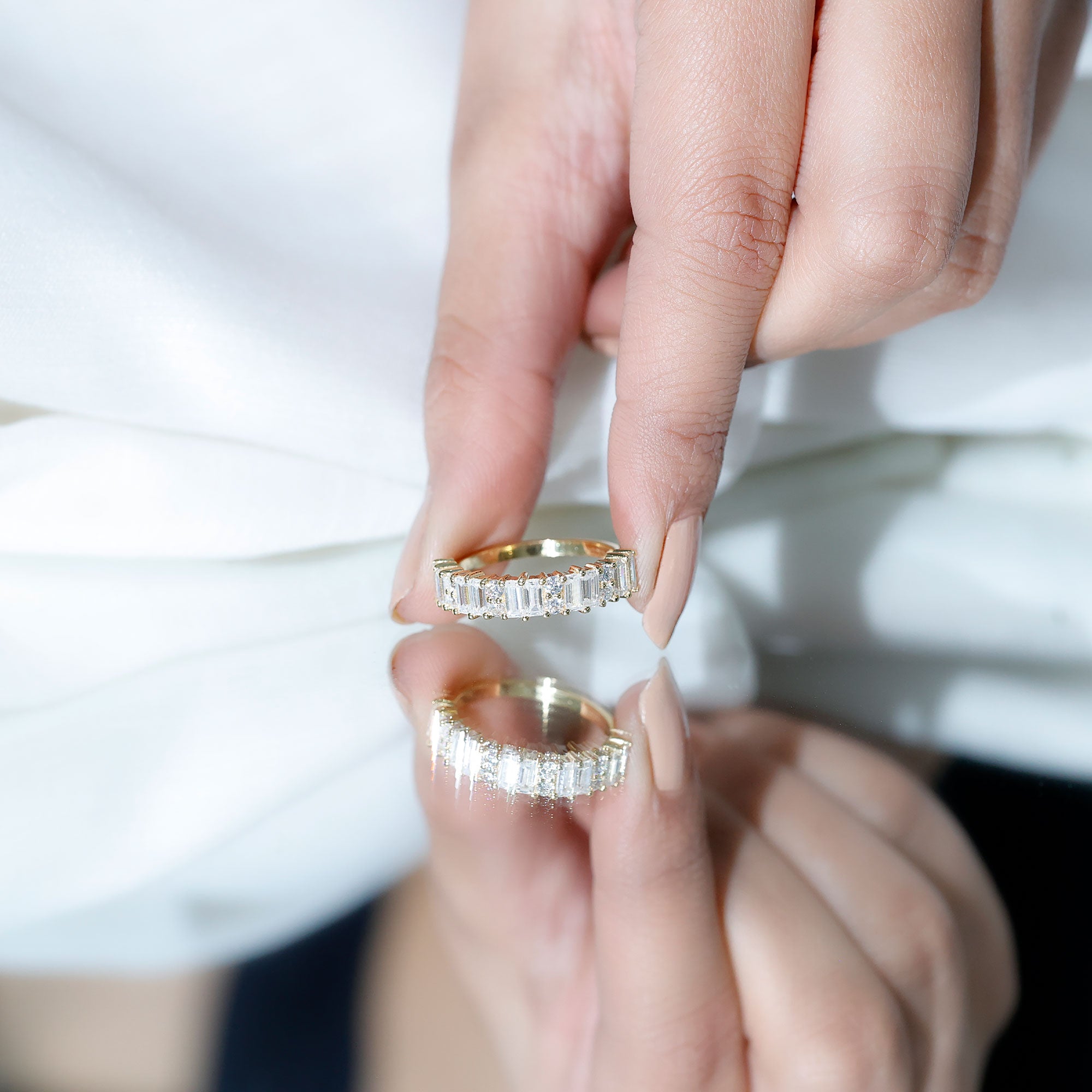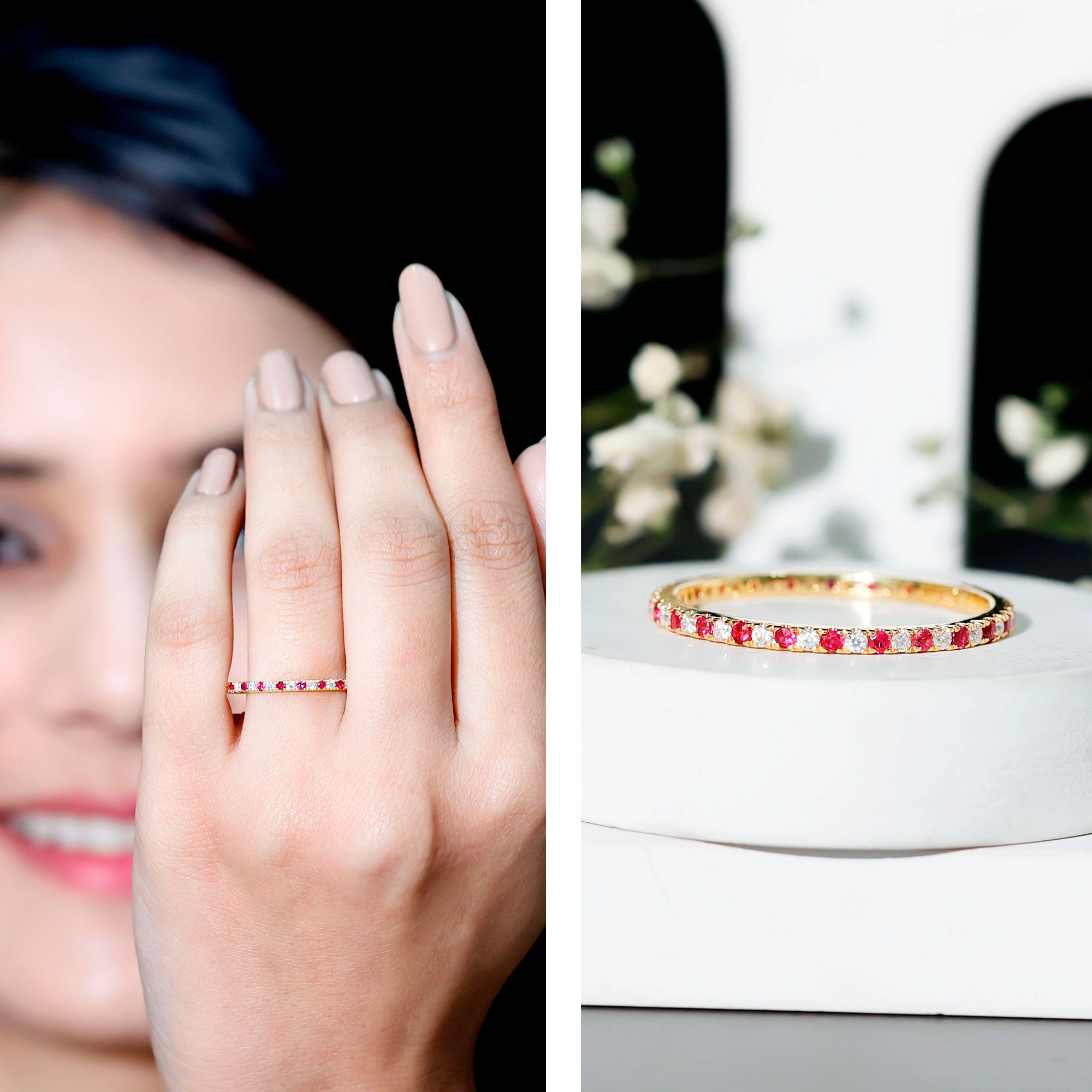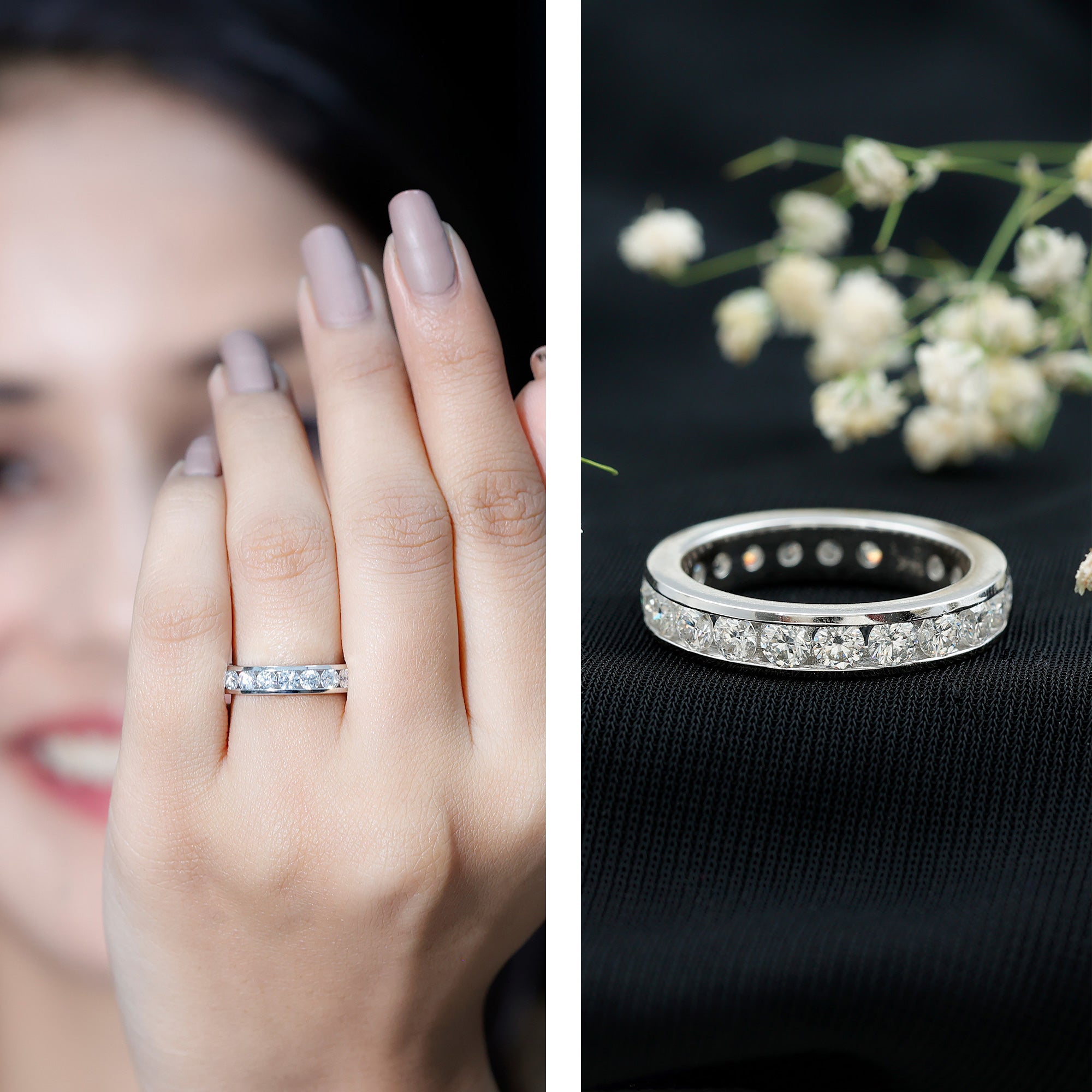 • Exquisite Craftsmanship: Our eternity rings display the skillful work of talented artisans who carefully create each piece, guaranteeing a perfect blend of beauty and enduring quality.
