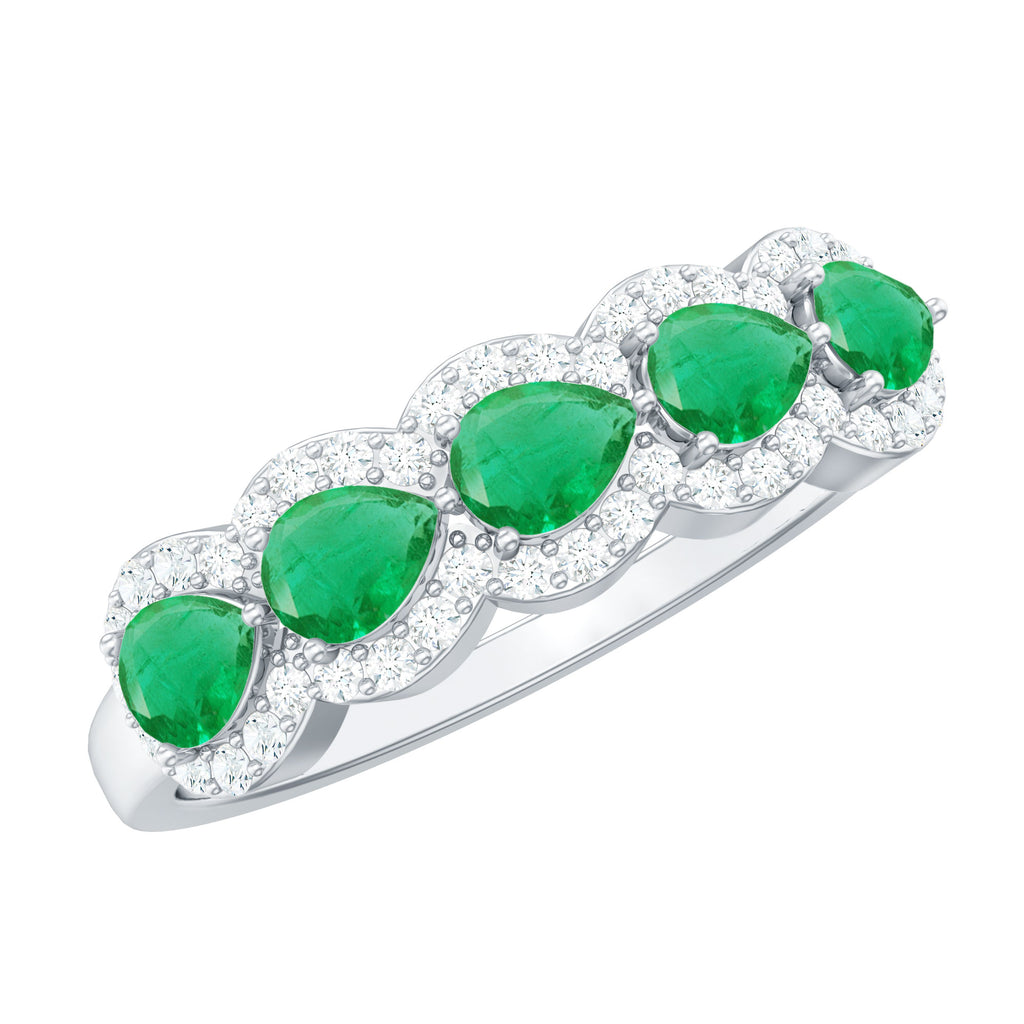 East to West eternity bands have stones arranged horizontally, often used for elongated shapes like emerald, radiant, or pear-cut stones.