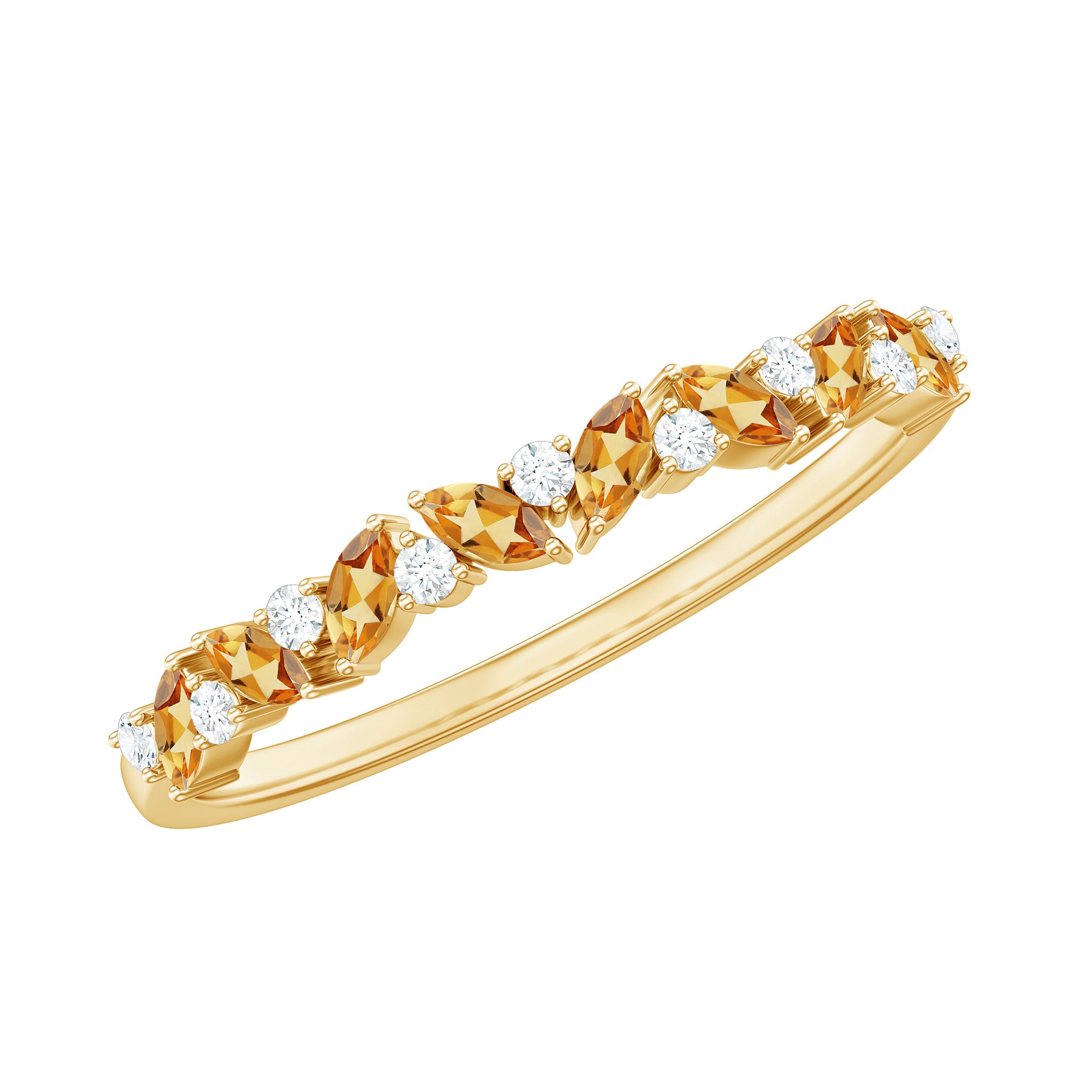 Mix it up with mixed-shape eternity bands! They use various stone shapes, like marquise and round cuts, for a unique and joyful look.