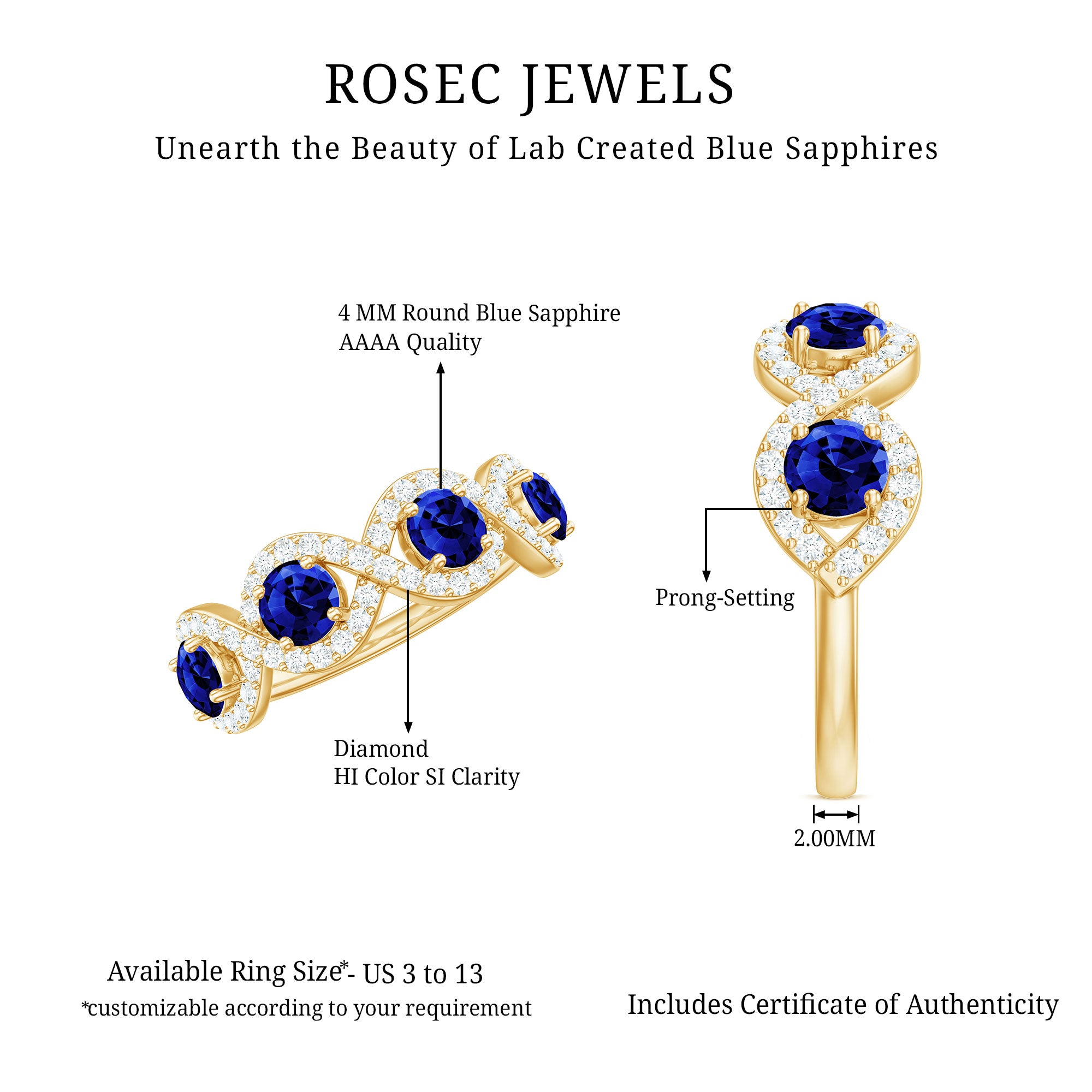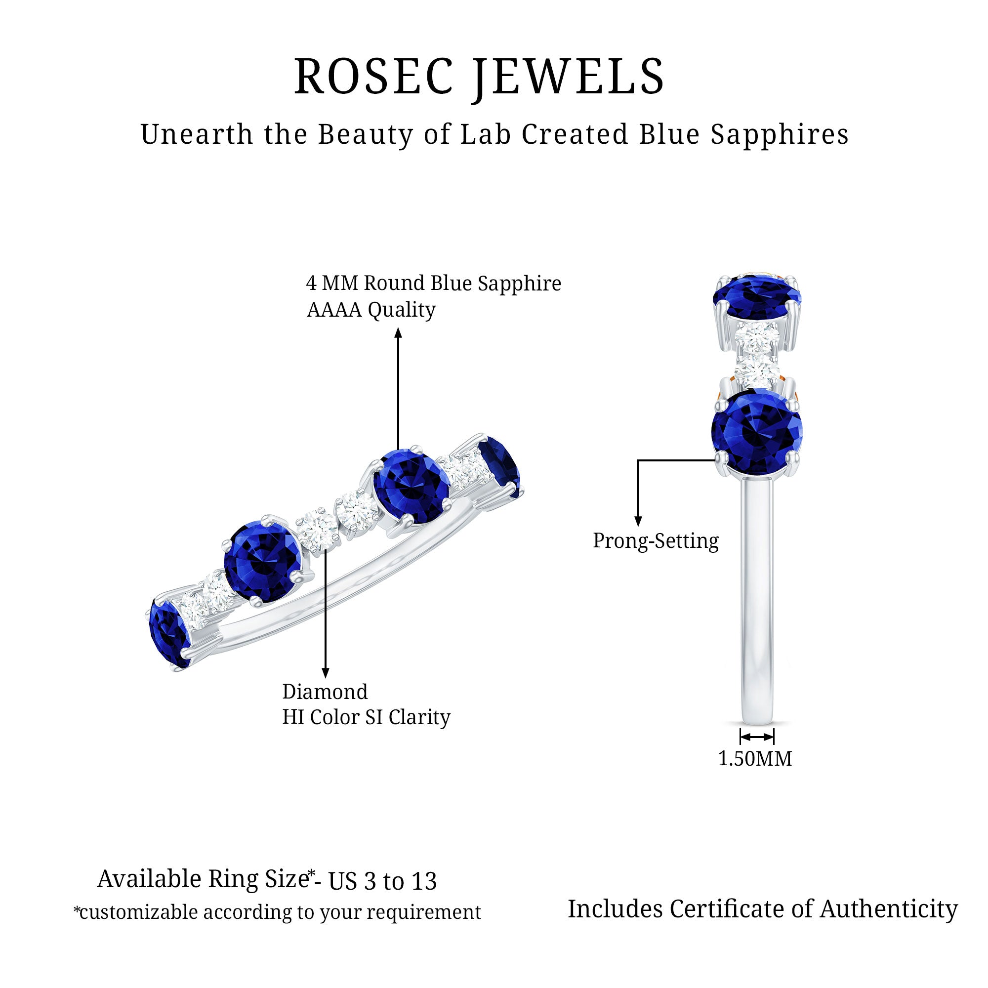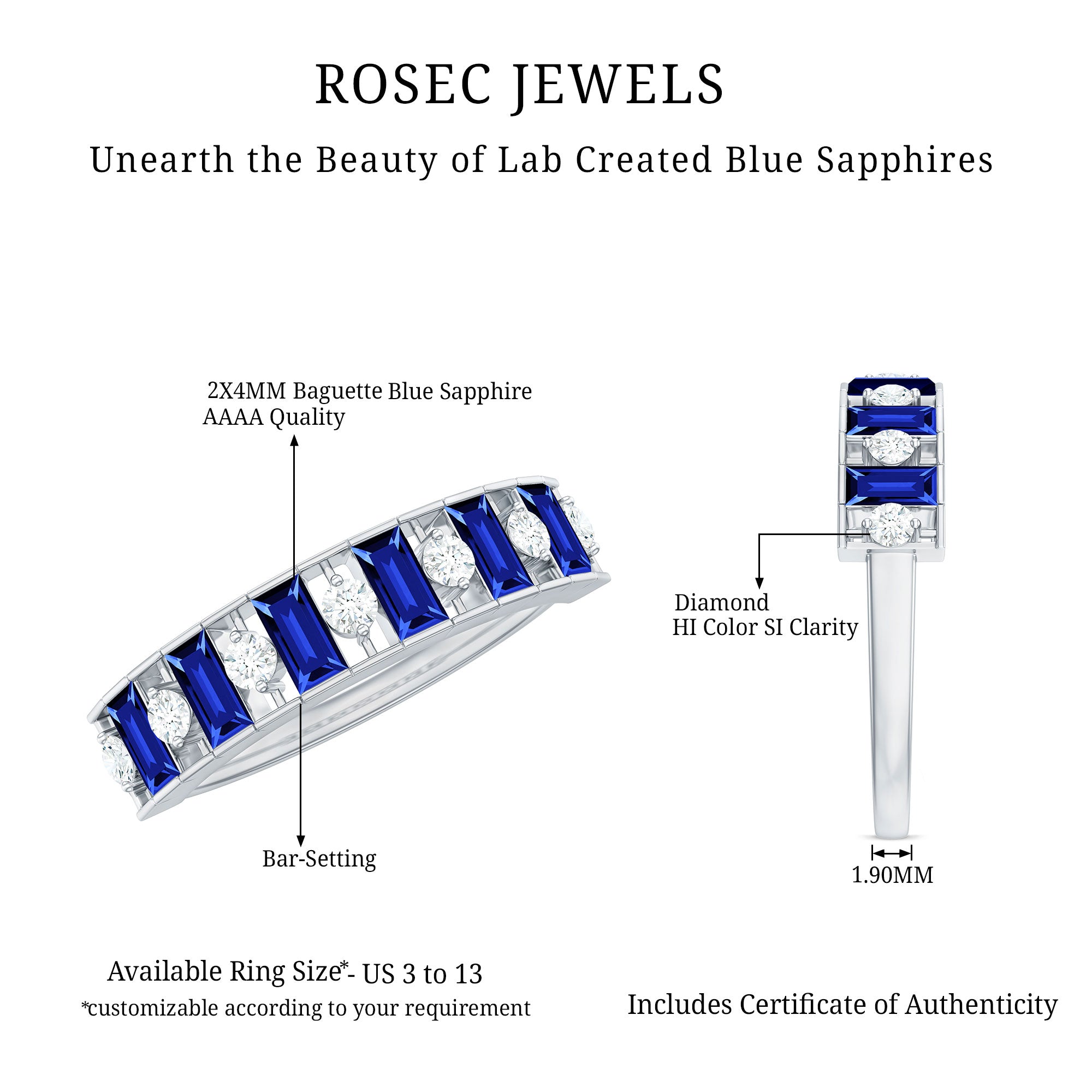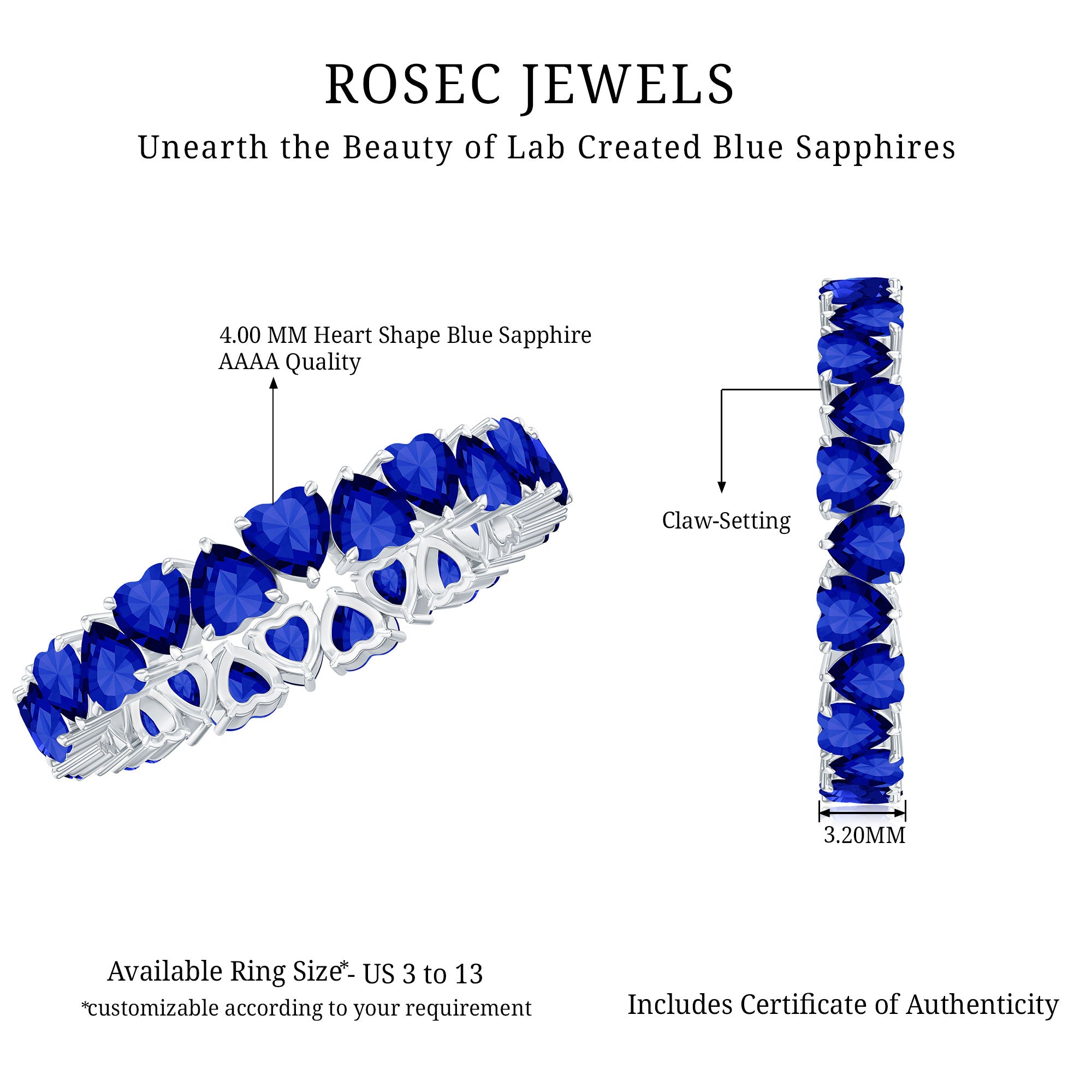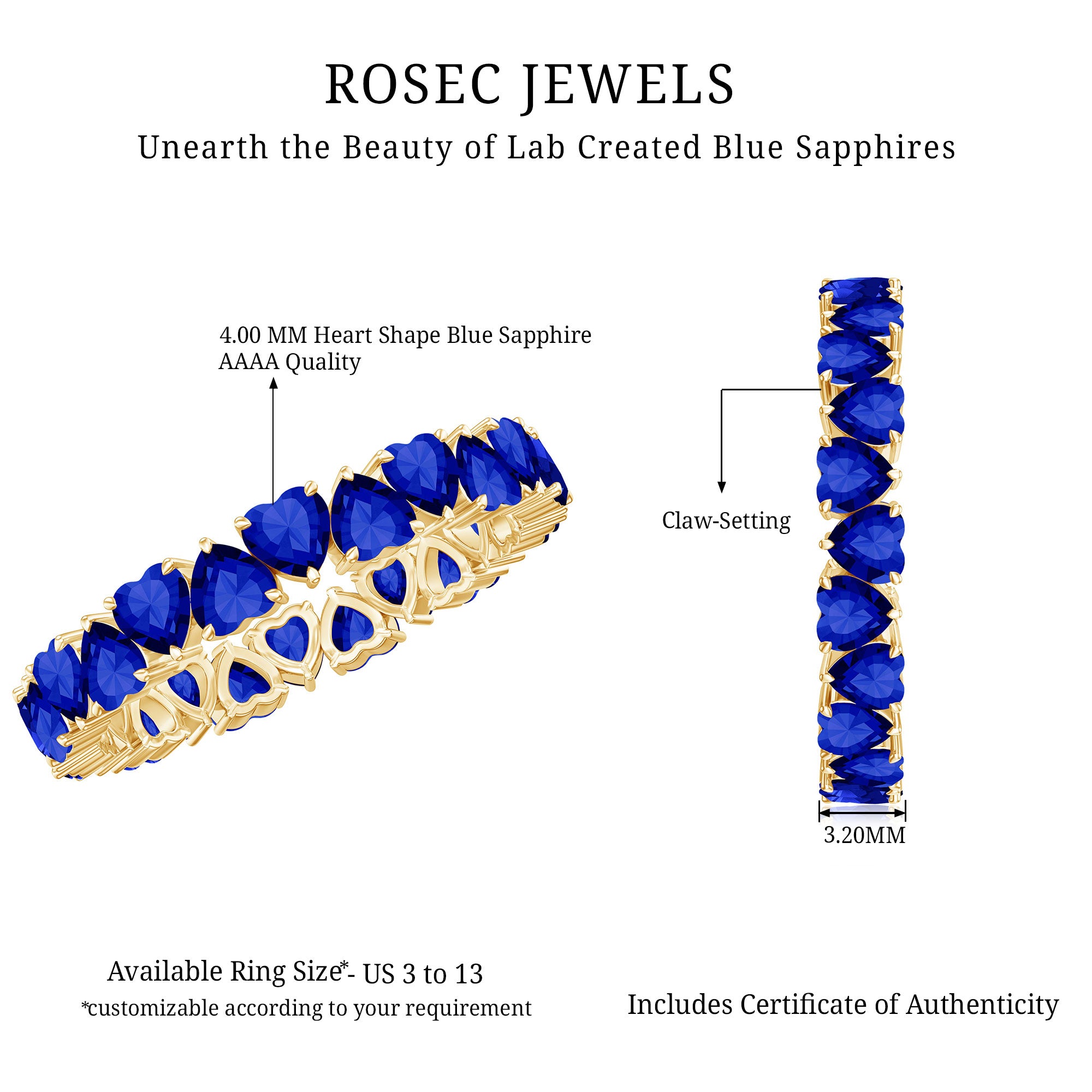 Genuine and Pure: Rosec Jewels is proud to offer genuine Eternity Rings made from real gold and silver. Every ring comes with a certificate to guarantee its authenticity, ensuring you get the real and captivating beauty of an authentic eternity rings.