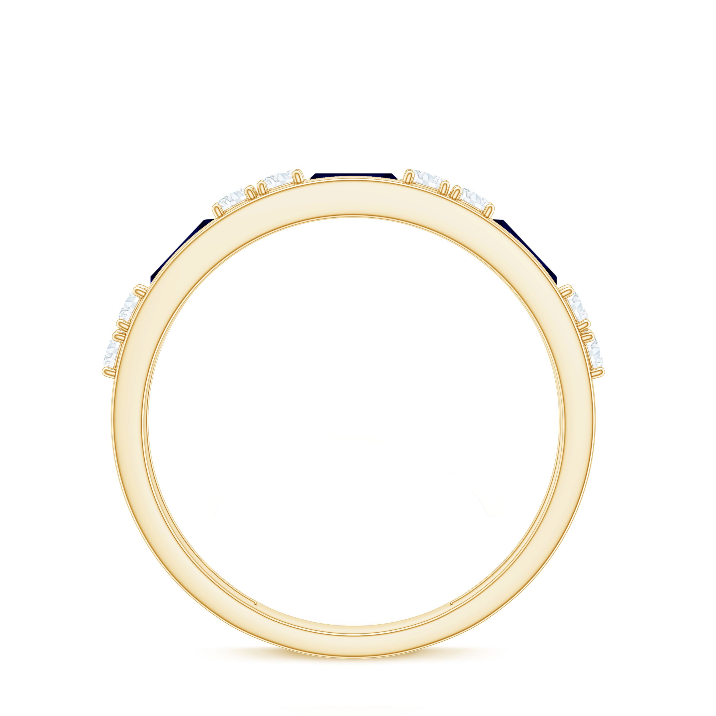 Half eternity rings feature stones on the upper half, covering 1/2 or 3/4 of the band. Considered more practical and comfortable, they allow larger stones compared to full eternity rings.