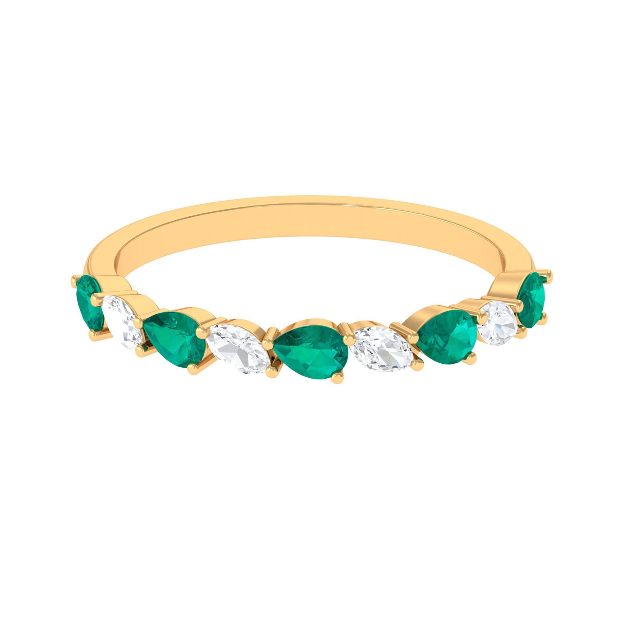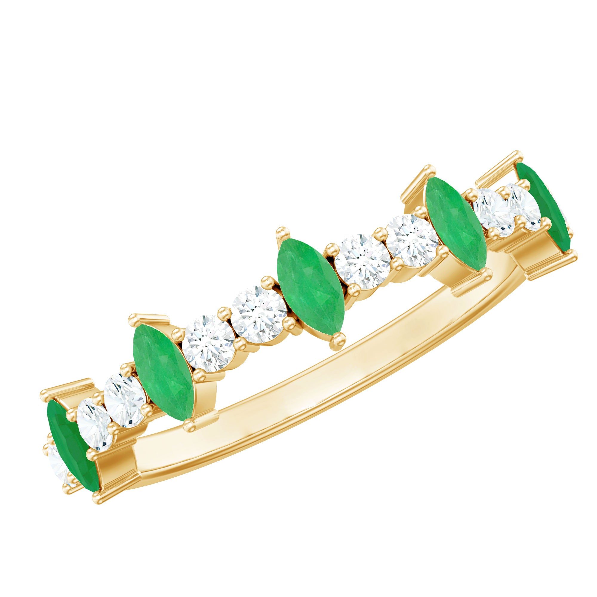 Mix it up with mixed-shape eternity bands! They use various stone shapes, like marquise and round cuts, for a unique and joyful look.