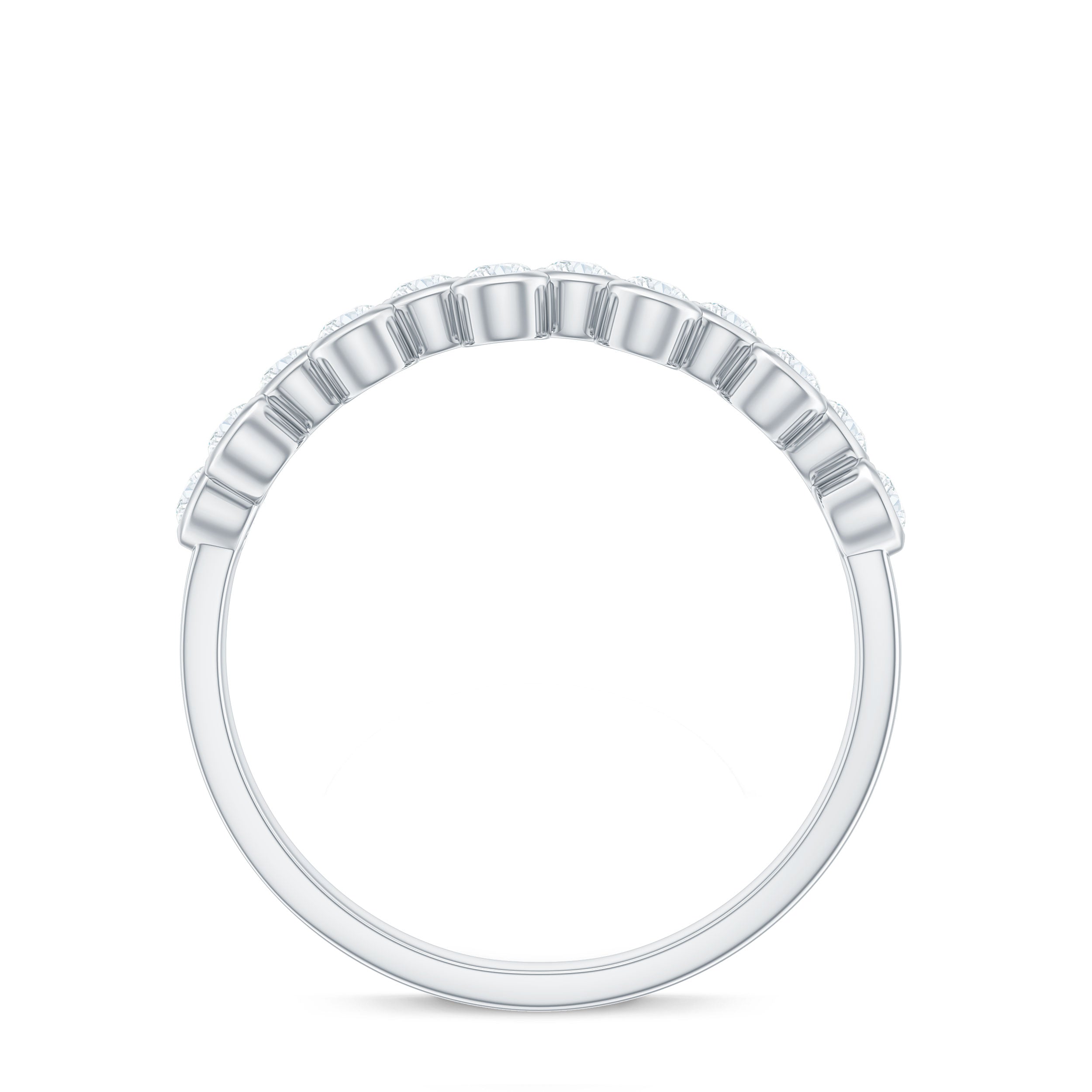 Half eternity rings feature stones on the upper half, covering 1/2 or 3/4 of the band. Considered more practical and comfortable, they allow larger stones compared to full eternity rings.
