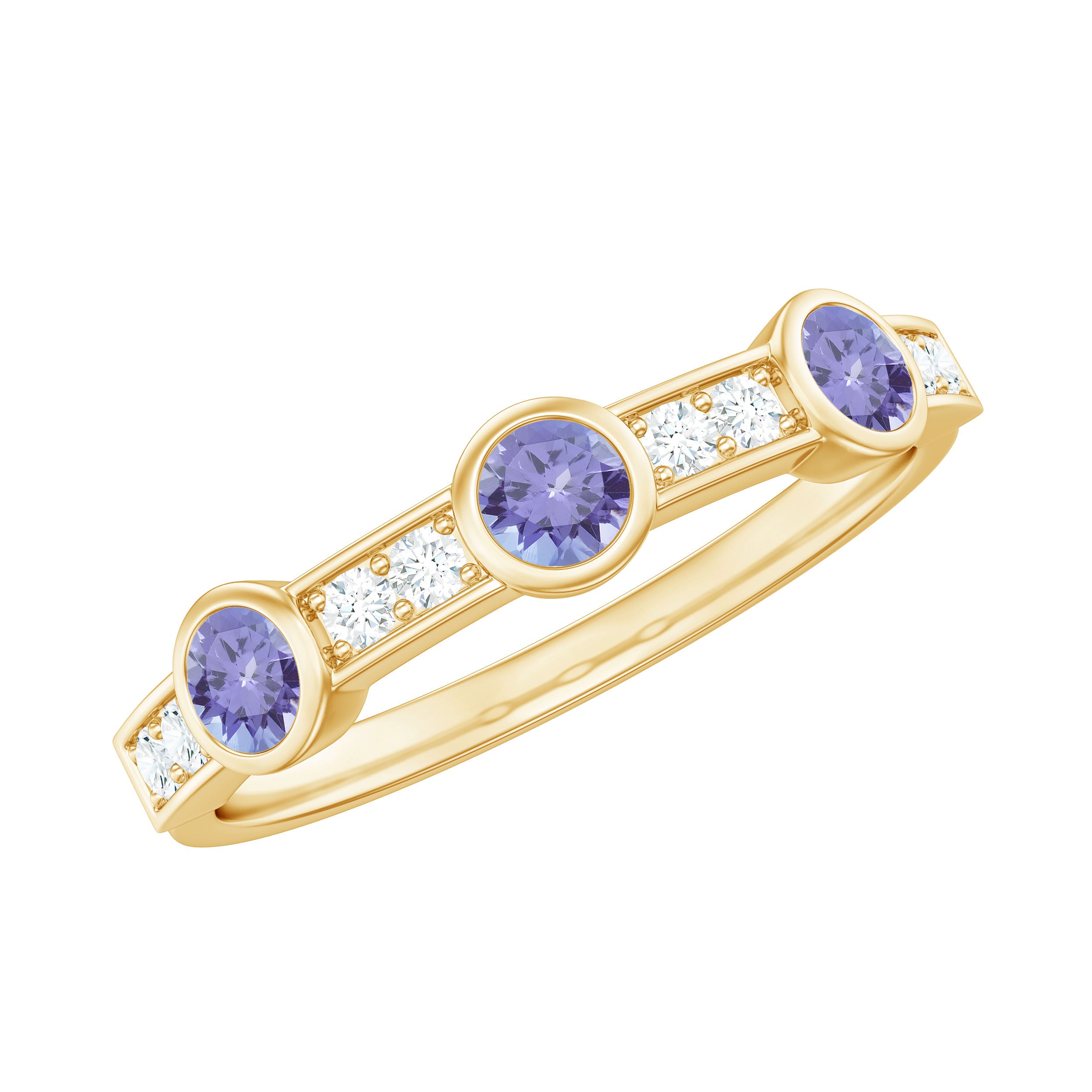 Mix it up with mixed-shape eternity bands! They use various stone shapes, like marquise and round cuts, for a unique and joyful look.