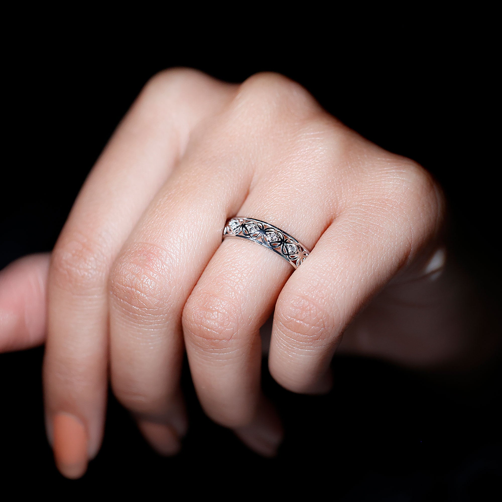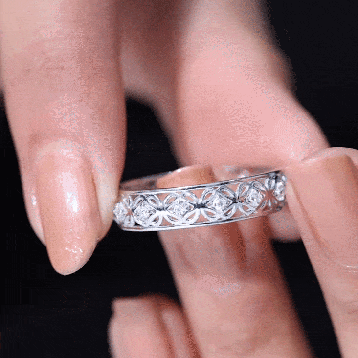 Prong Setting: Eternity rings often use prong settings, tiny claws that secure stones. Affordable as less metal is used.